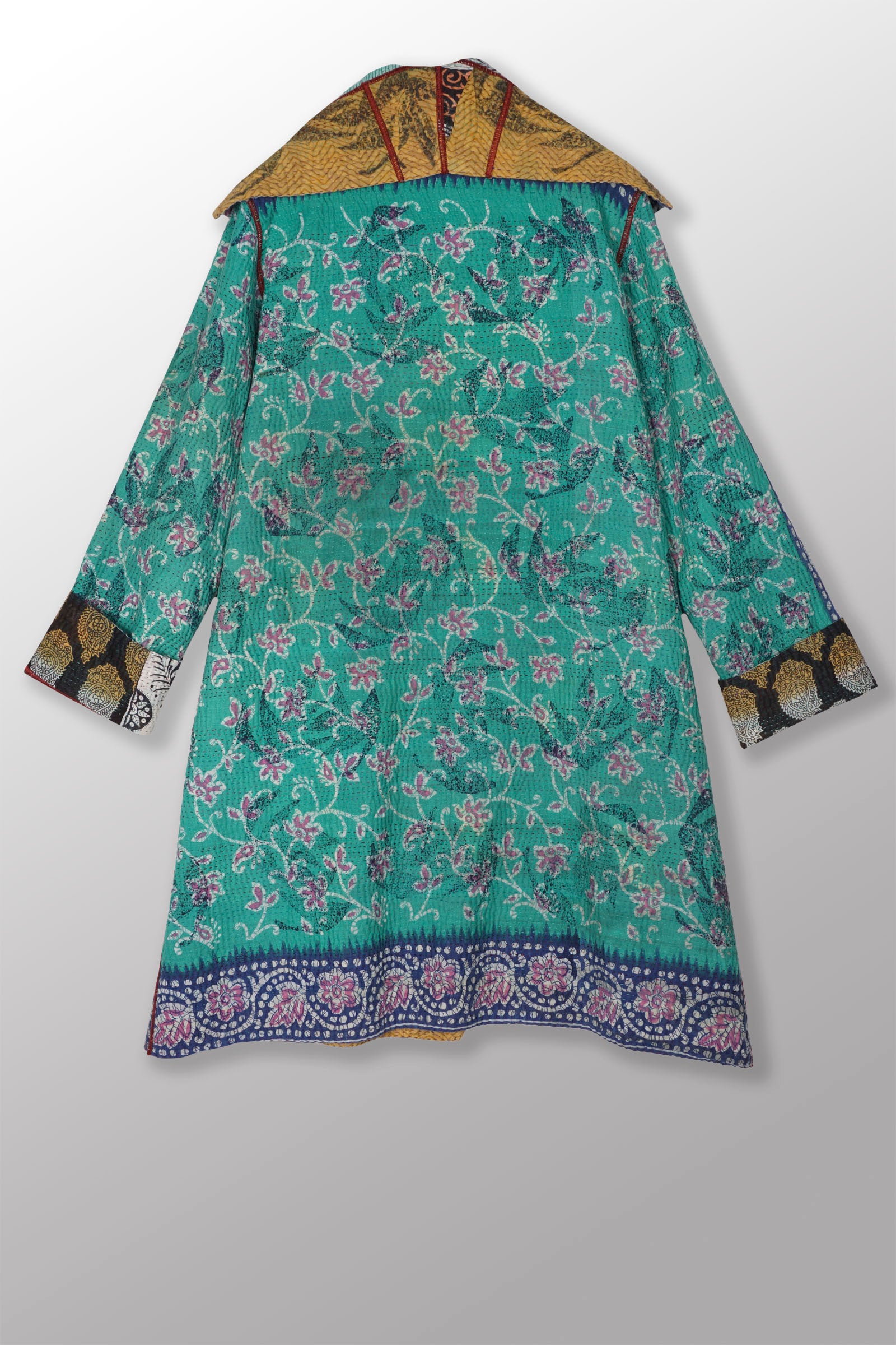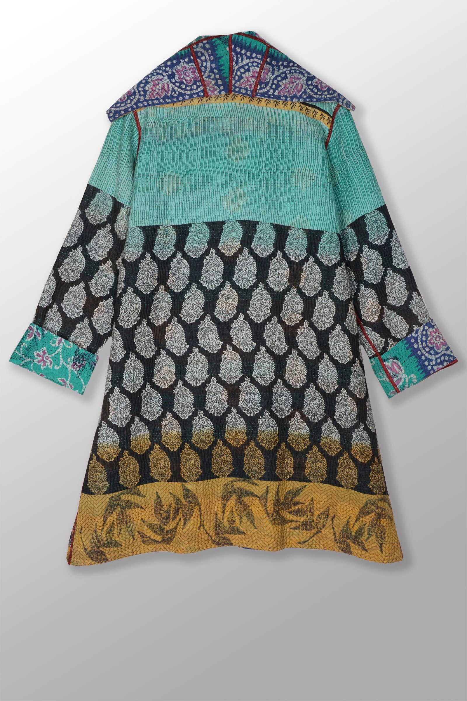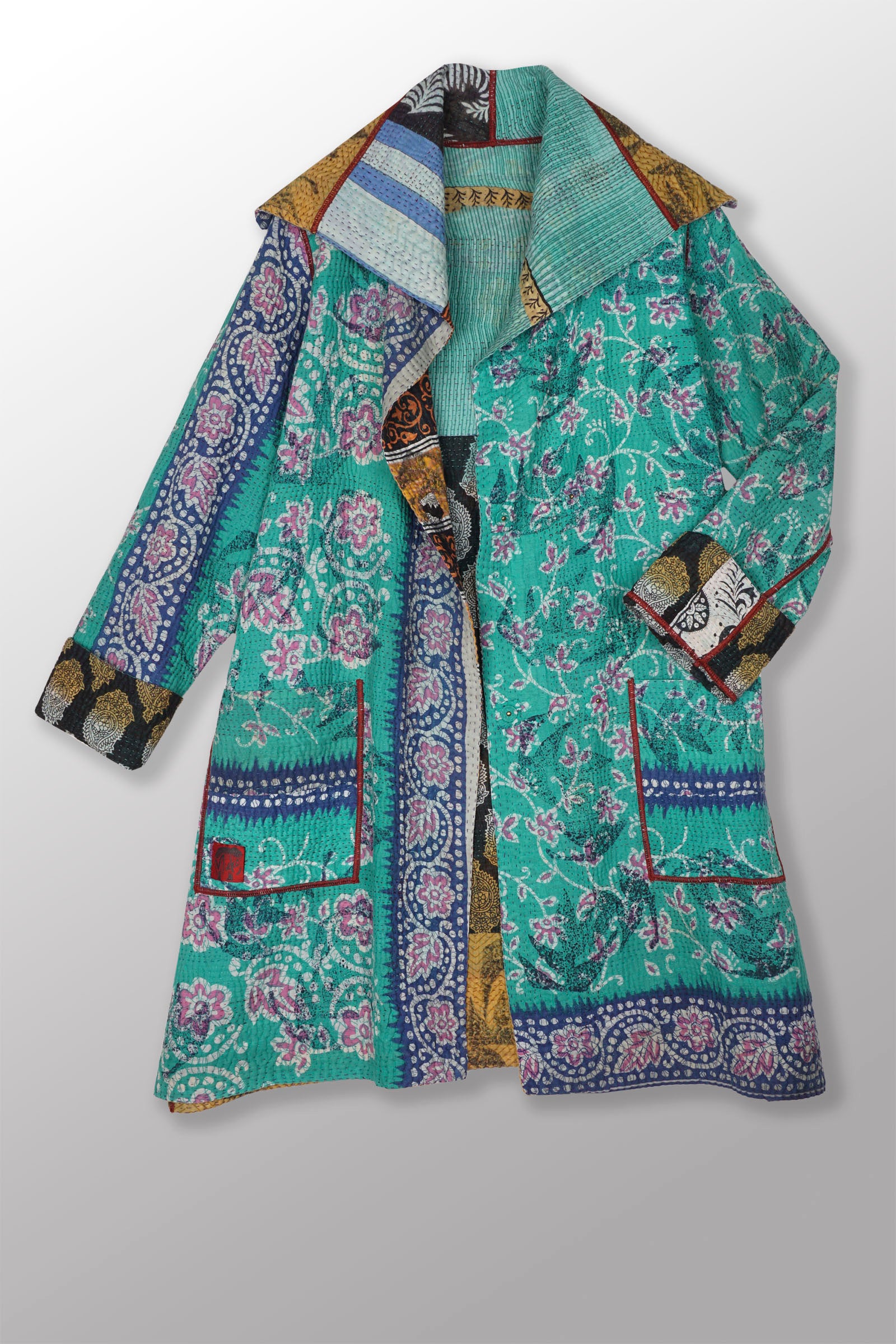 VINTAGE COTTON KANTHA POCKET MEDIUM COAT - cv4316-0033a -