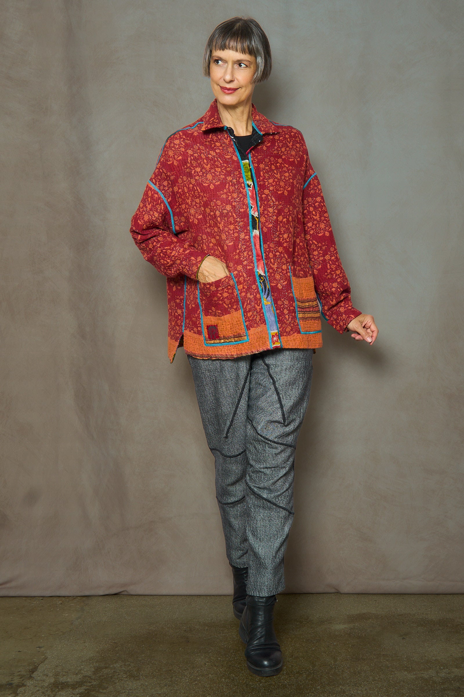 VINTAGE COTTON KANTHA RELAXED SHIRT JACKET - cv4j105-0002s -