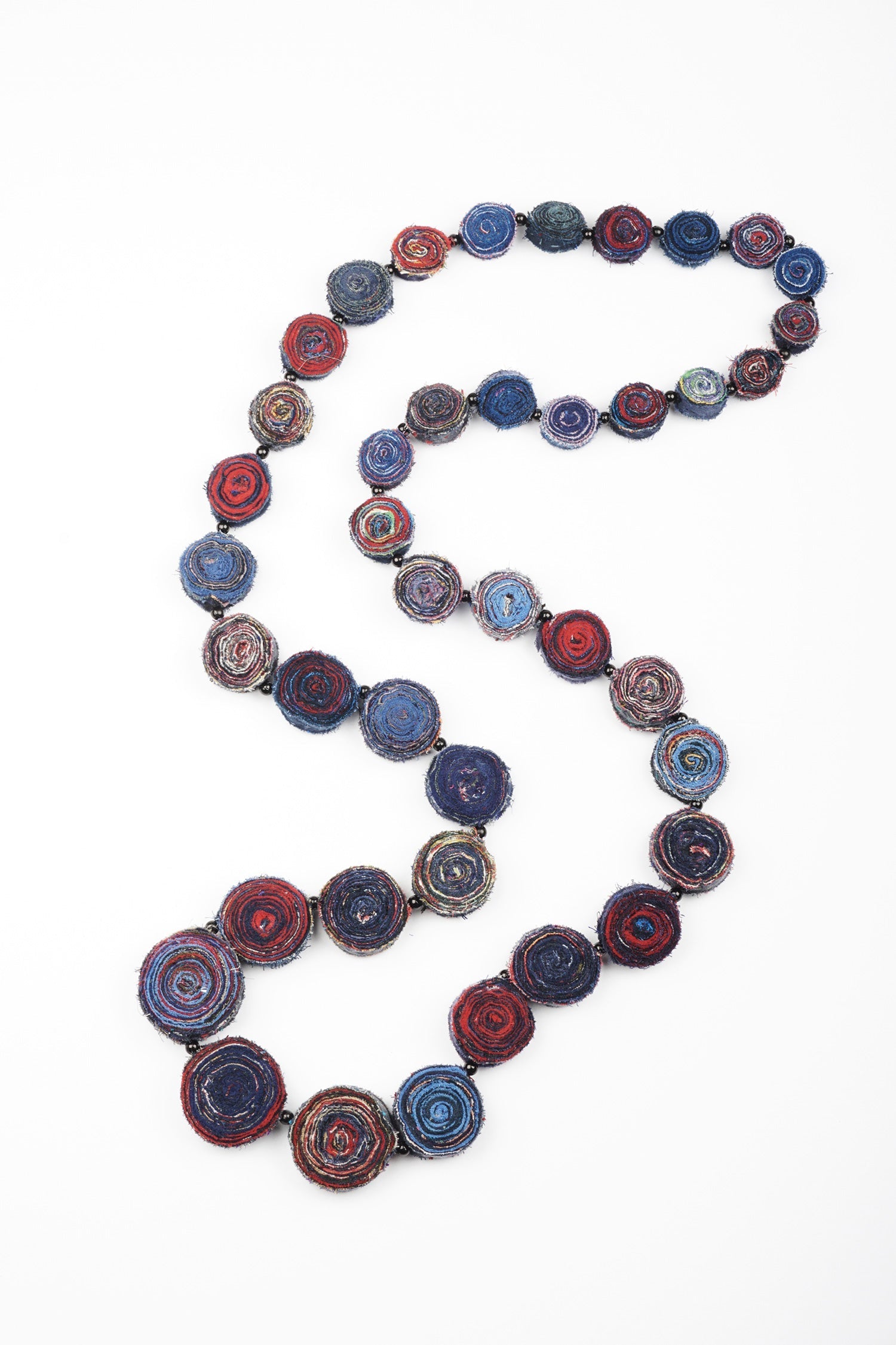 VINTAGE COTTON KANTHA SIMPLE EDDY LONG NECKLACE - cv2714-nvy -