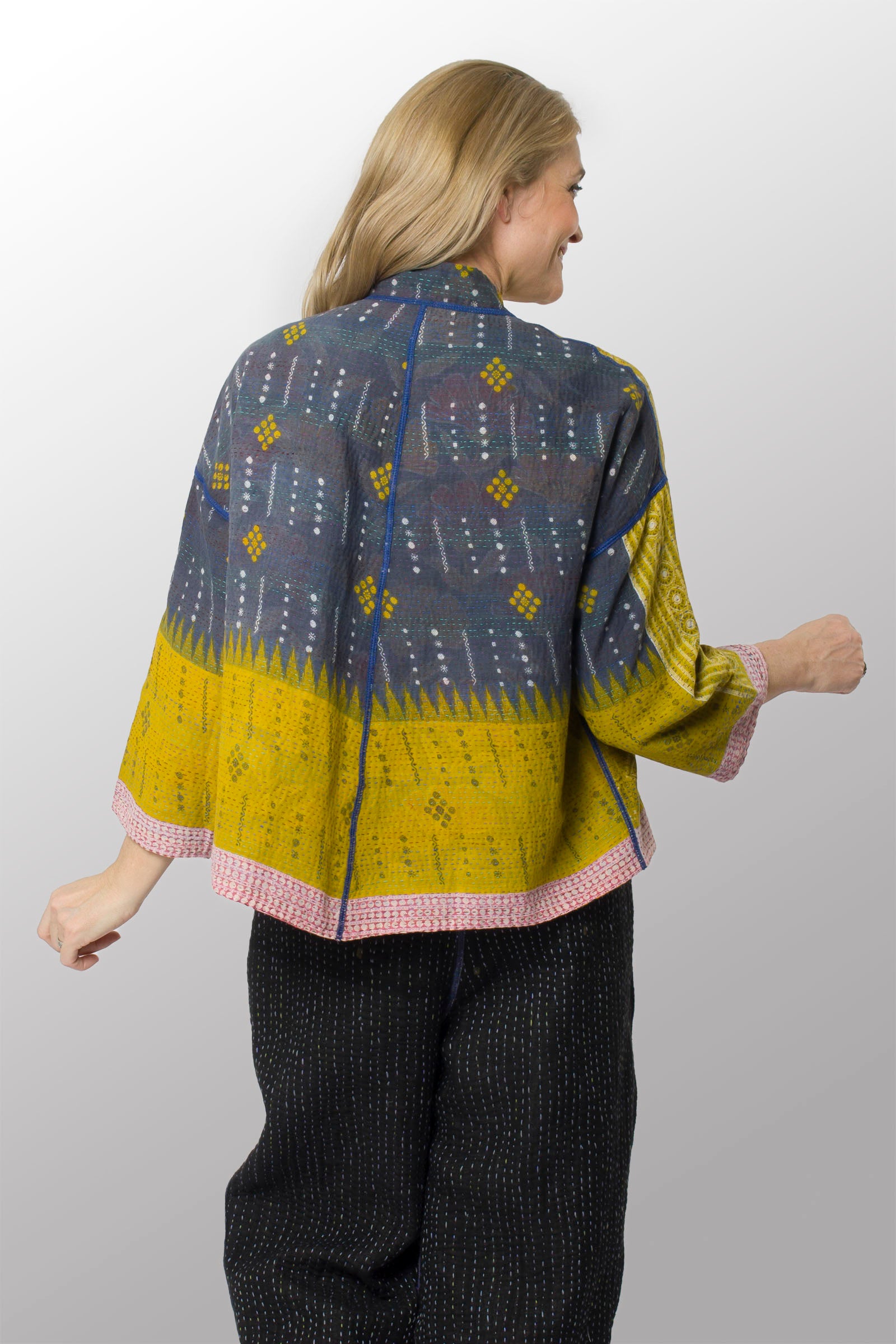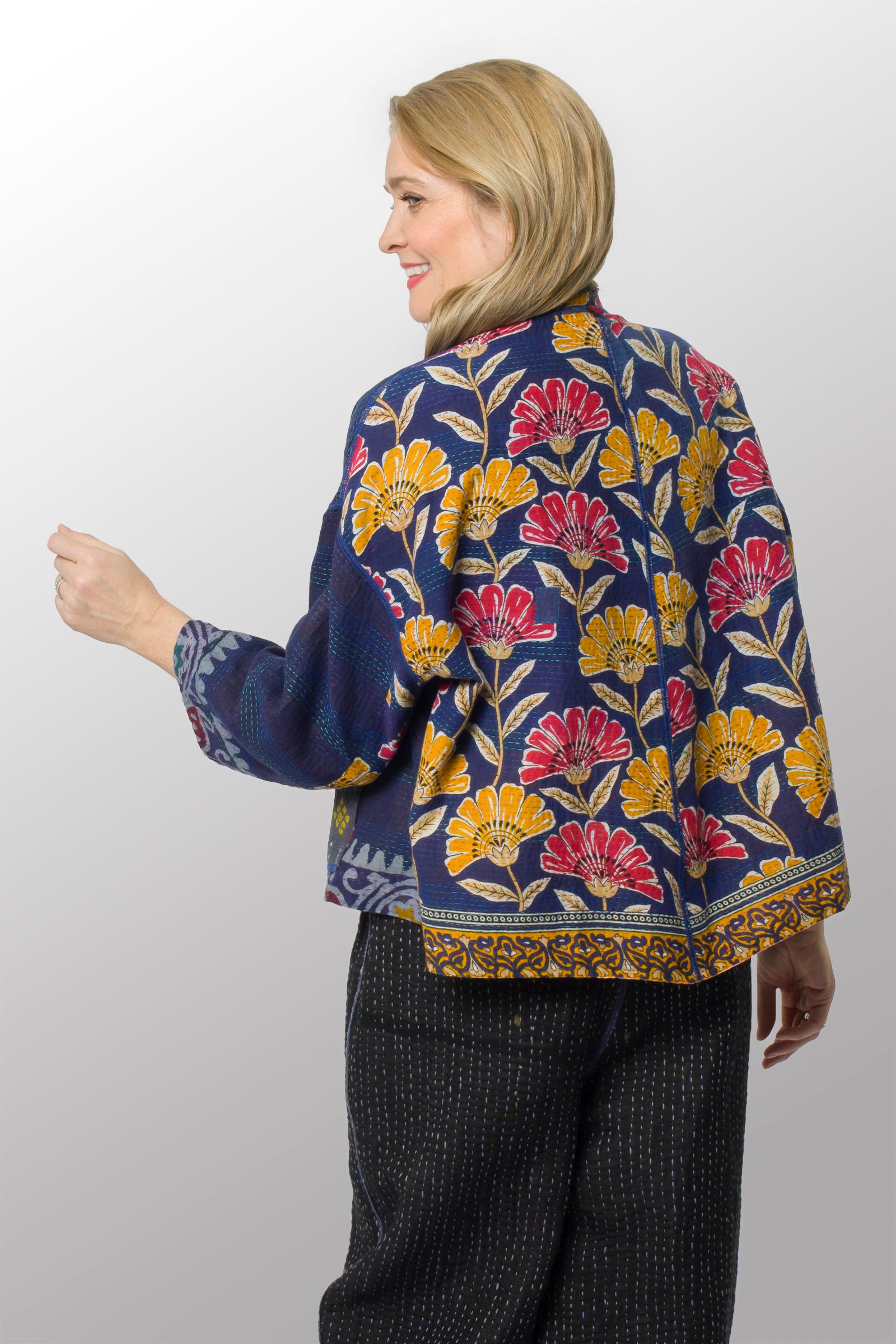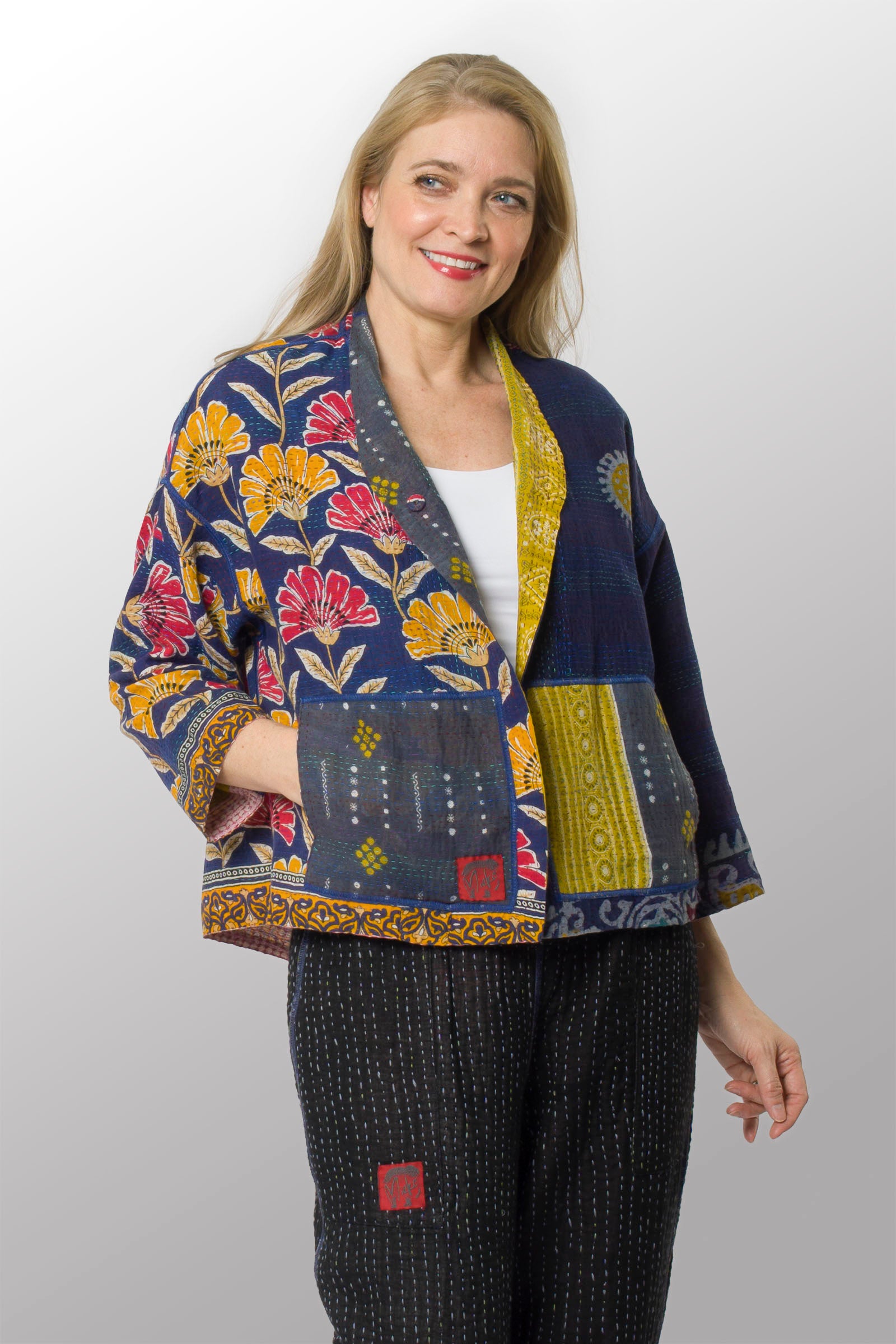 VINTAGE COTTON KANTHA STAND COLLAR CROPPED JKT - cv2034-0071a -