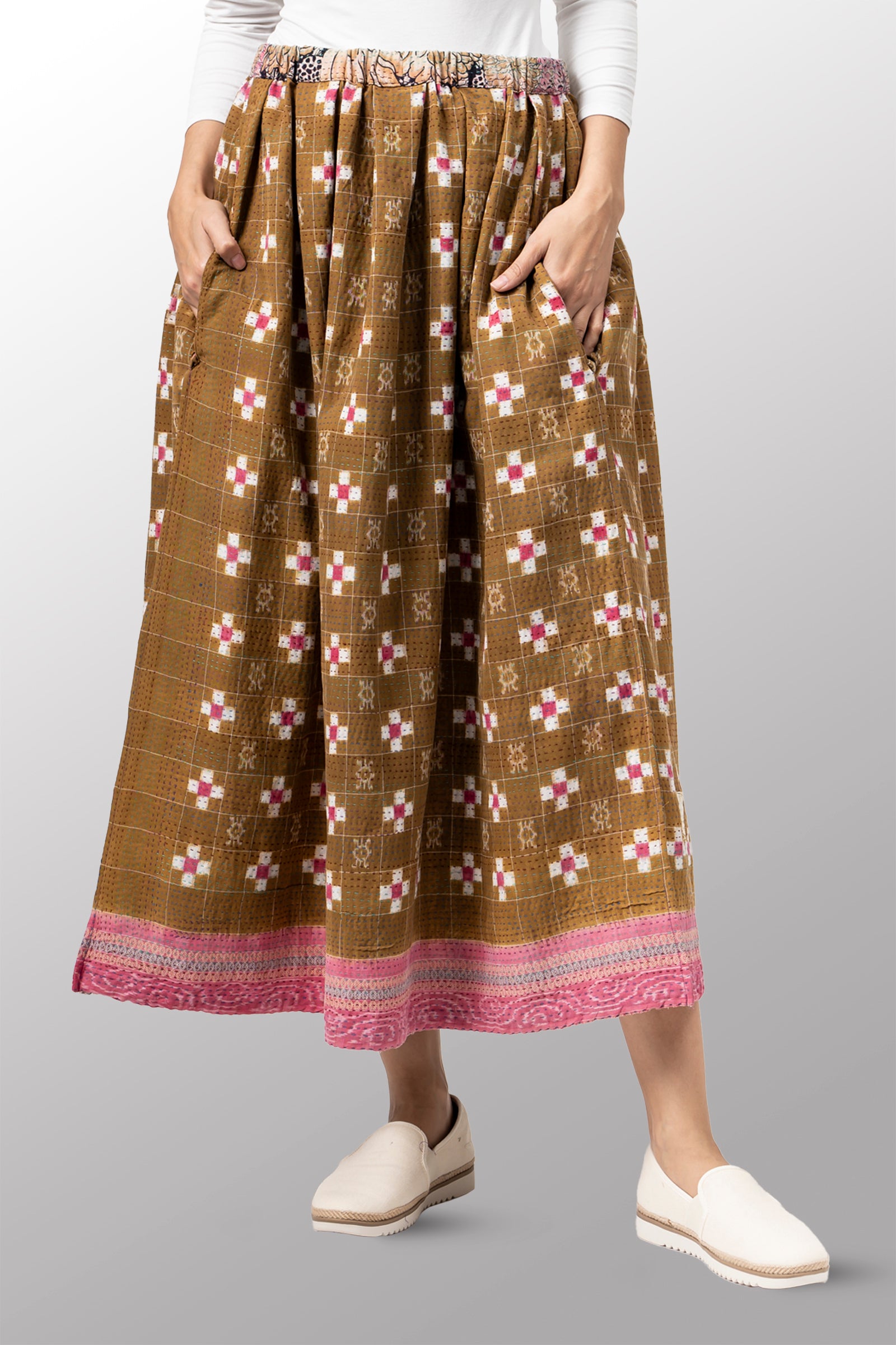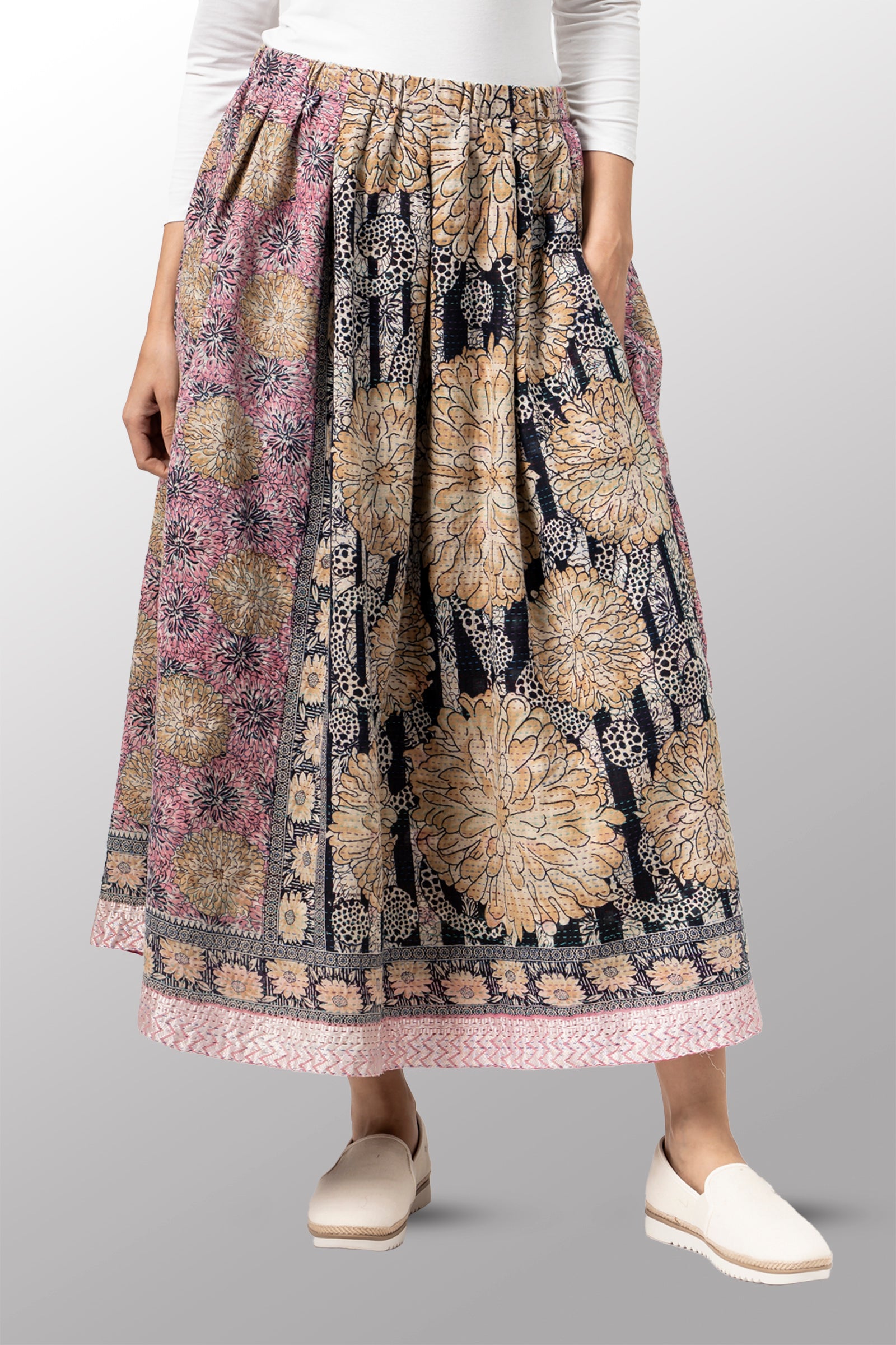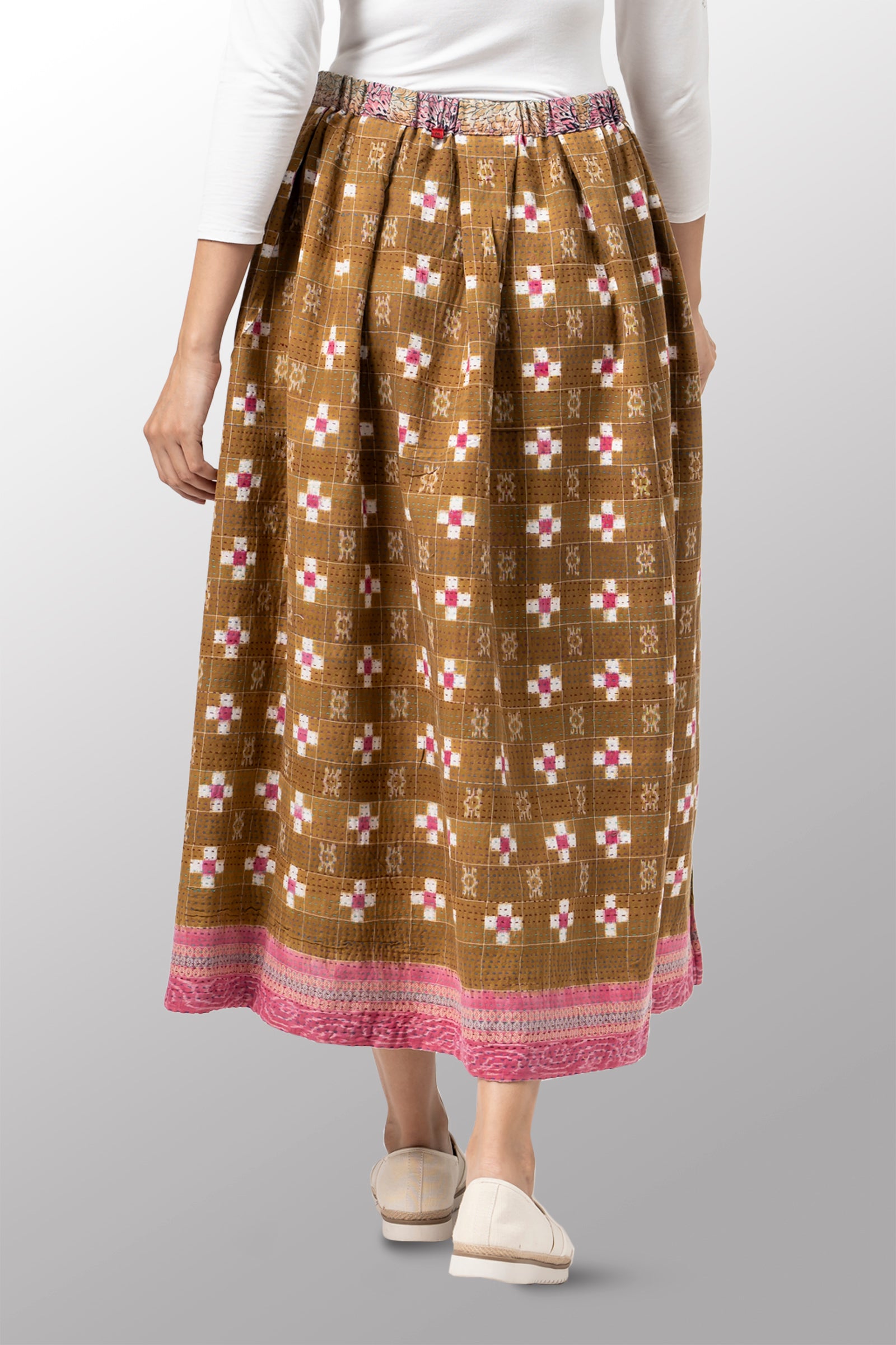 VINTAGE COTTON KANTHA TUCKED GATHER SKIRT - cv2663-0002m -