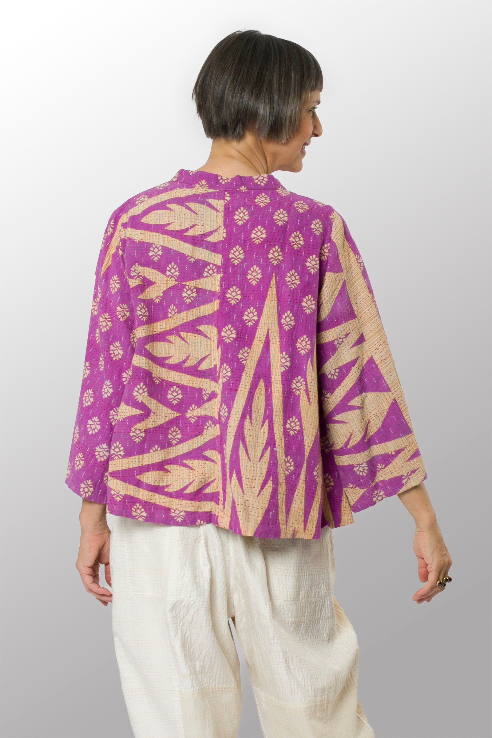 2 Layer Vintage Saris with Hand Stitches on Entire Garment - Reversible