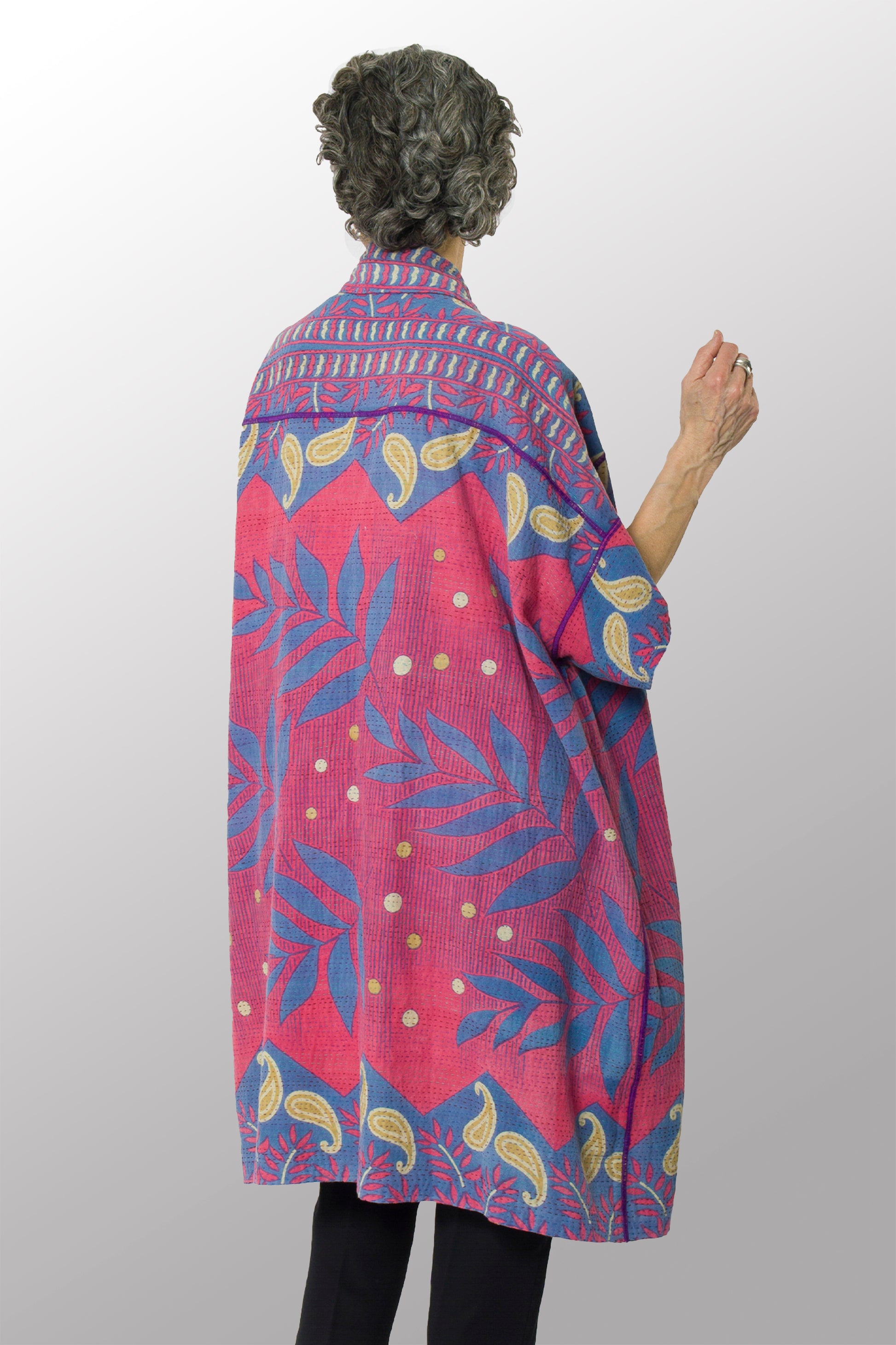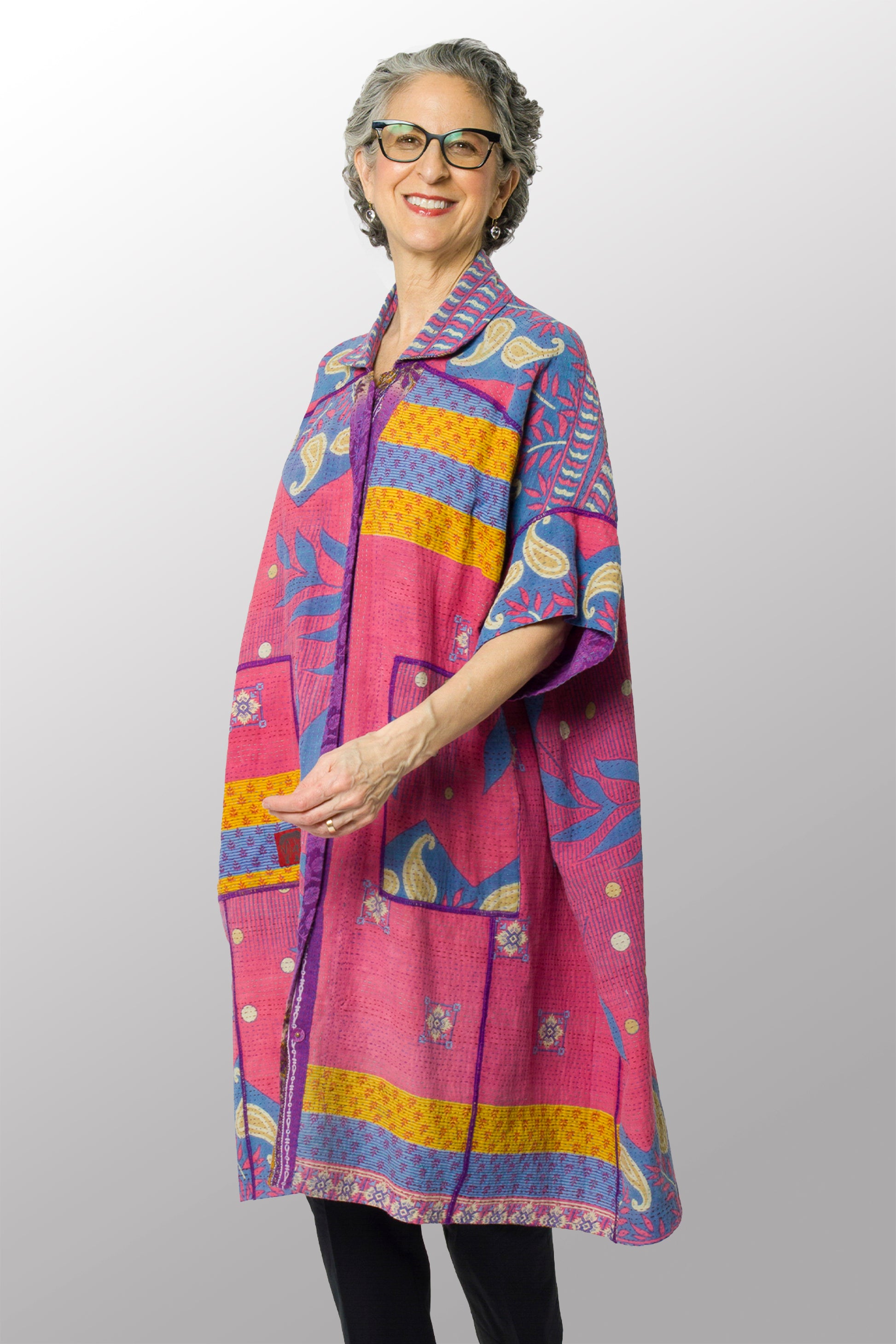 2 Layer Vintage Saris with Hand Stitches on Entire Garment - Reversible