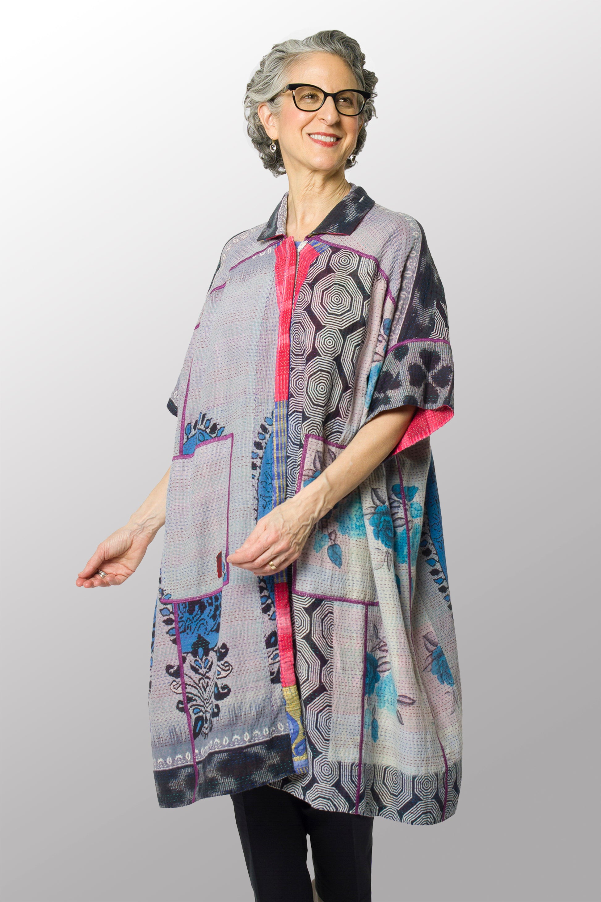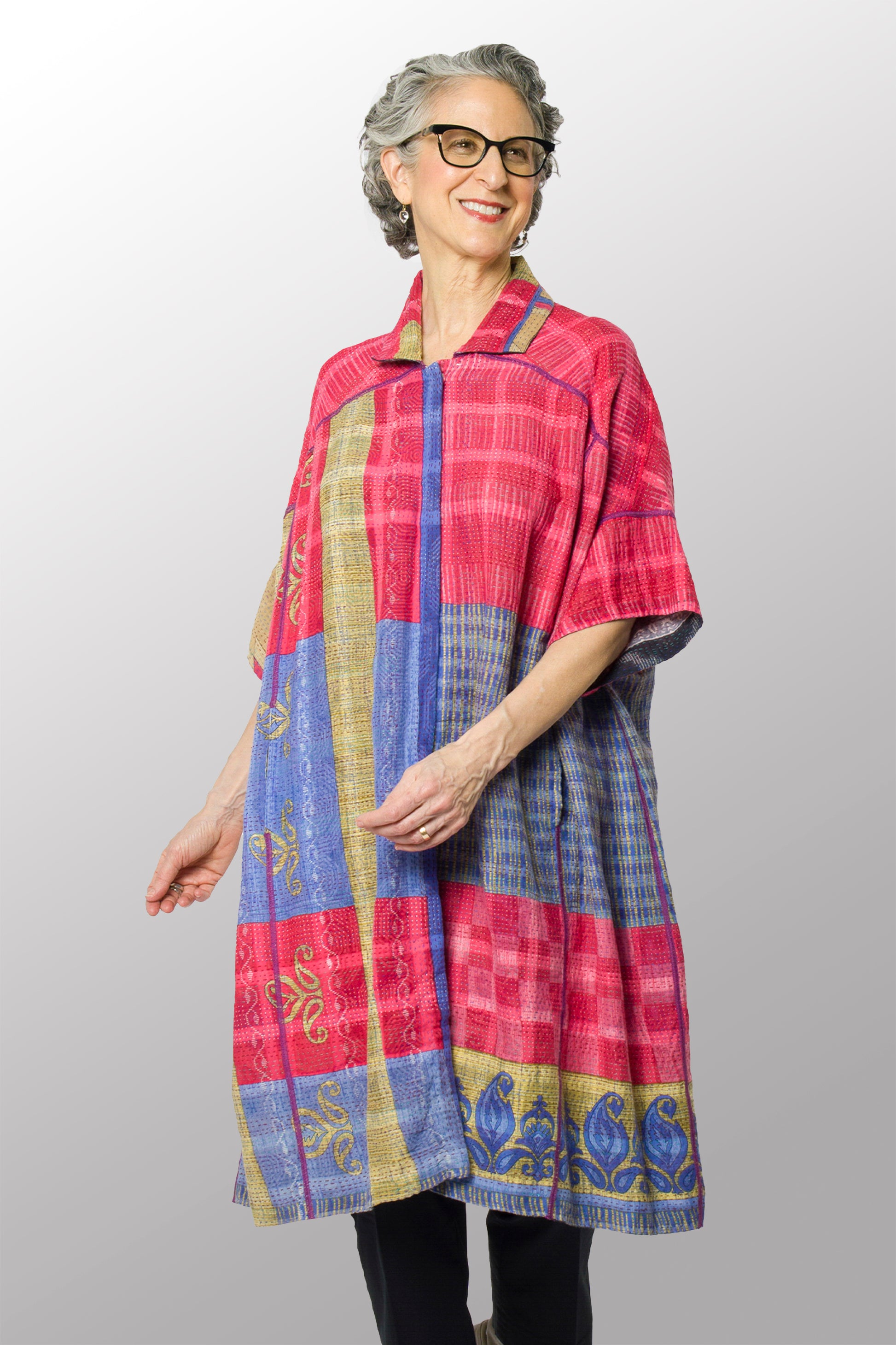 VINTAGE COTTON KANTHA WIDE SHIRT DRESS - cv2448-0002a -