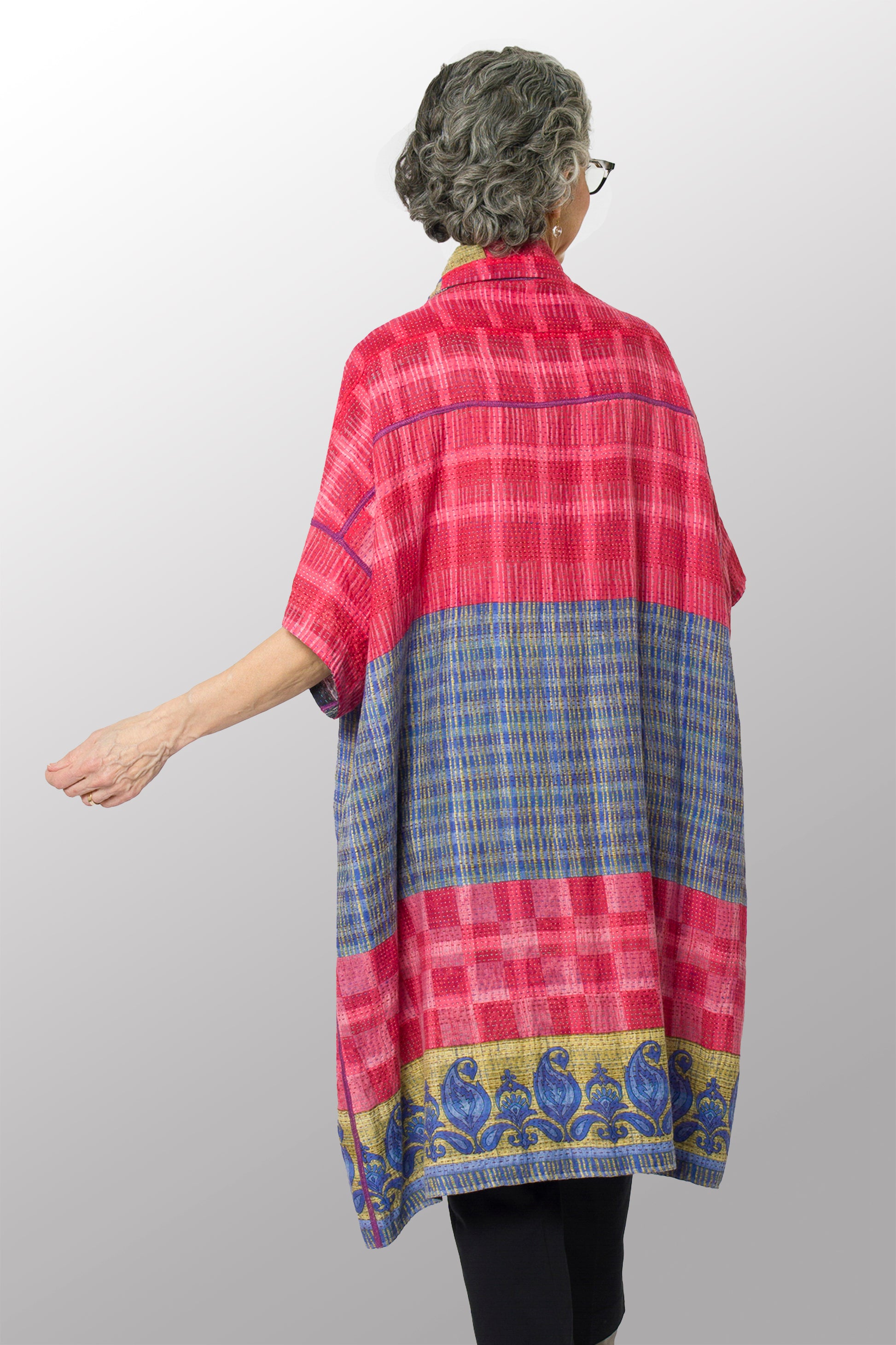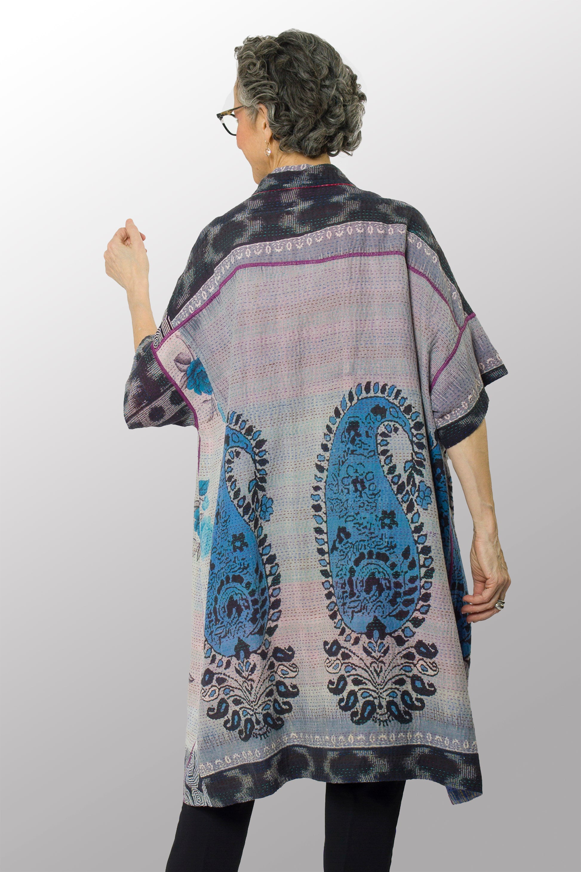 2 Layer Vintage Saris with Hand Stitches on Entire Garment - Reversible