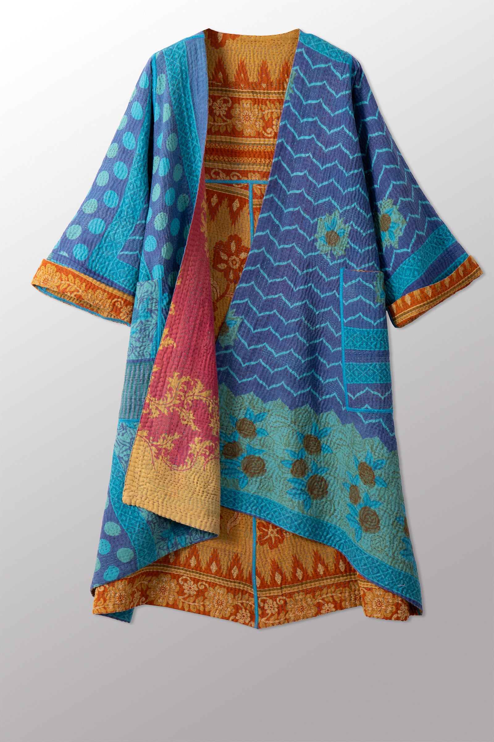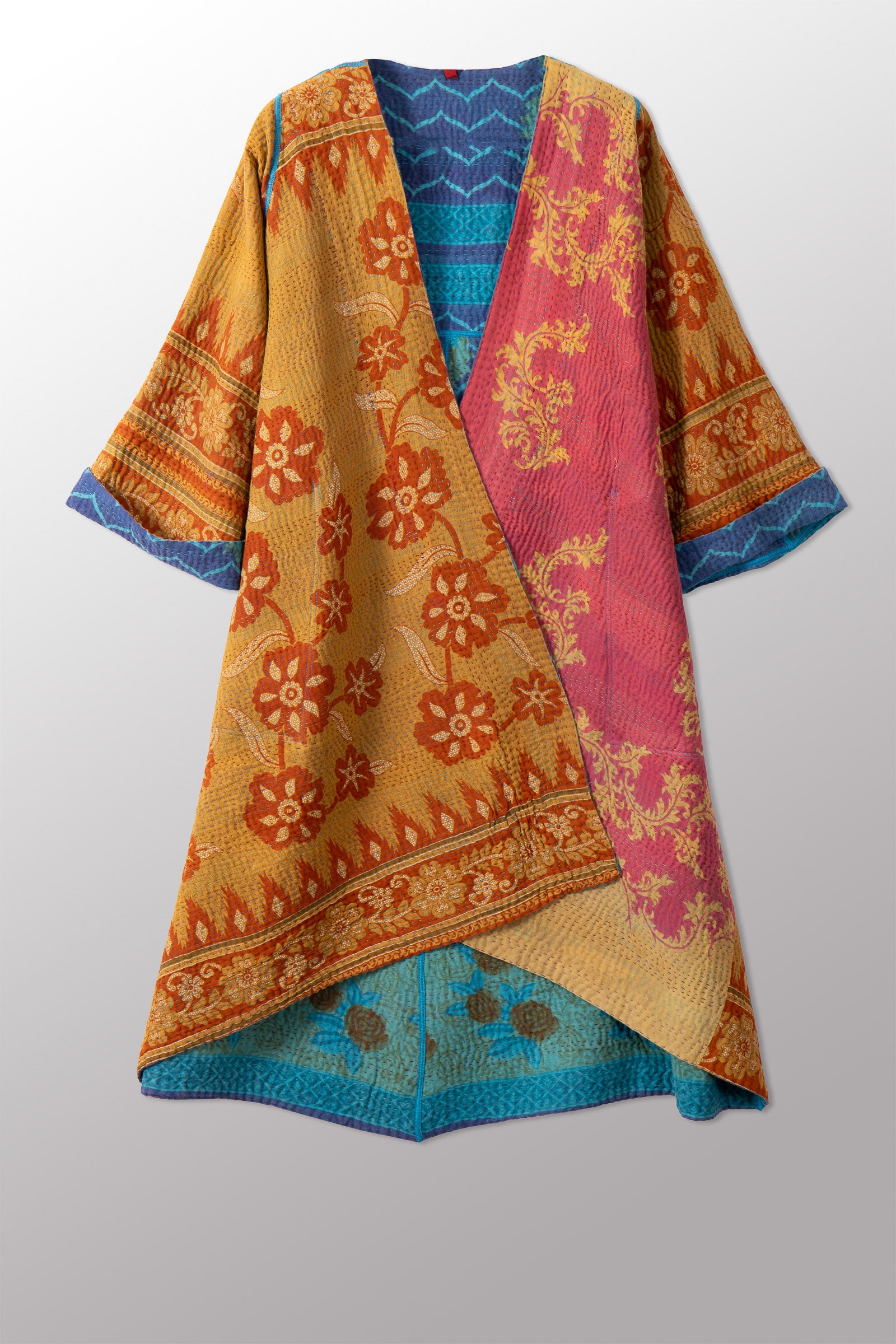 4 Layer Vintage Saris with Hand Stitches on Entire Garment - Reversible