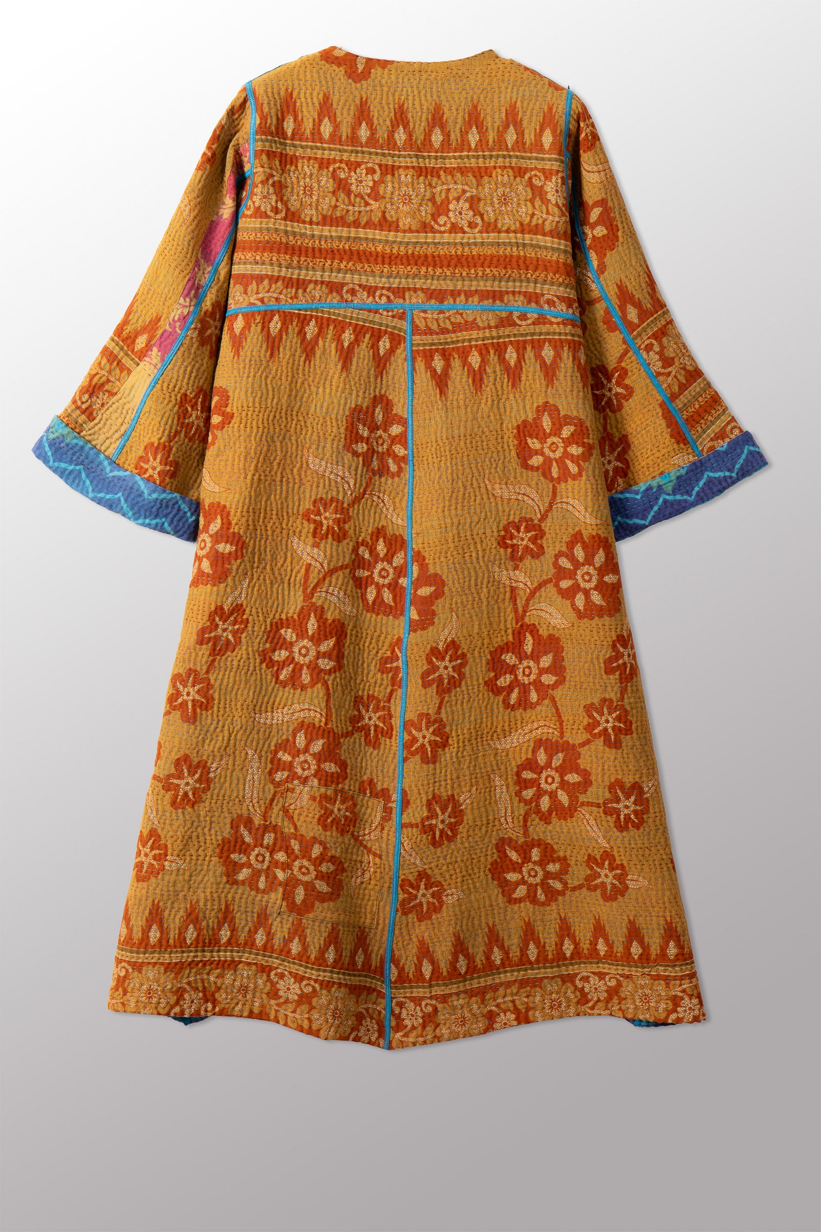 VINTAGE COTTON KANTHA WRAP FLARE COAT - cv4330-0024a -