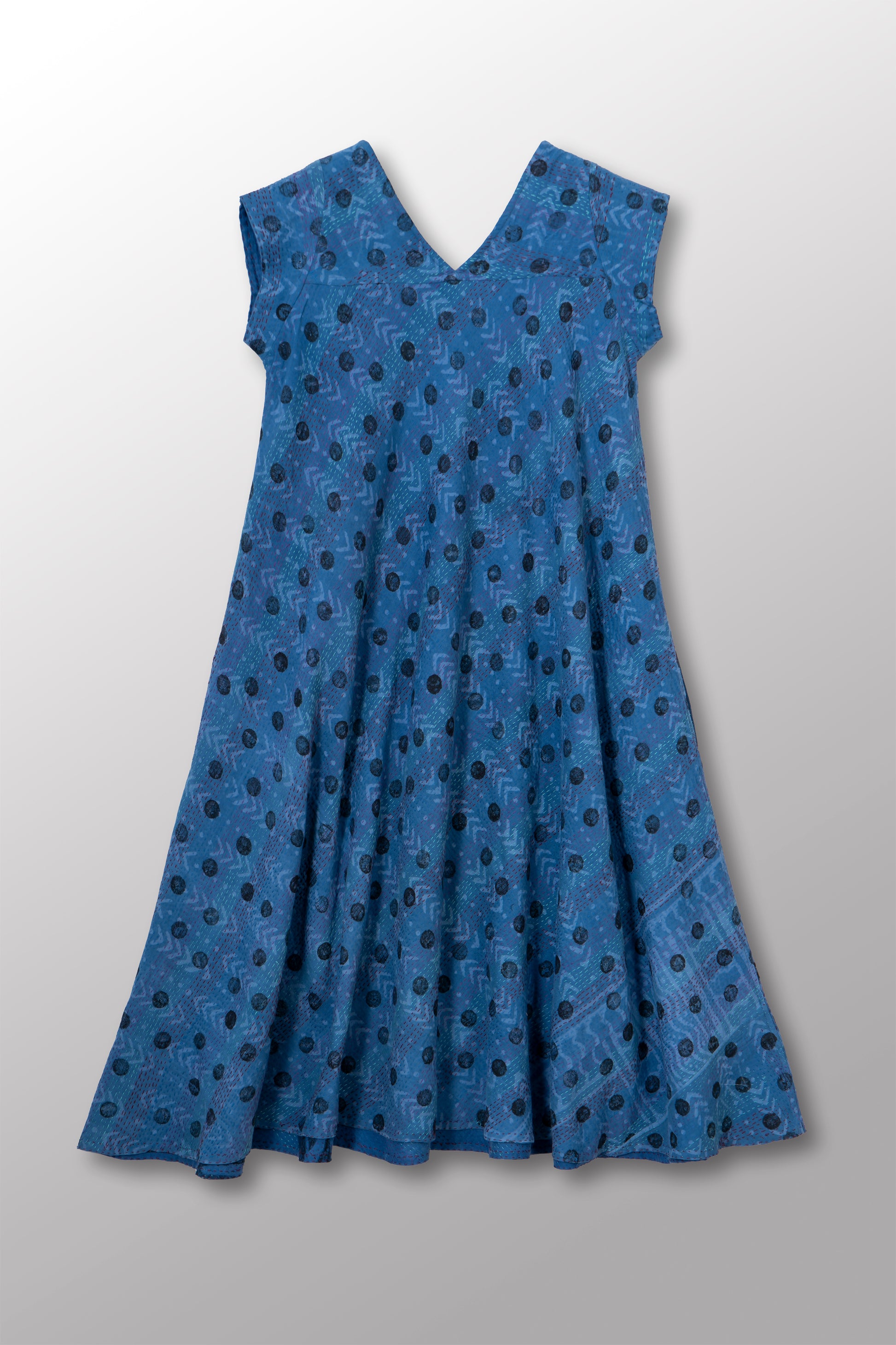 VINTAGE COTTON & NEW VOILE KANTHA CAP SLV. FLARE DRESS - cn2425-0006m -