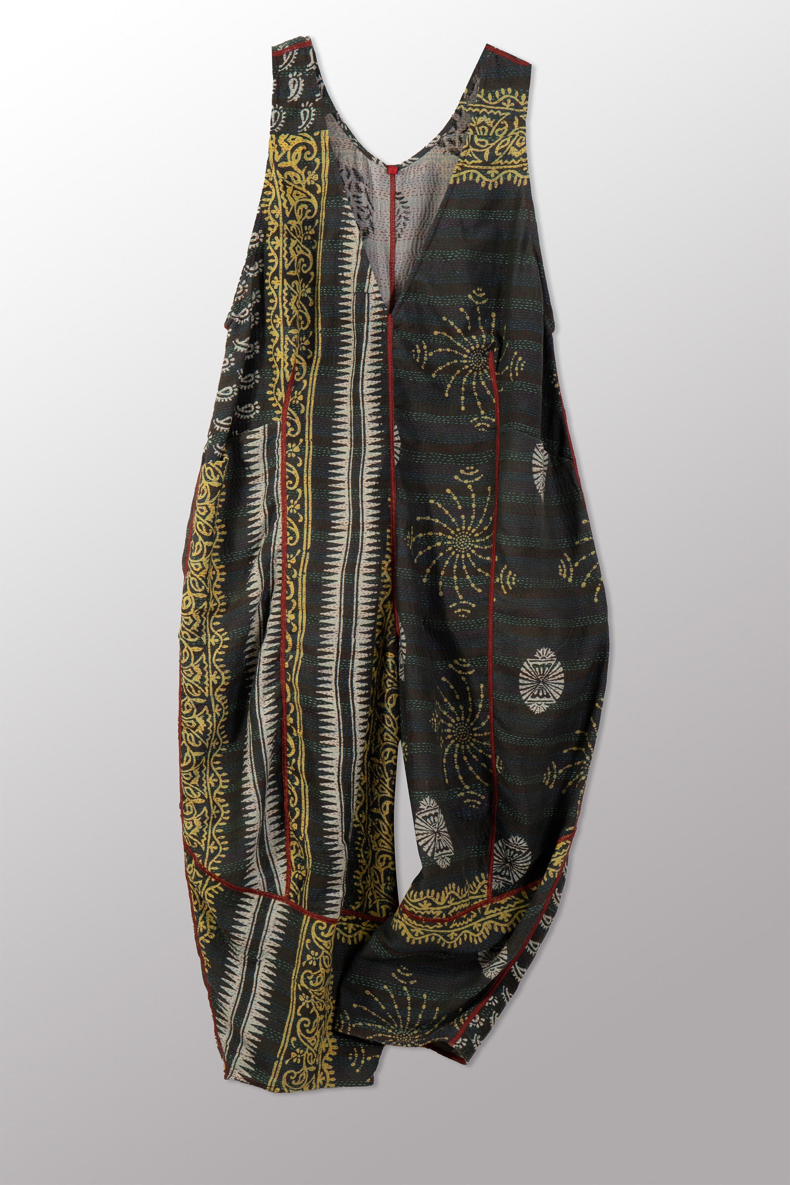 VINTAGE COTTON & NEW VOILE KANTHA V-NECK JUMPER - cn2622-0001s -