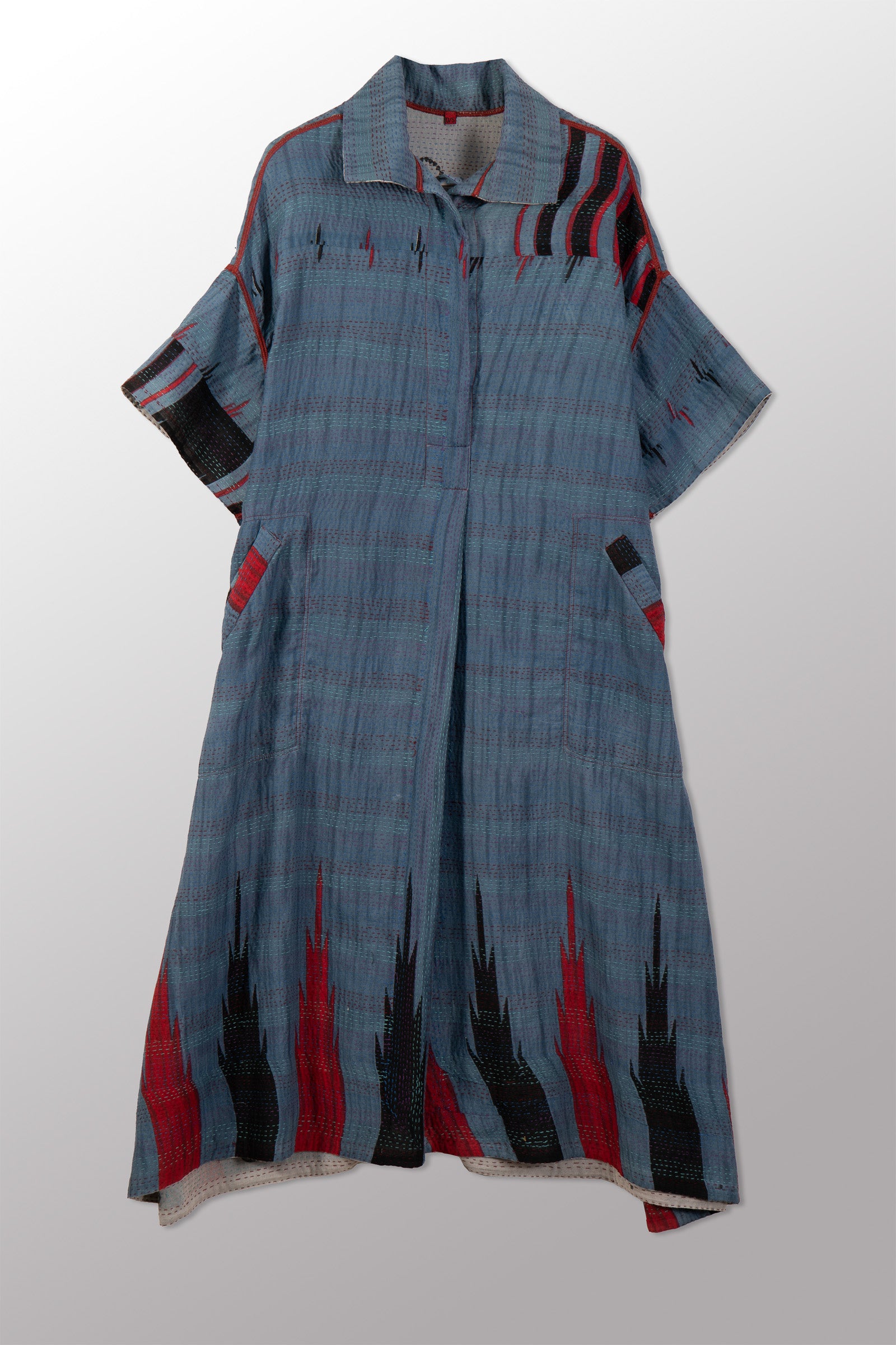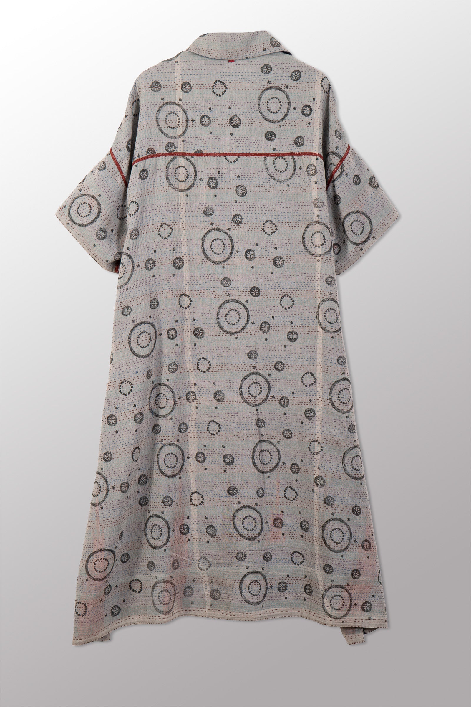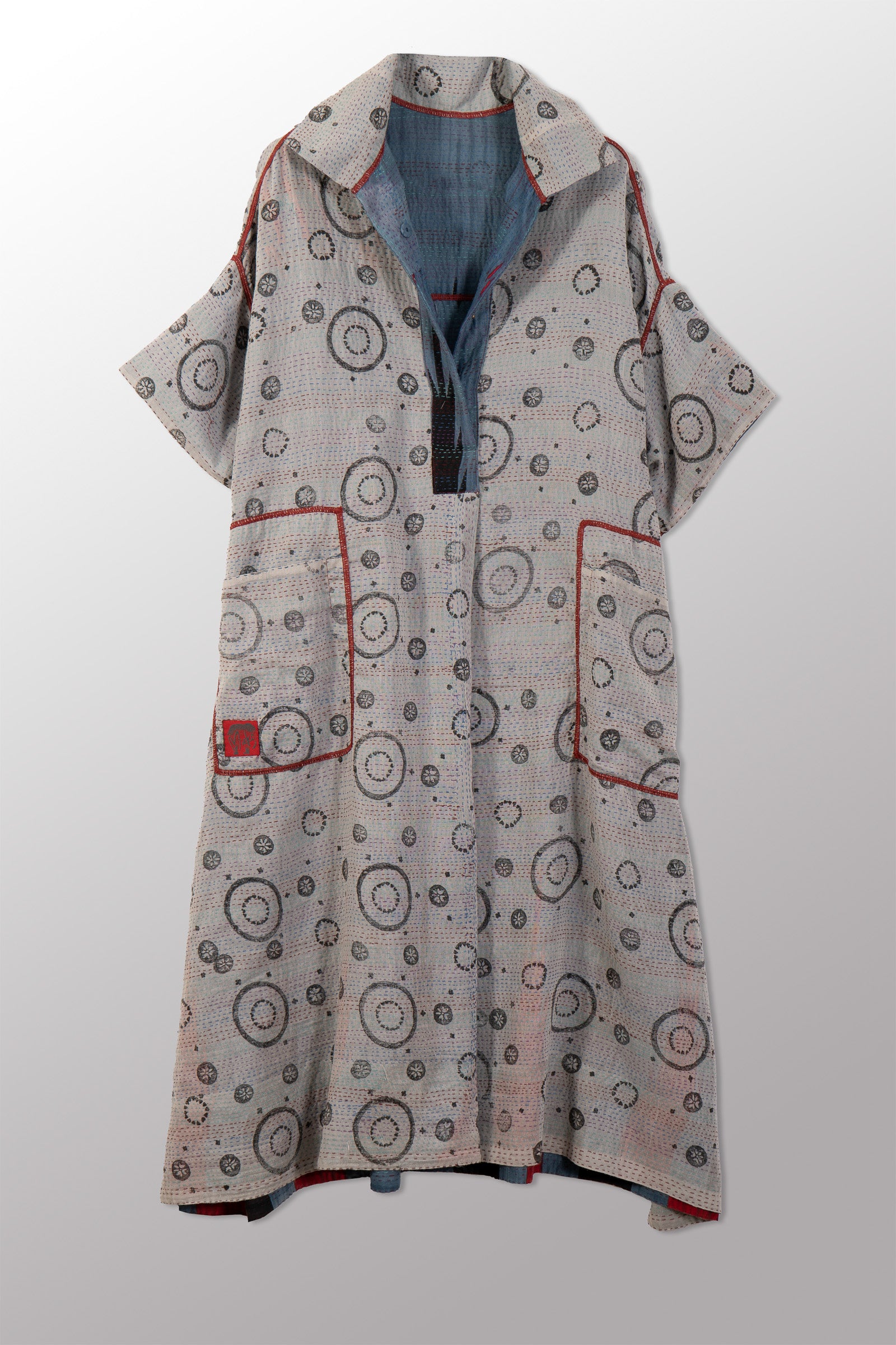 VINTAGE COTTON & NEW VOILE KANTHA WING COLLAR DRESS - cn2454-0002a -