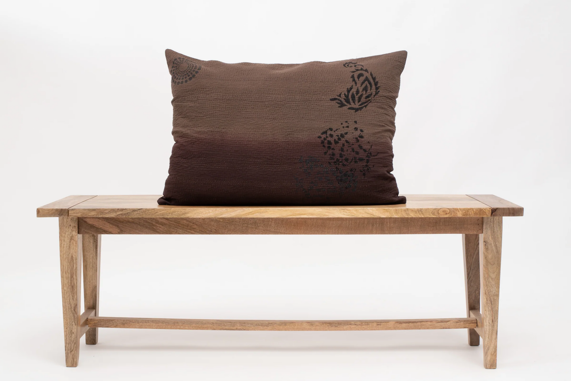Vintage Fray Patch & Ombre Kantha Pillow Sham -Chocolate -