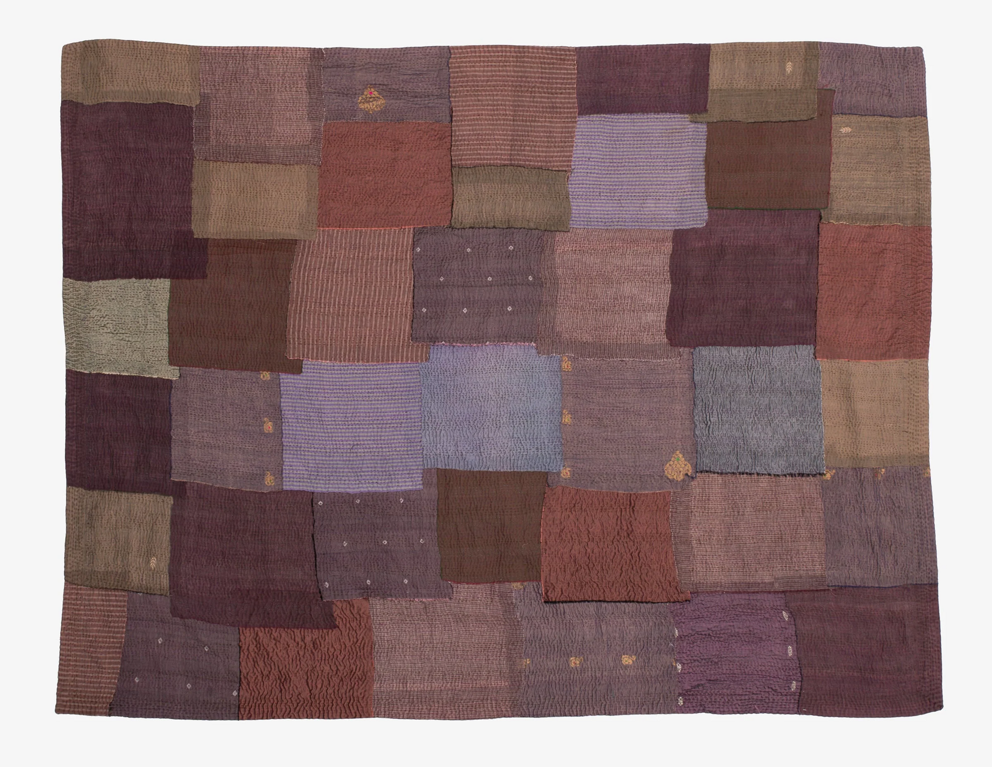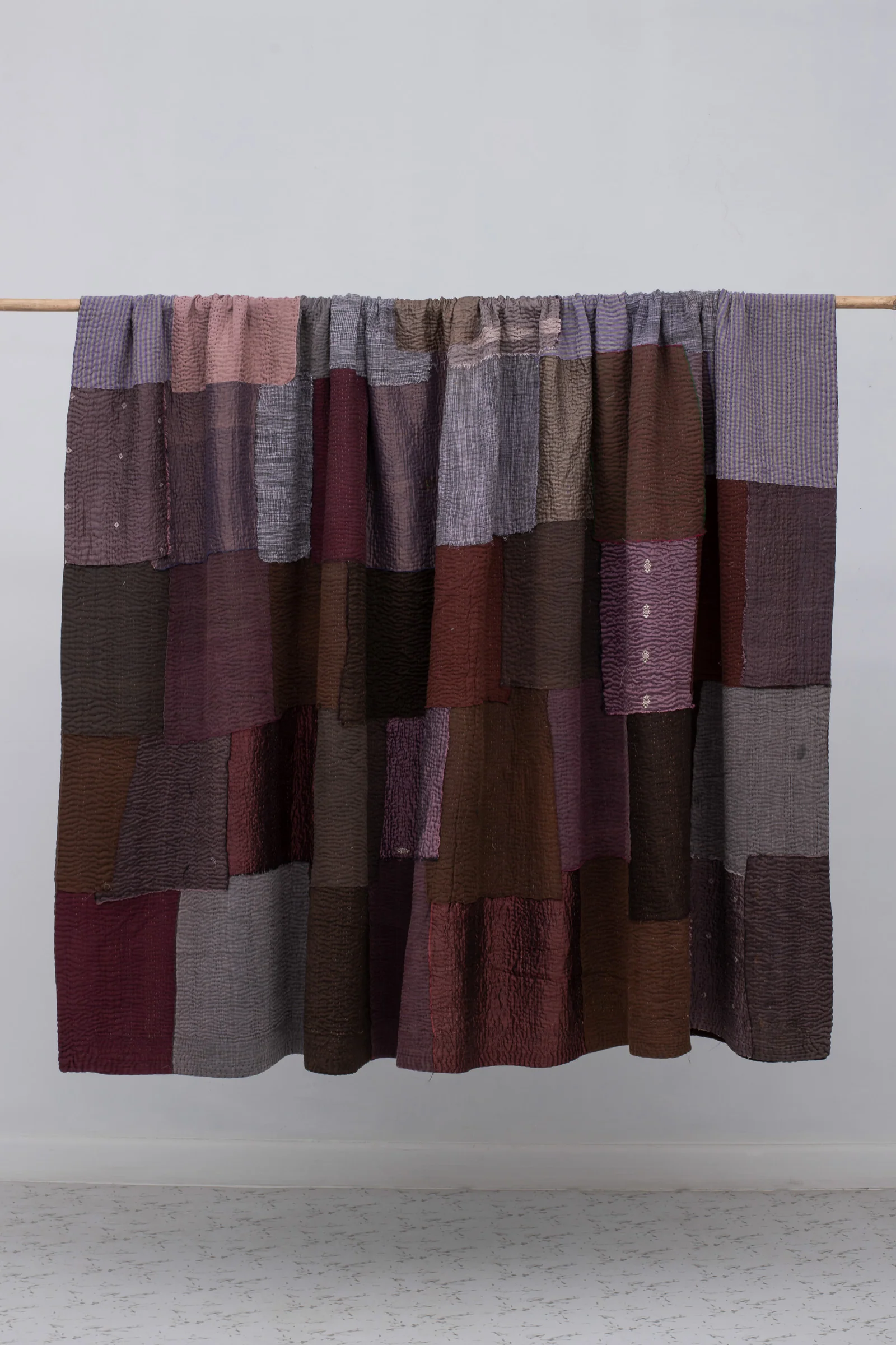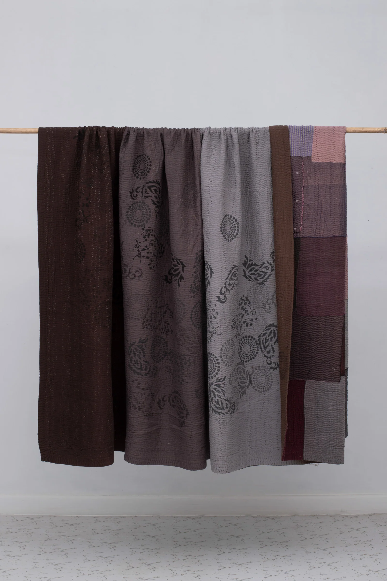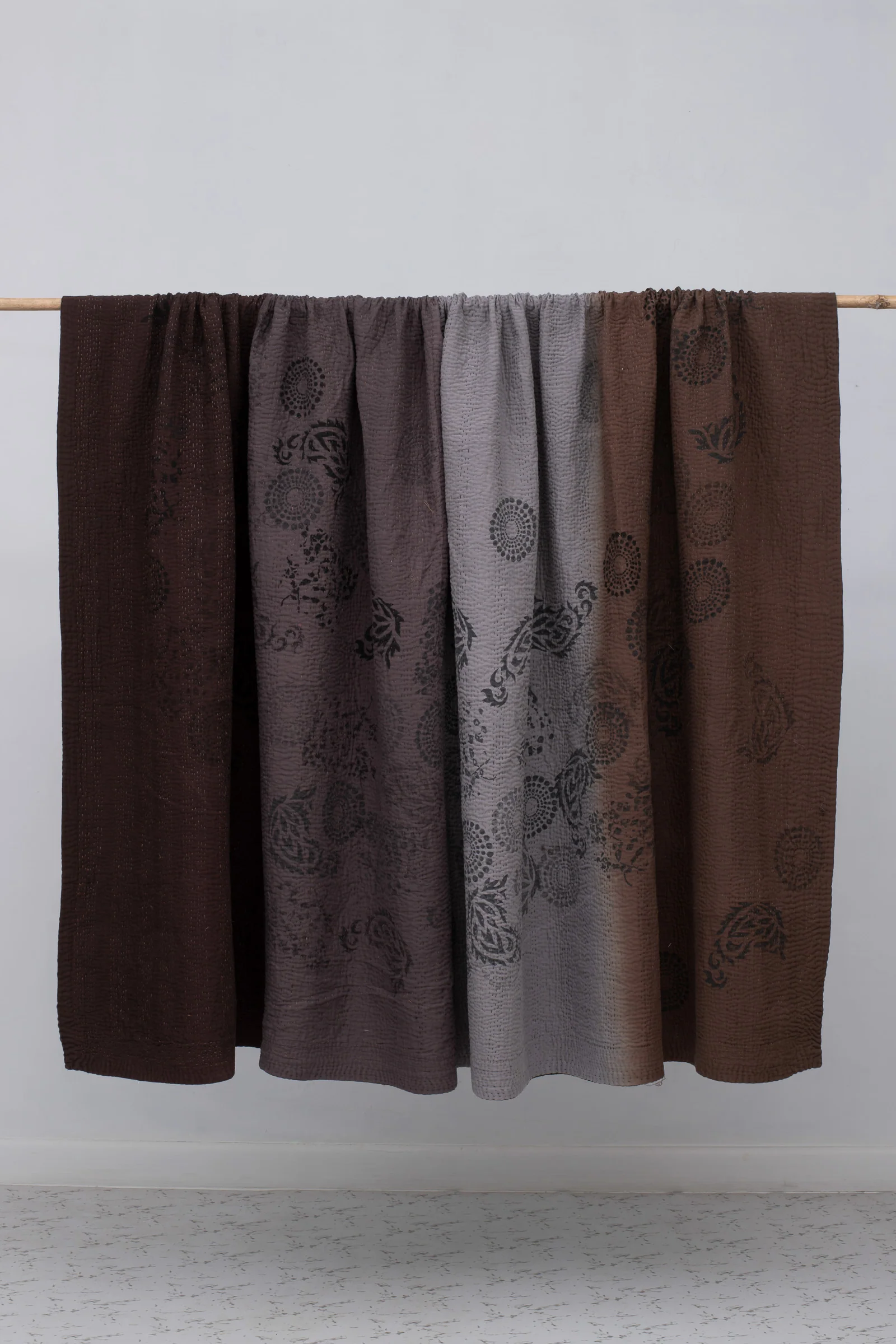Vintage Fray Patch & Ombre Kantha Throw -Chocolate -