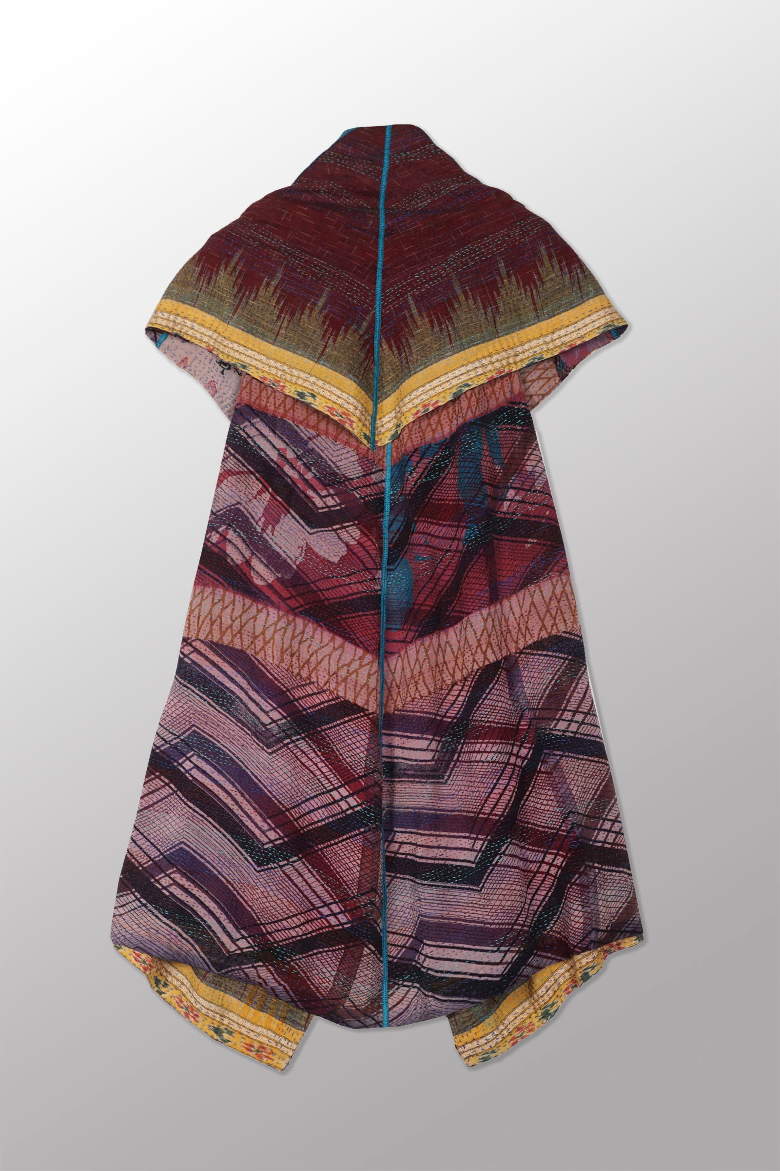 VINTAGE SILK GEORGETTE COTTON KANTHA CIRCULAR VEST - gc2201-9017a -