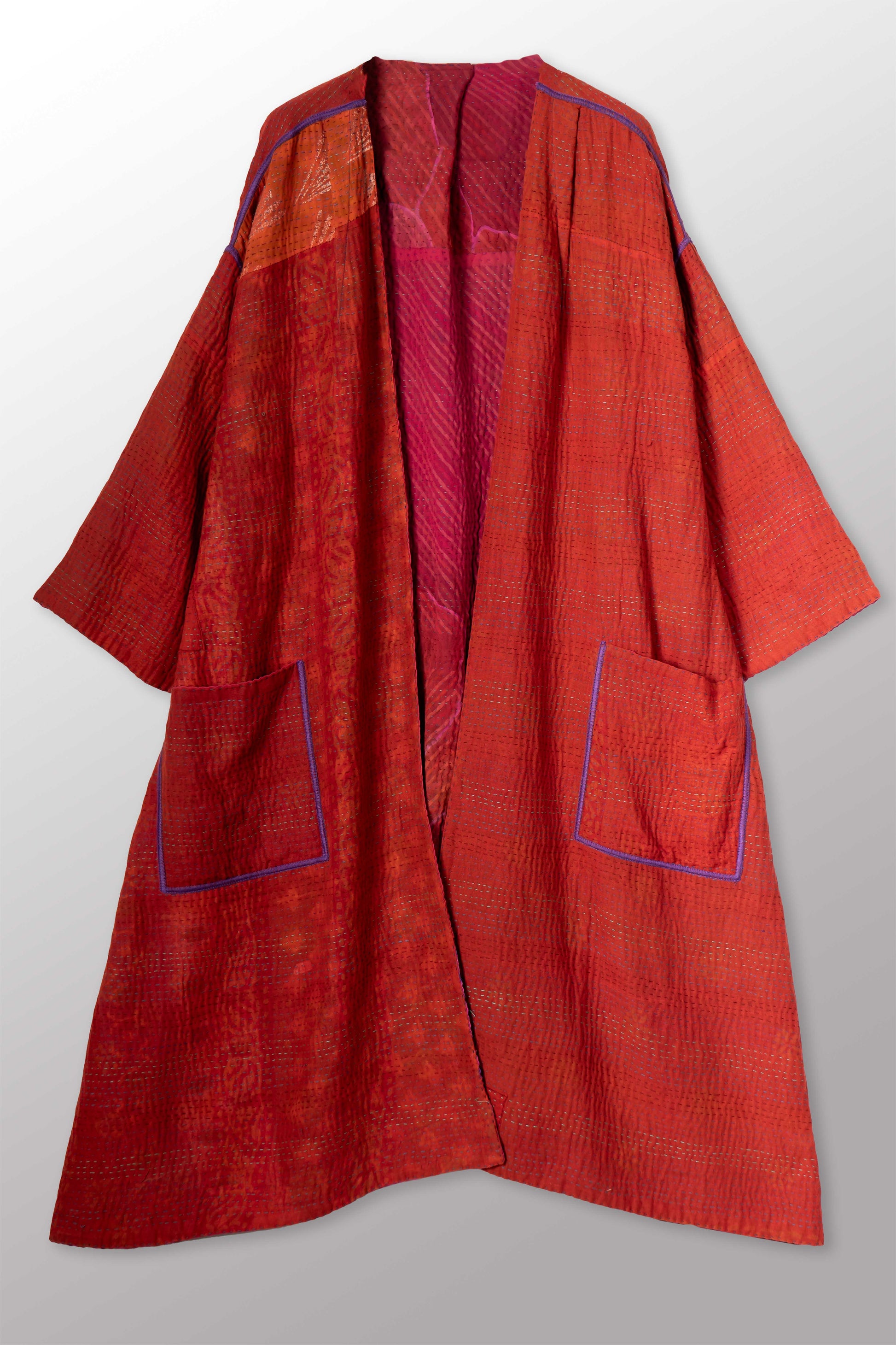 4 Layer Vintage Saris with Hand Stitches on Entire Garment - Reversible
