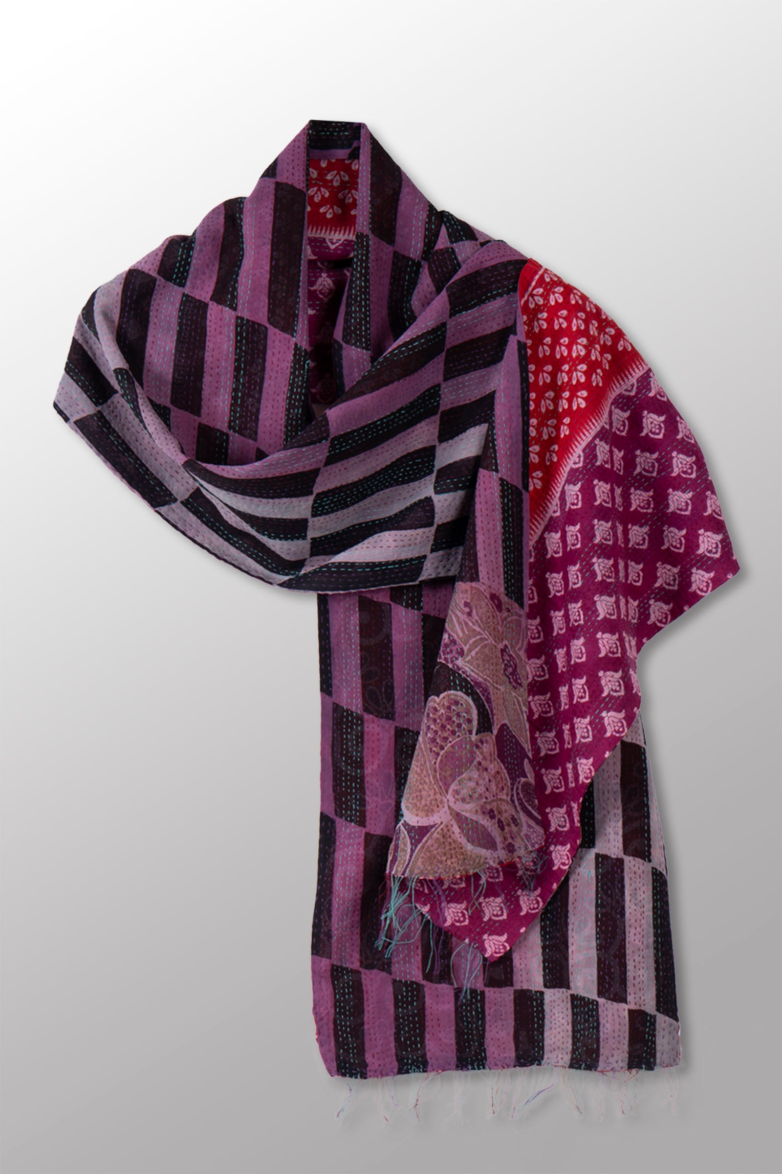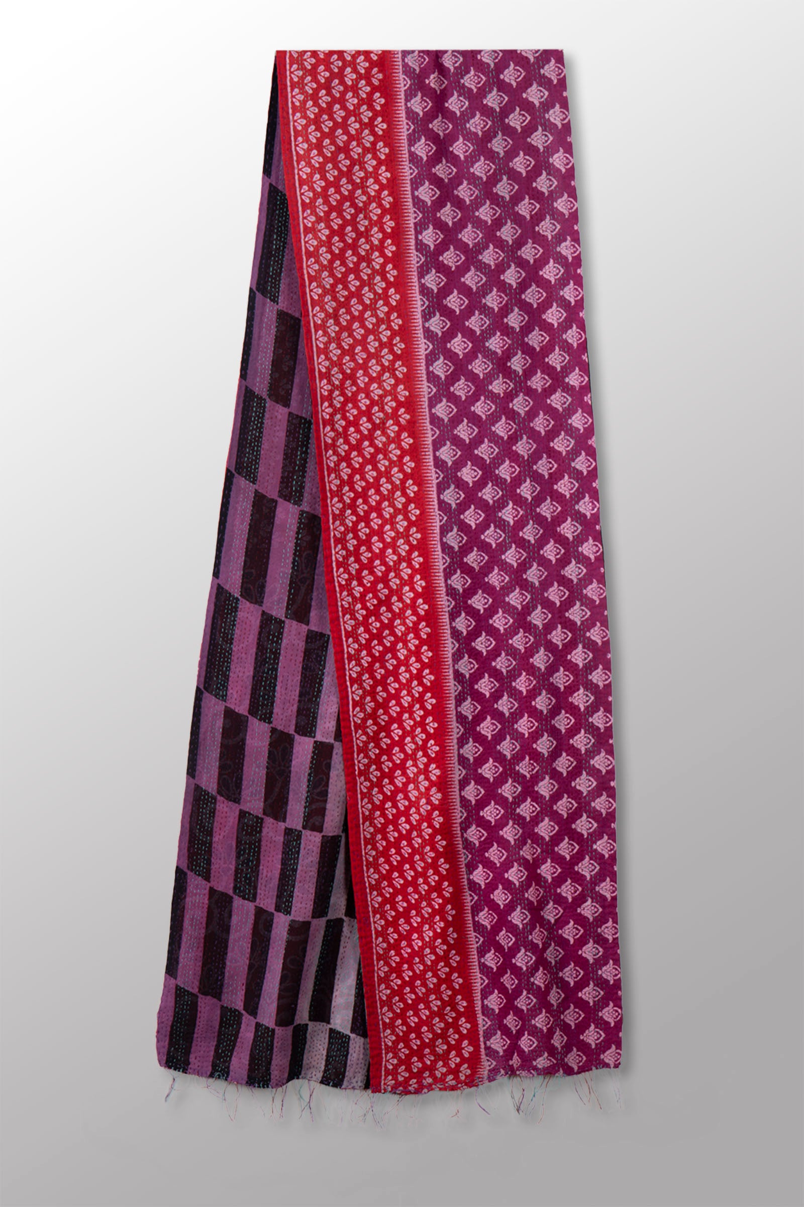 VINTAGE SILK GEORGETTE COTTON KANTHA SCARF SHORT - gc2805-prp -