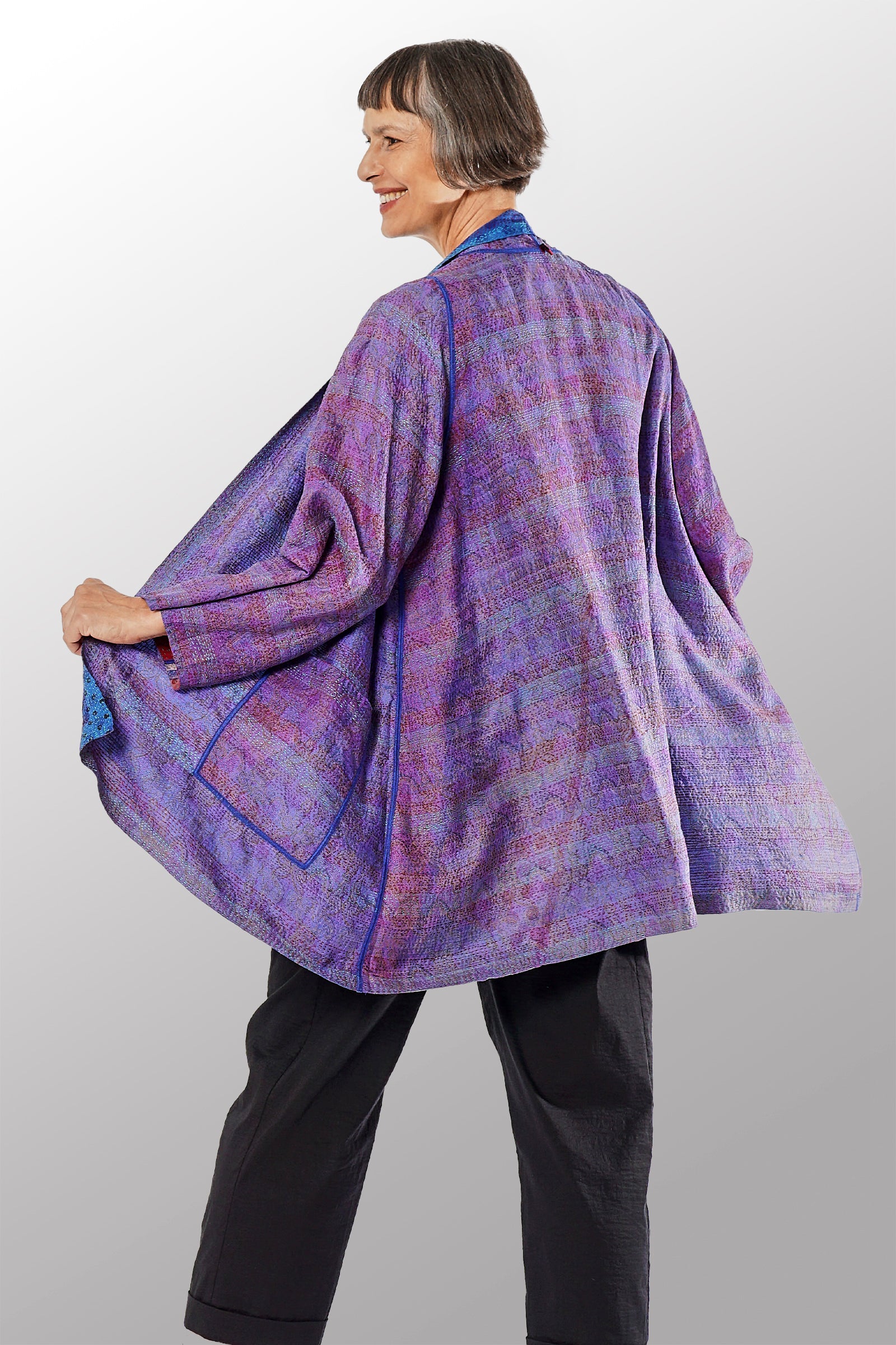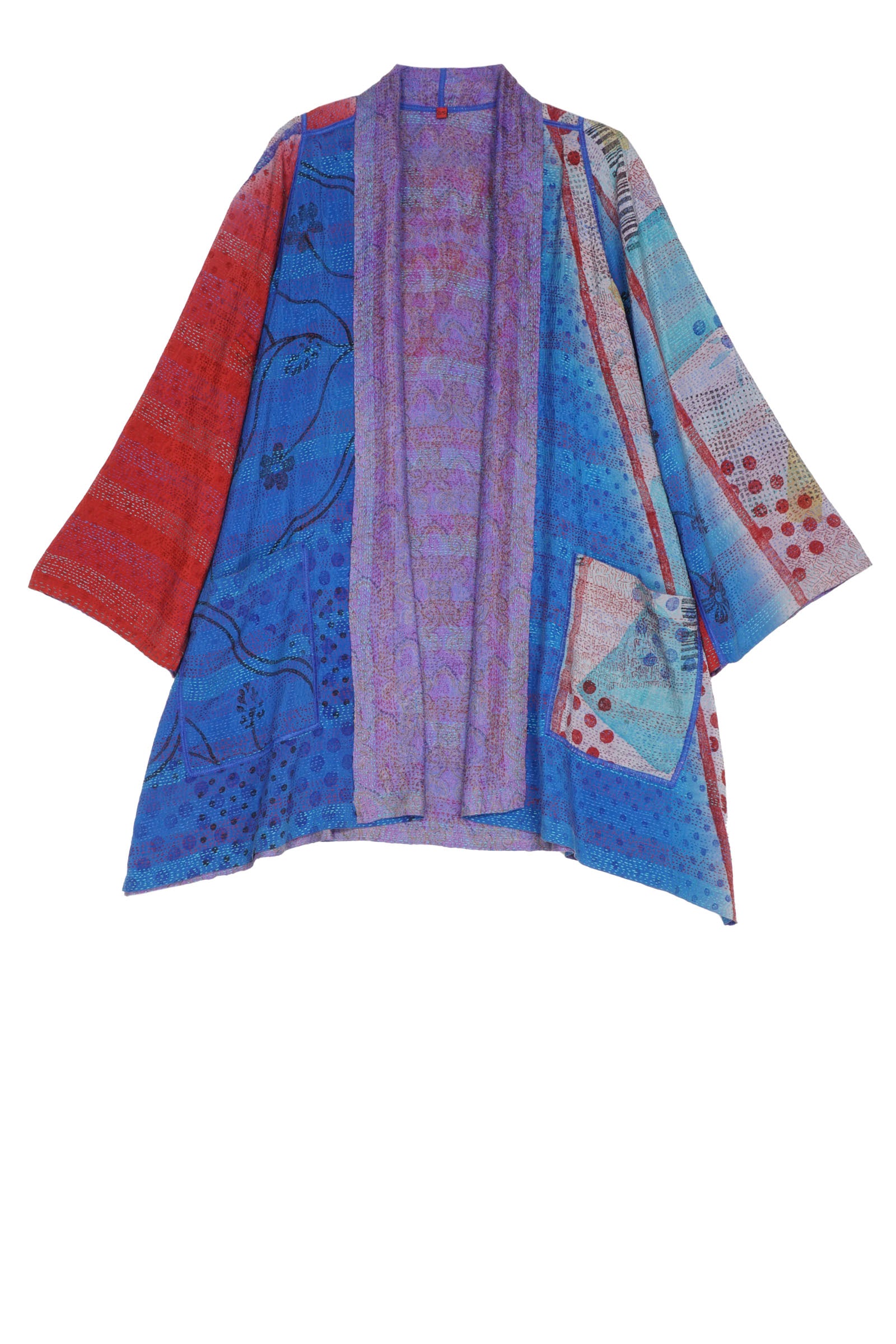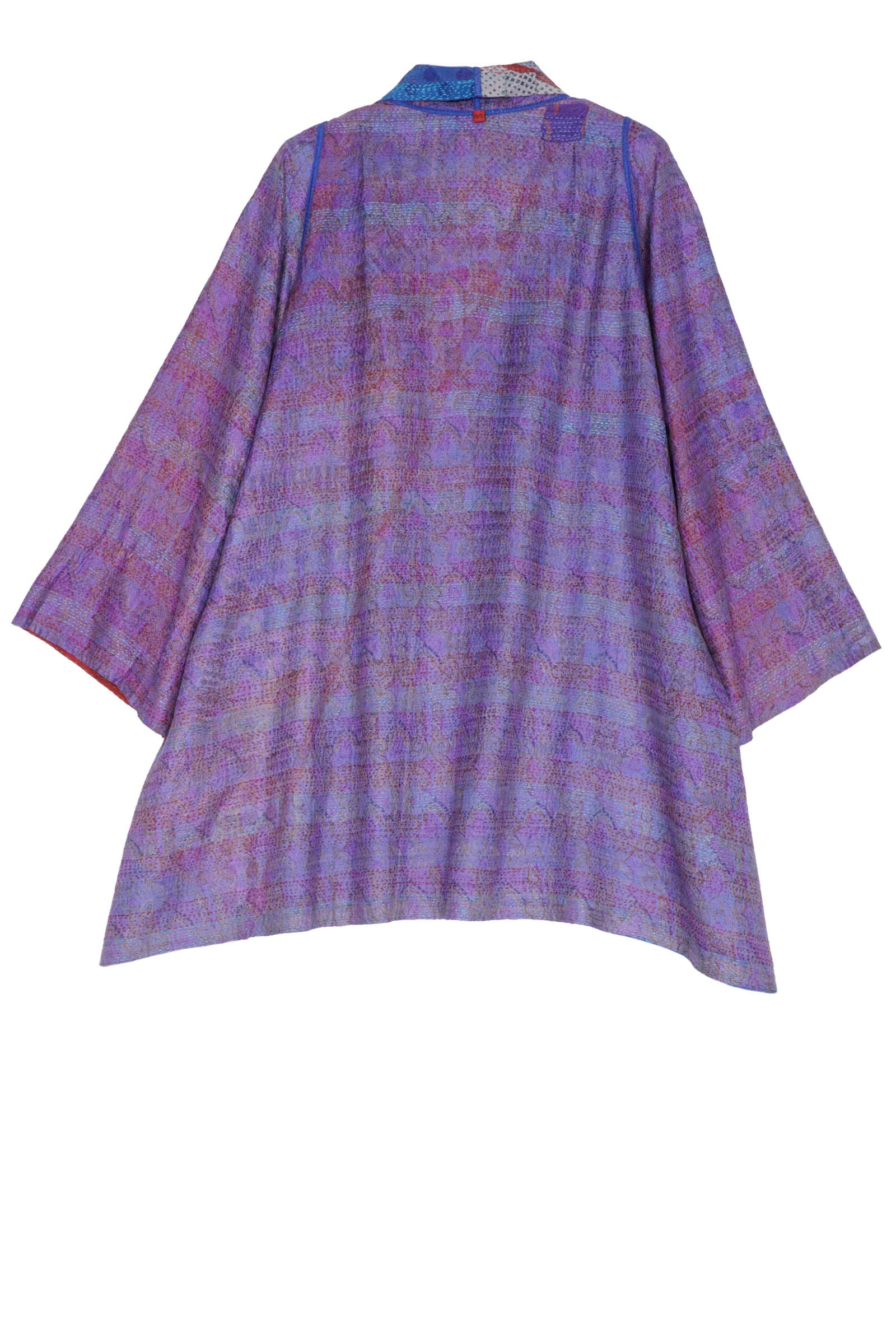 VINTAGE SILK GEORGETTE KANTHA A-LINE JKT - sg2003-0008a -
