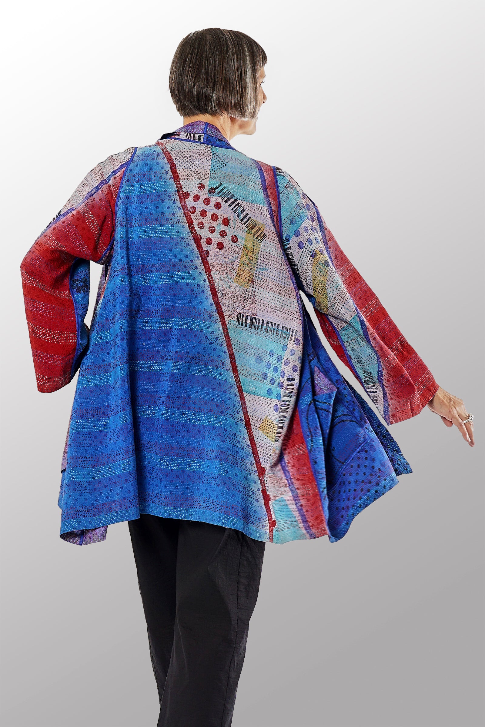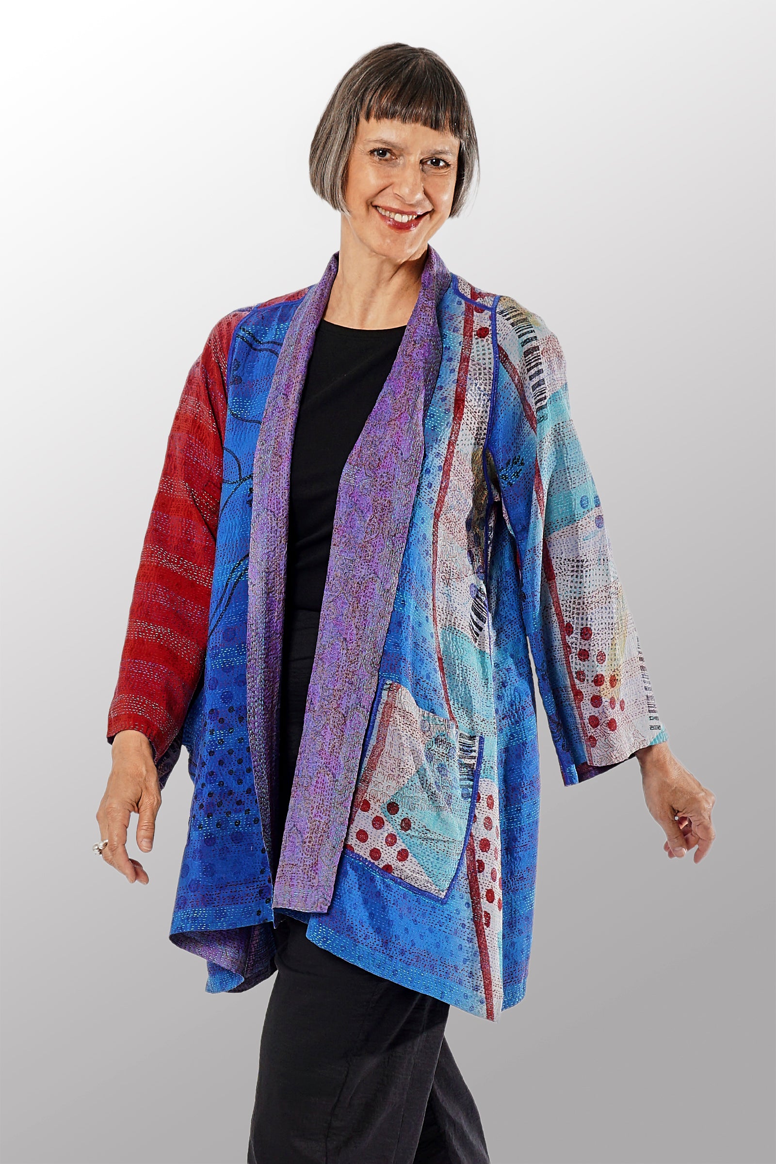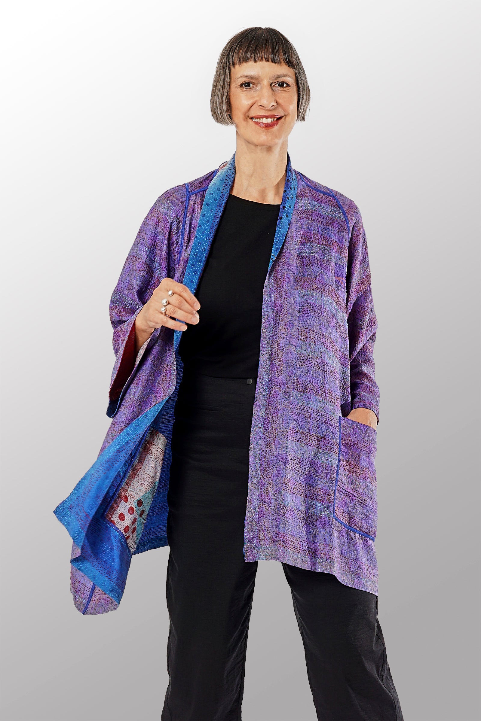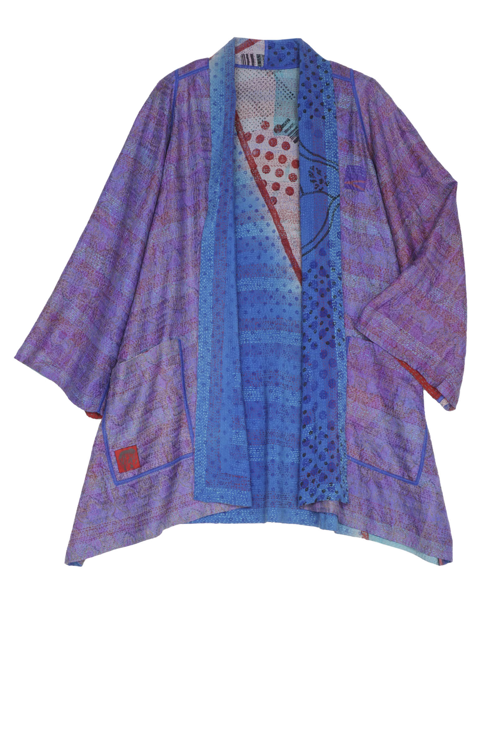 VINTAGE SILK GEORGETTE KANTHA A-LINE JKT - sg2003-0008a -