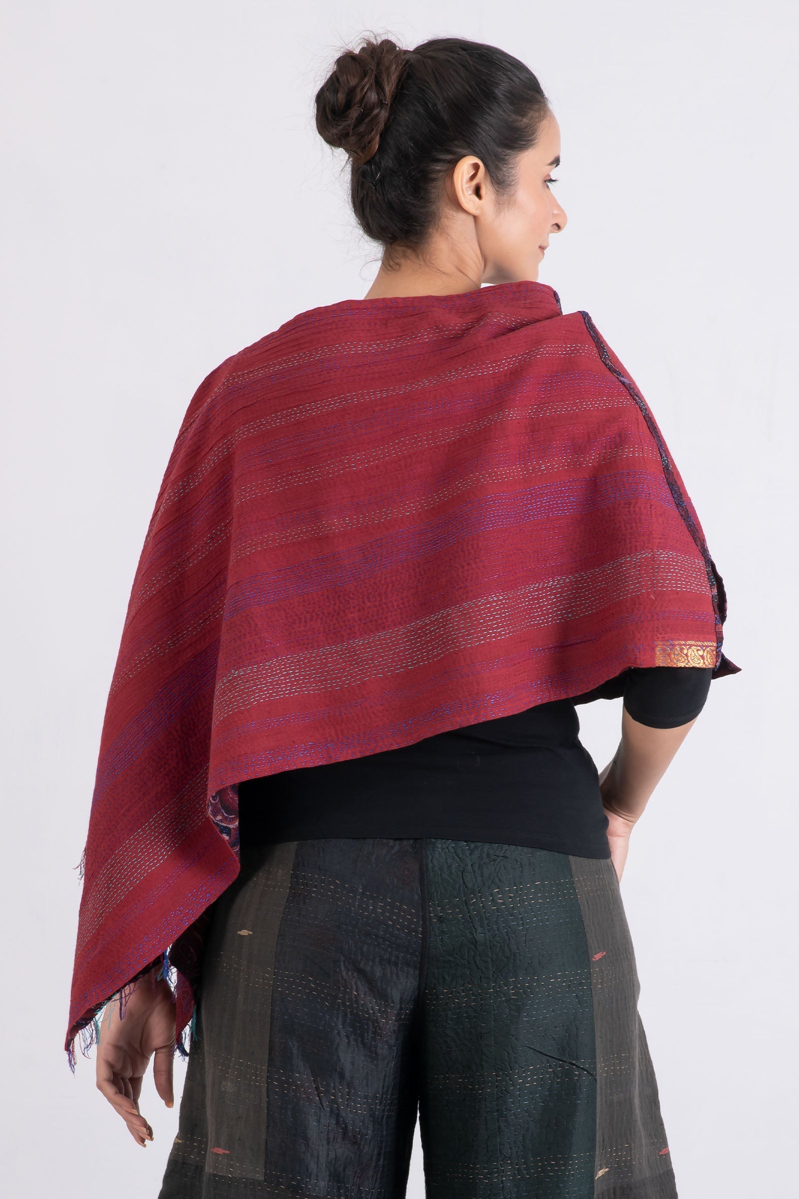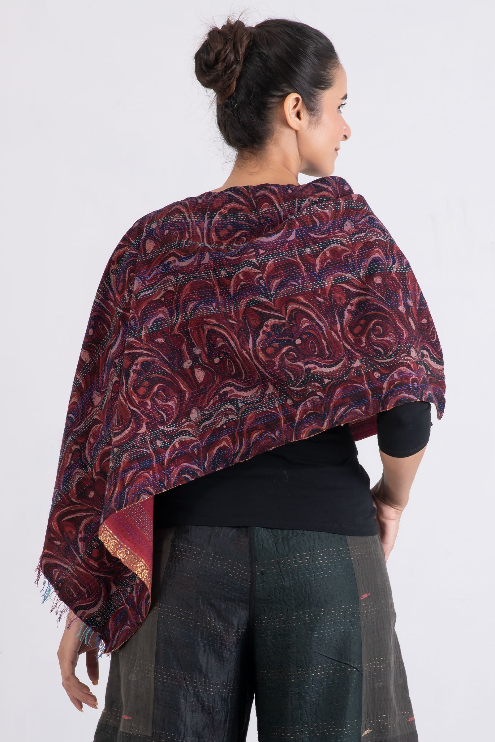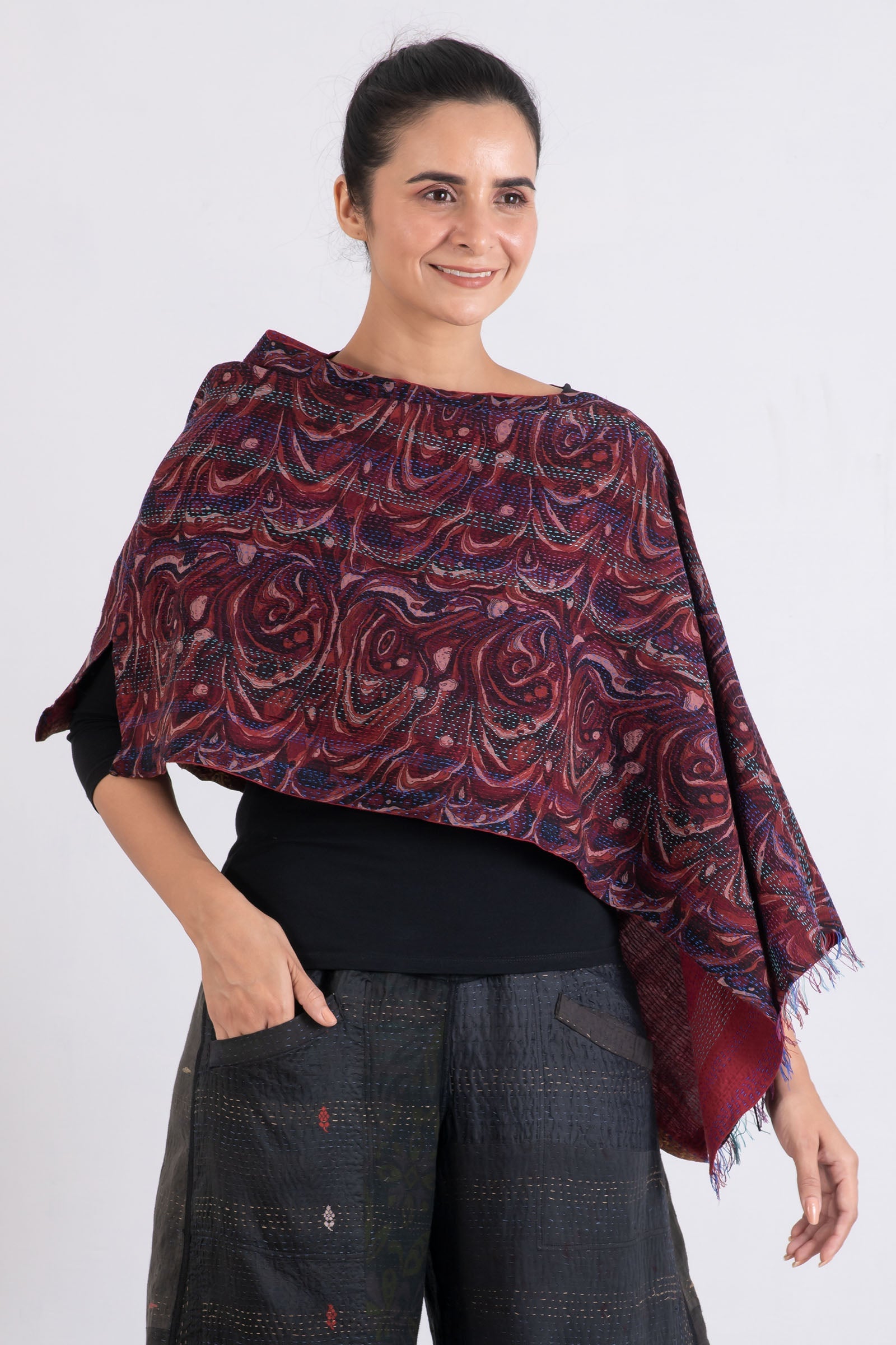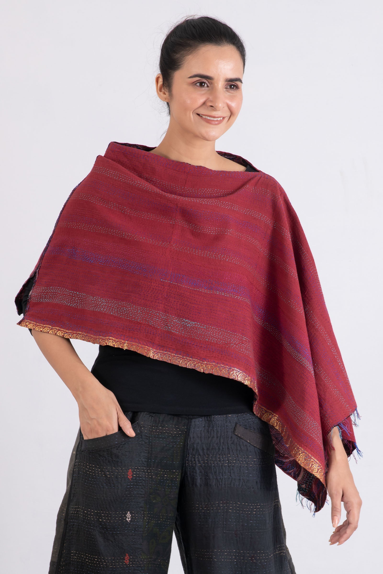 VINTAGE SILK GEORGETTE KANTHA CAPE - sg2806-mar -