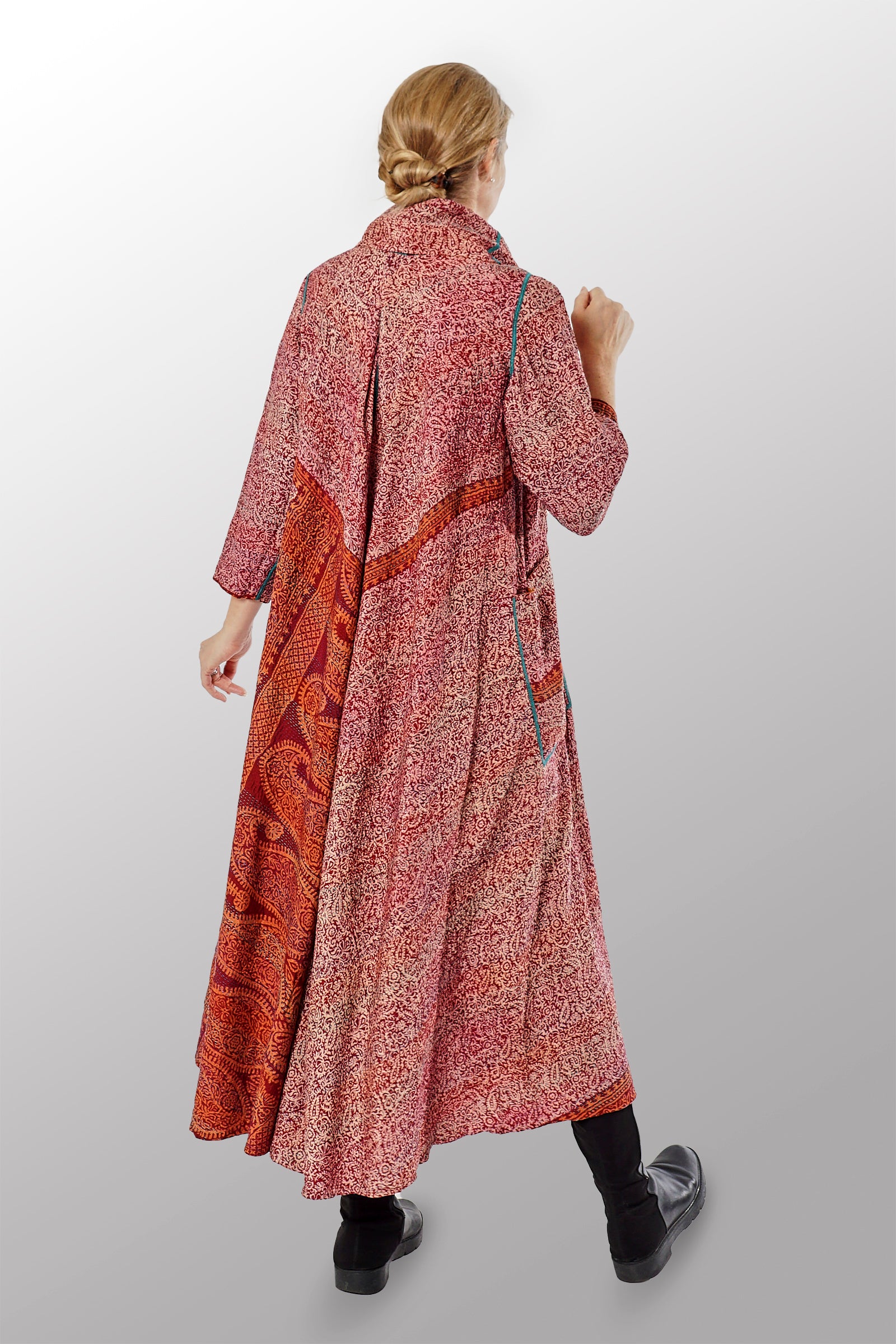 2 Layer Vintage Saris with Hand Stitches on Entire Garment - Reversible