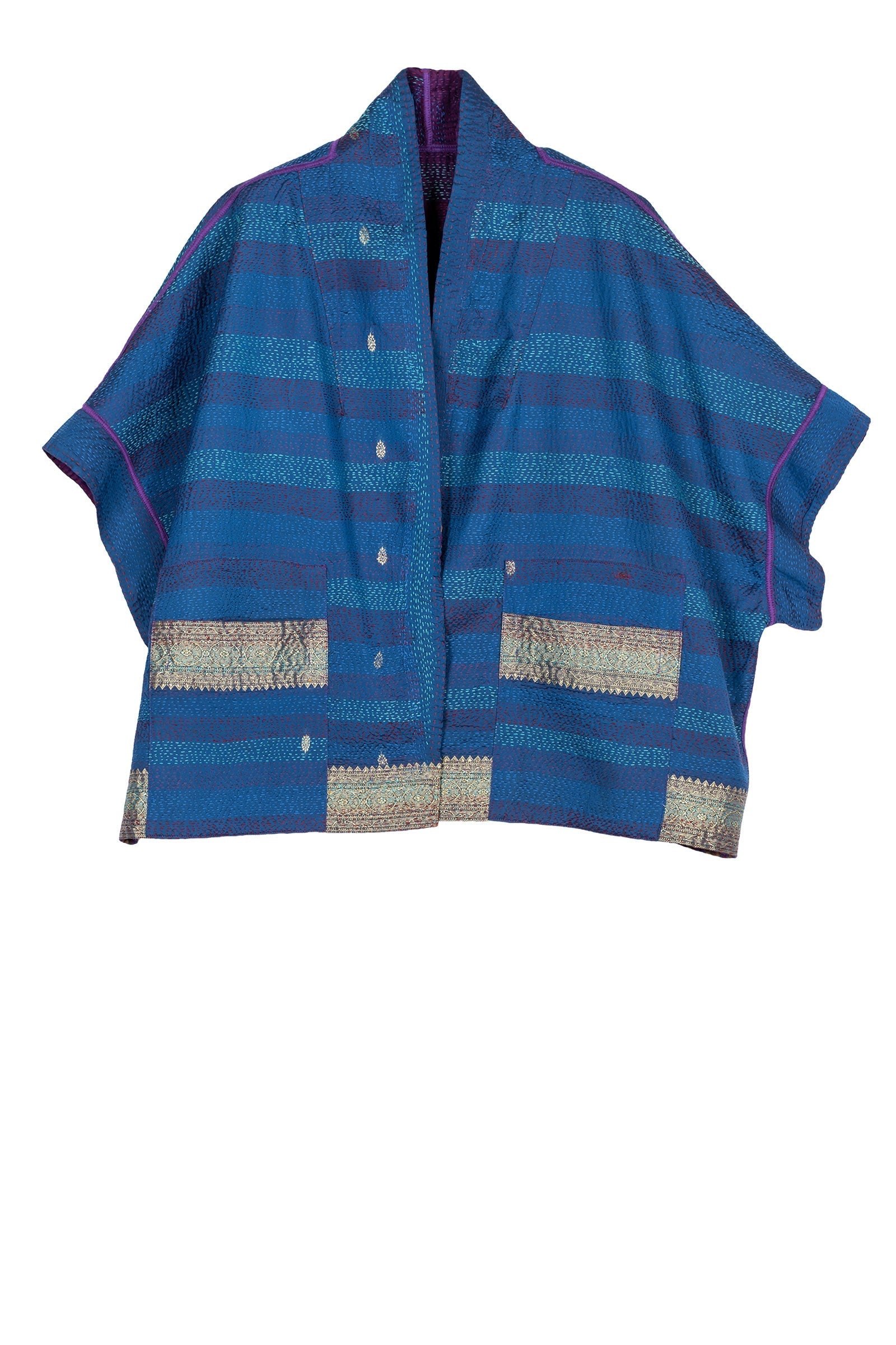 VINTAGE SILK GEORGETTE KANTHA MINI PONCHO - sg2060-0001a -