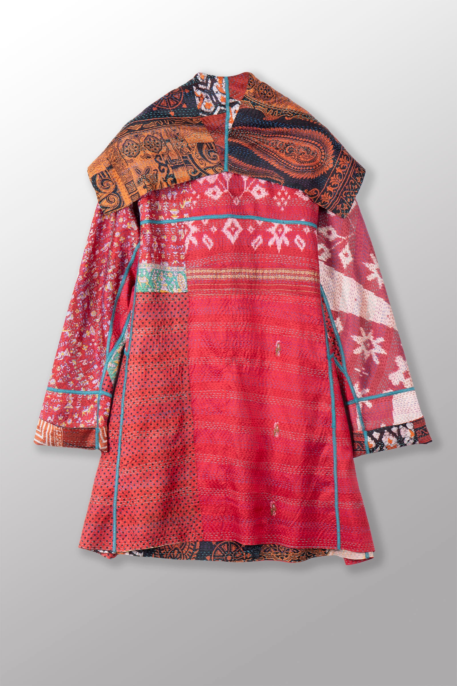 VINTAGE SILK KANTHA A-LINE COAT P - sv2336-0025a -