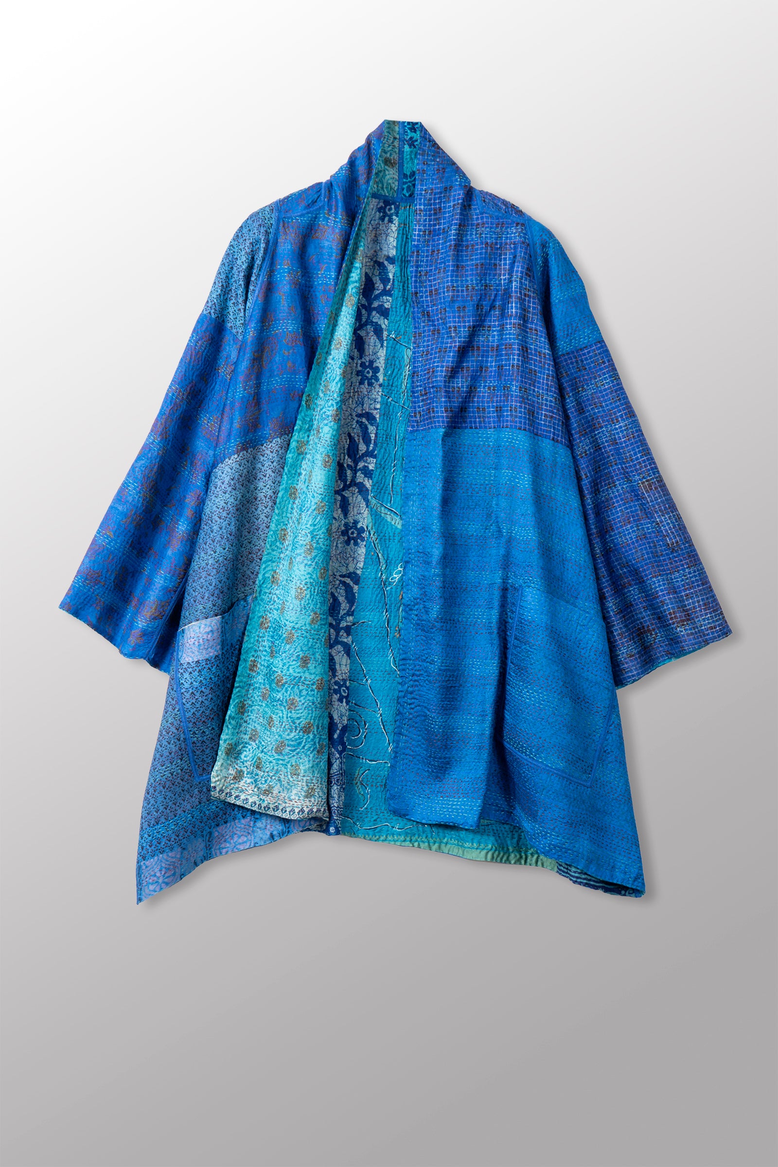 2 Layer Vintage Saris with Hand Stitches on Entire Garment - Reversible