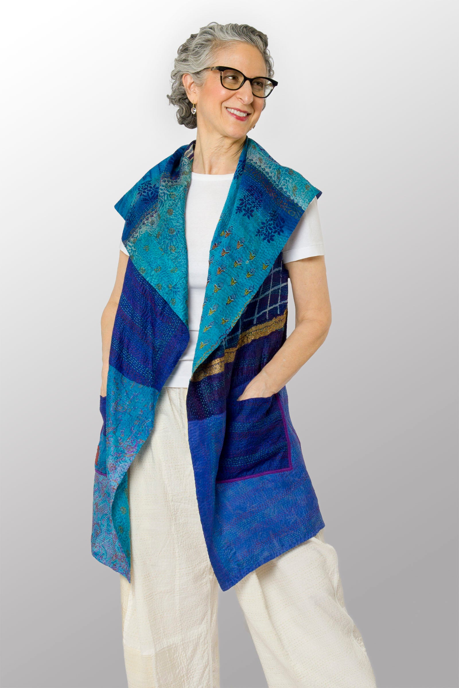 2 Layer Vintage Saris with Hand Stitches on Entire Garment - Reversible