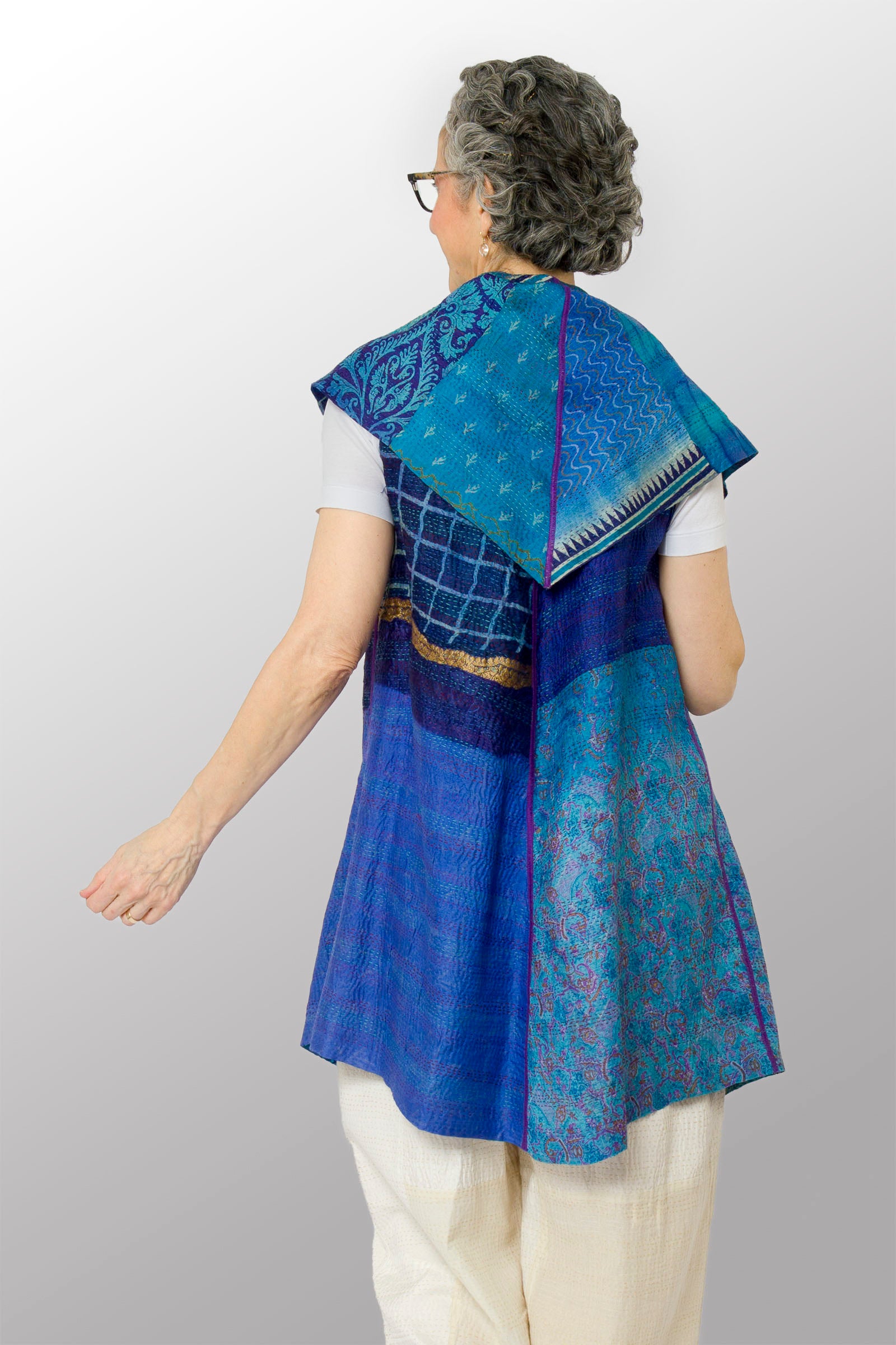 VINTAGE SILK KANTHA CIRCULAR VEST - sv2201-0099a -