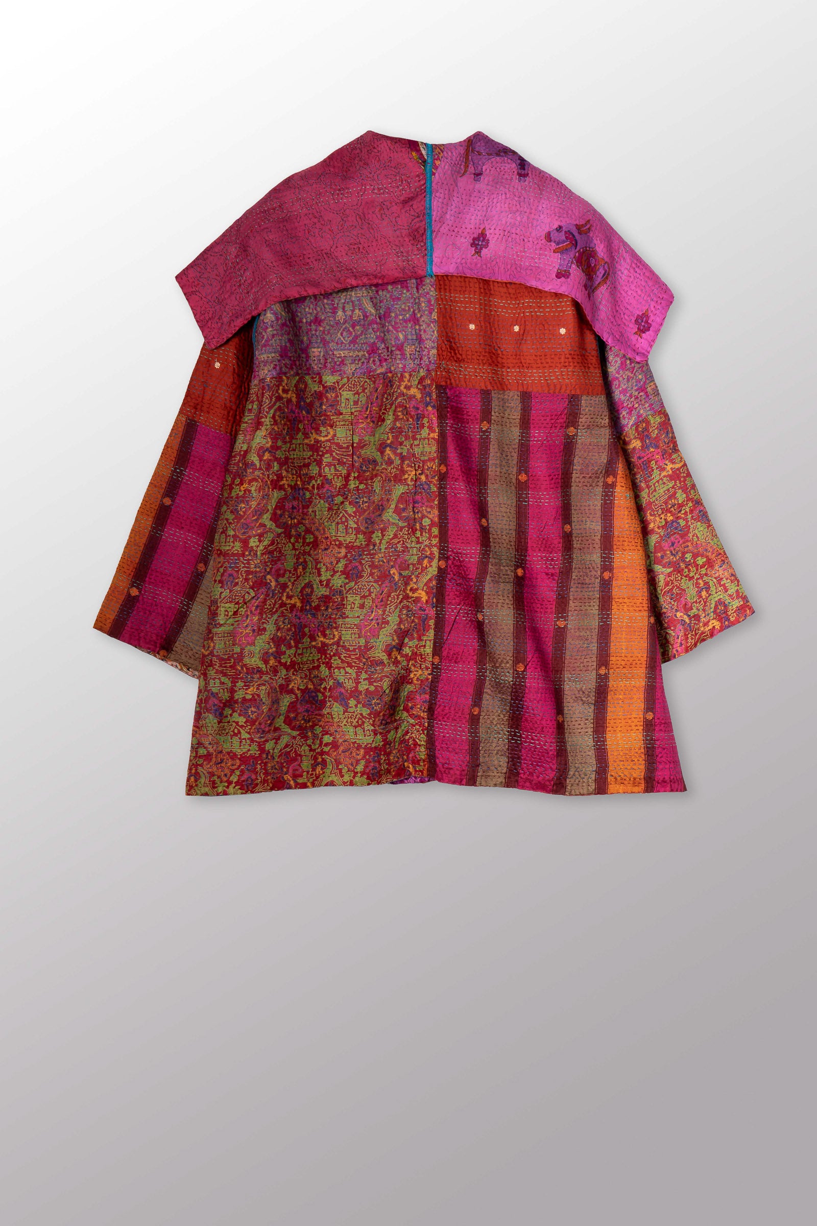 2 Layer Vintage Saris with Hand Stitches on Entire Garment - Reversible