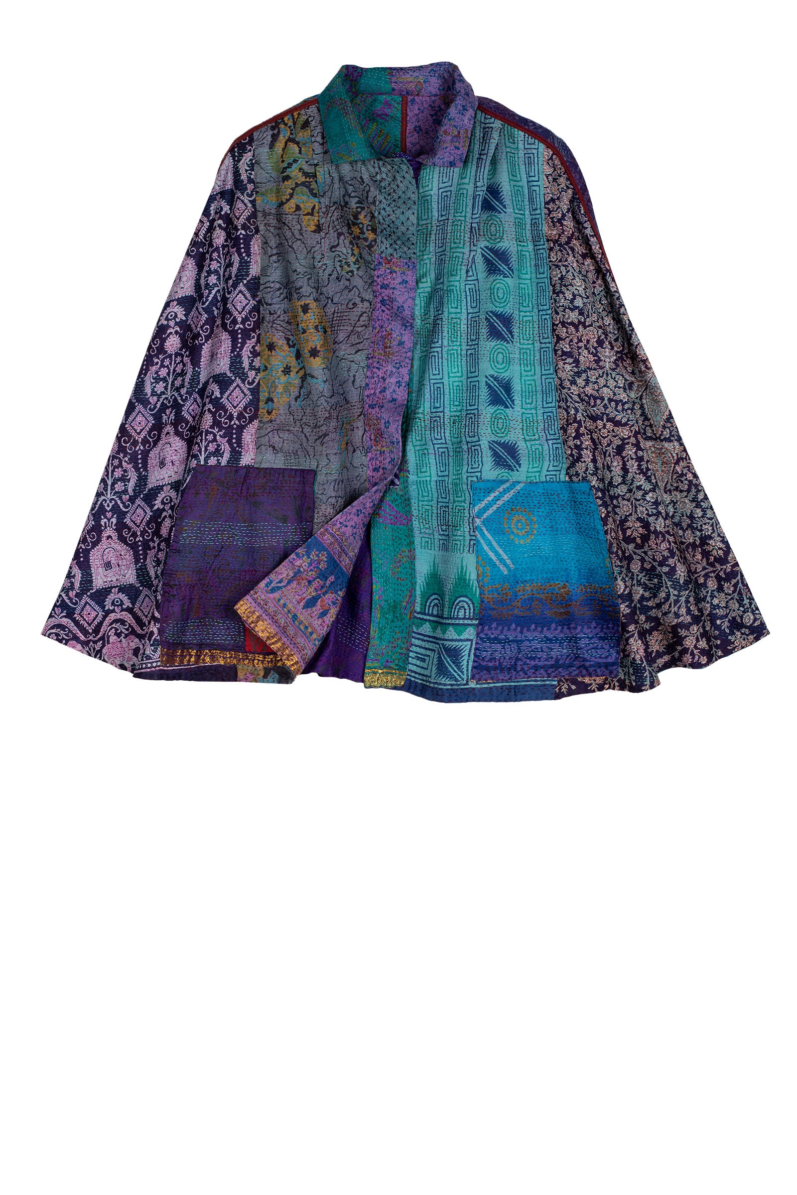 VINTAGE SILK KANTHA MANTLE - sv2069-0002a -