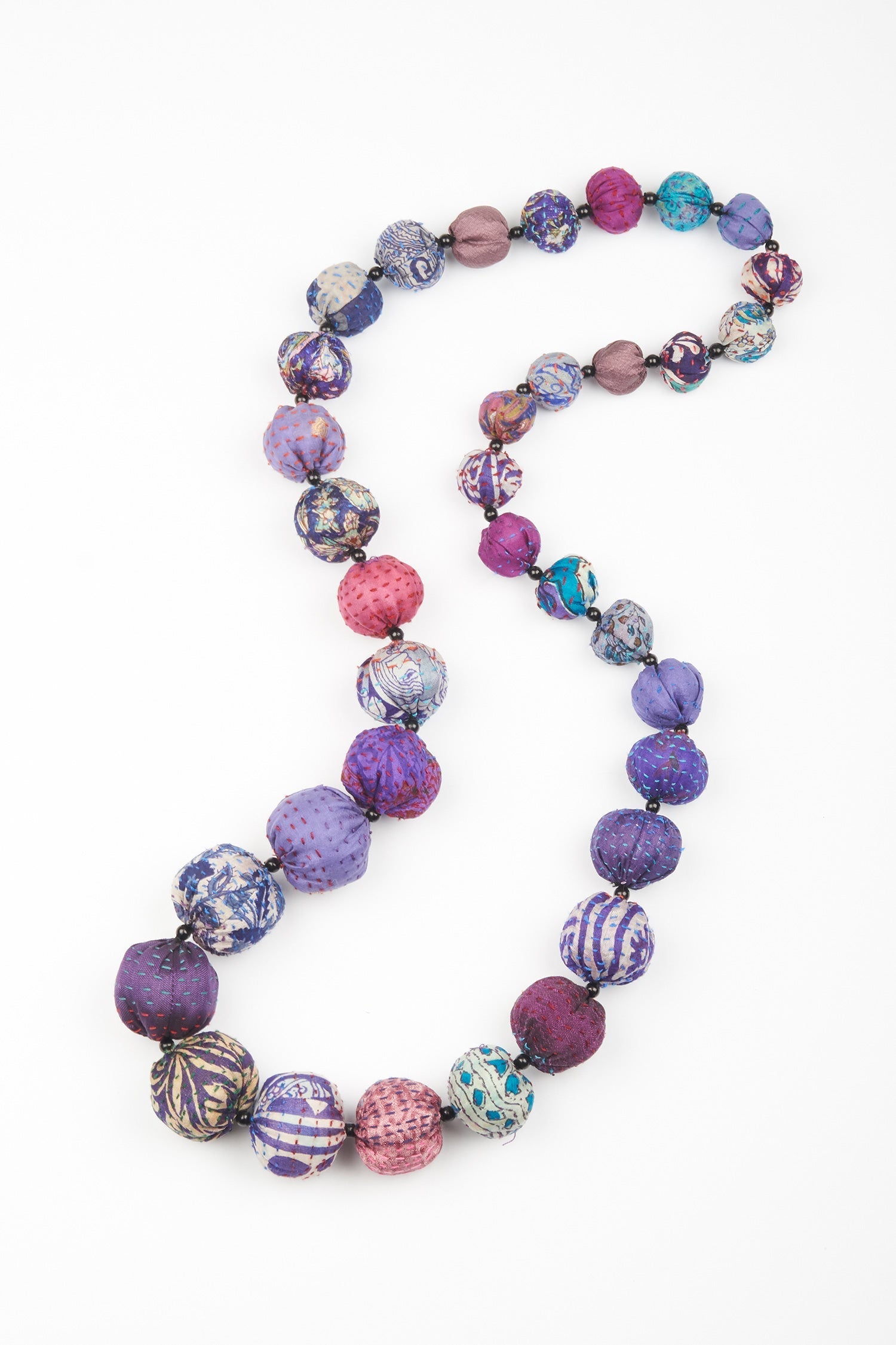 VINTAGE SILK KANTHA NUTS LONG NECKLACE - sv2702-prp -