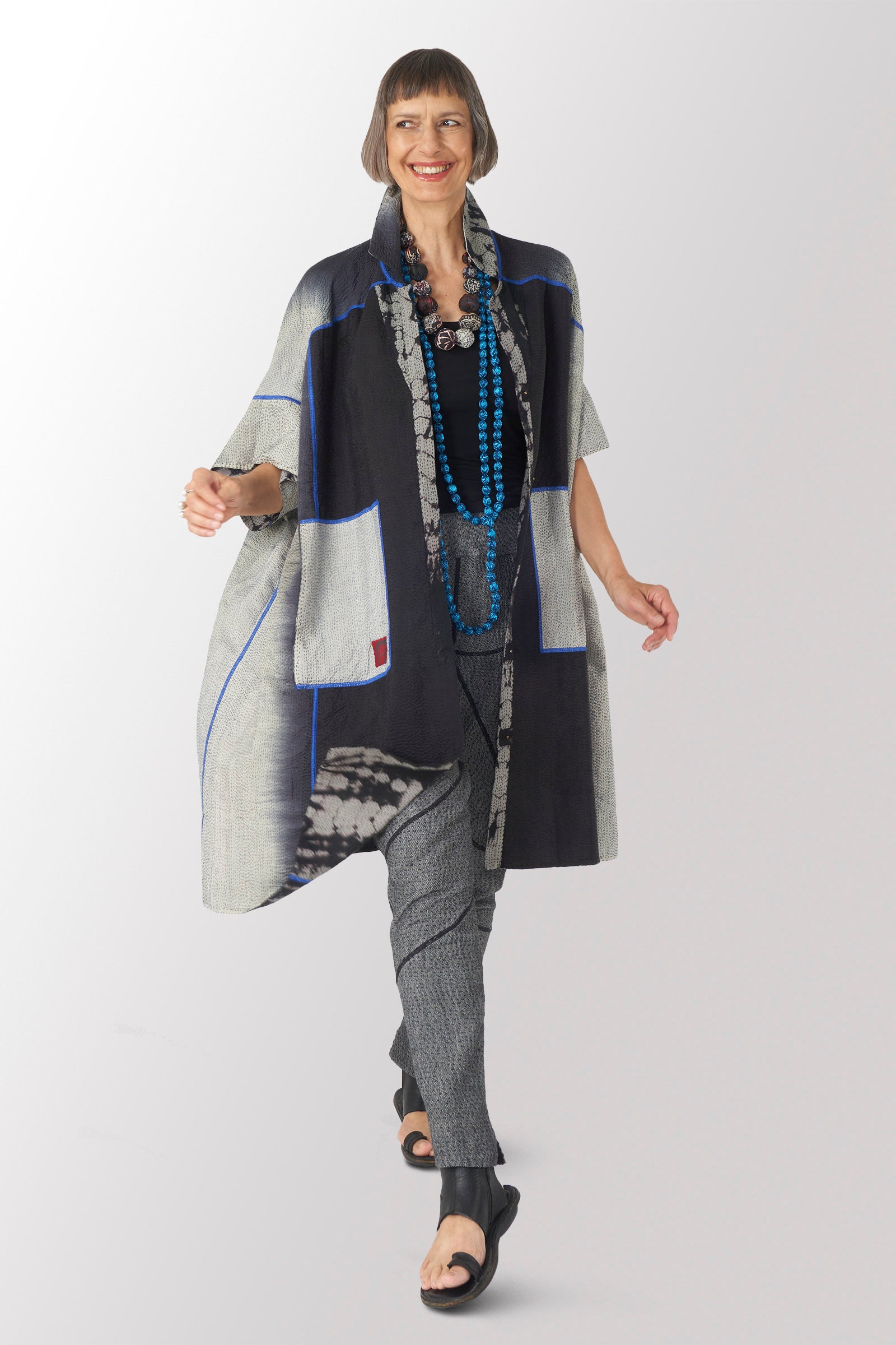 VINTAGE SILK KANTHA NUTS MEDIUM NECKLACE - sv2701-blk -