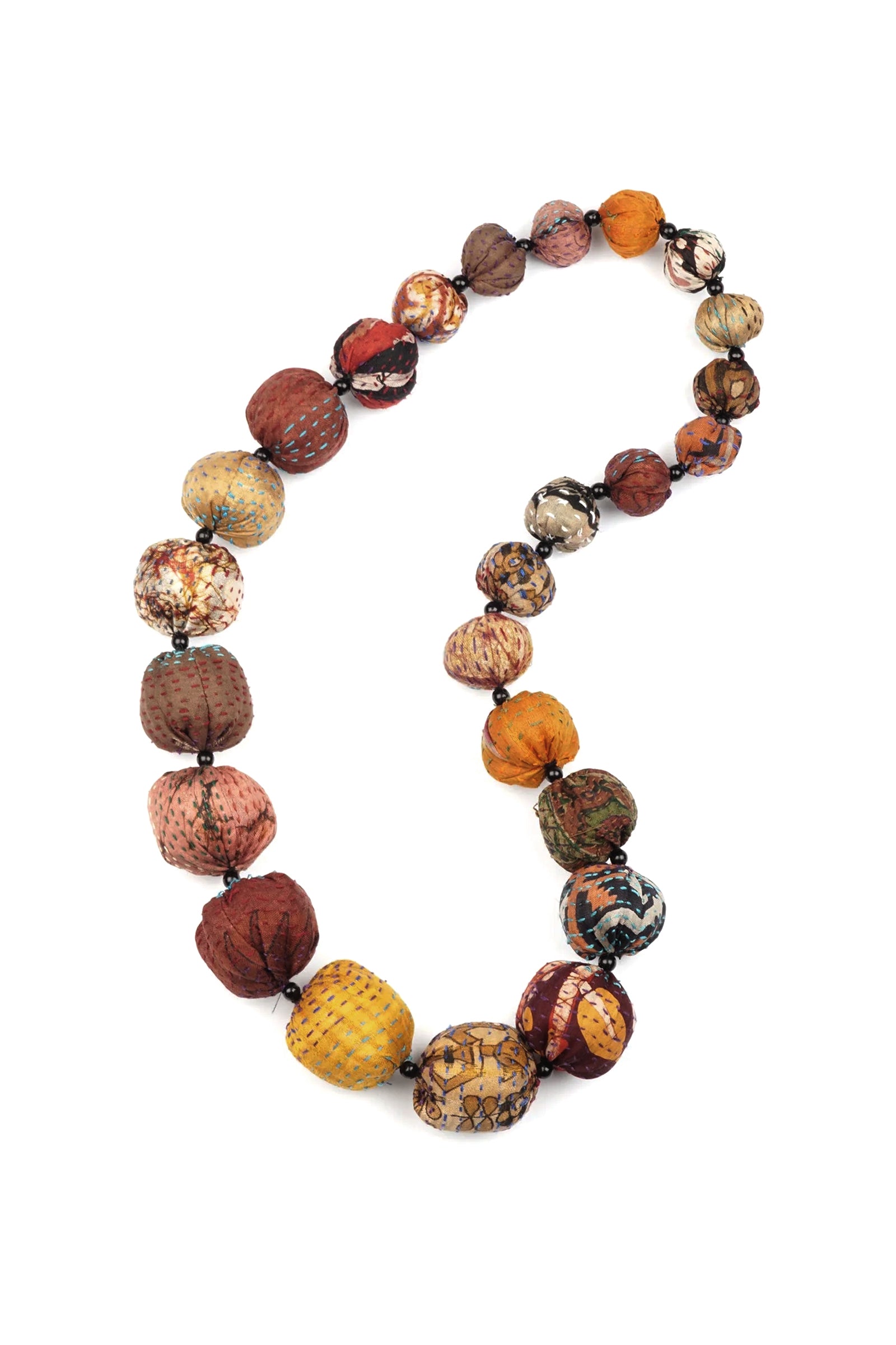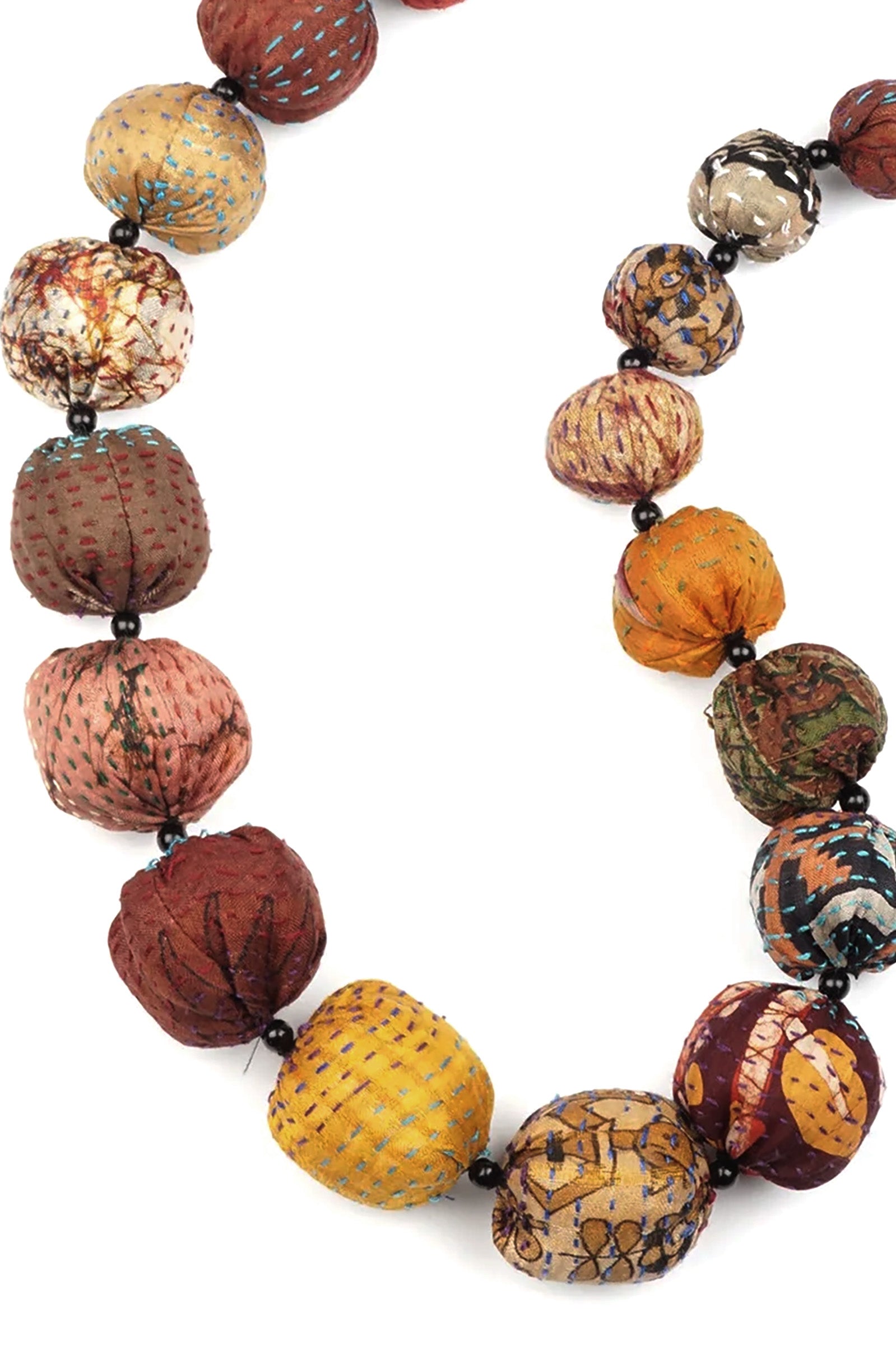 VINTAGE SILK KANTHA NUTS MEDIUM NECKLACE - sv2701-brn -