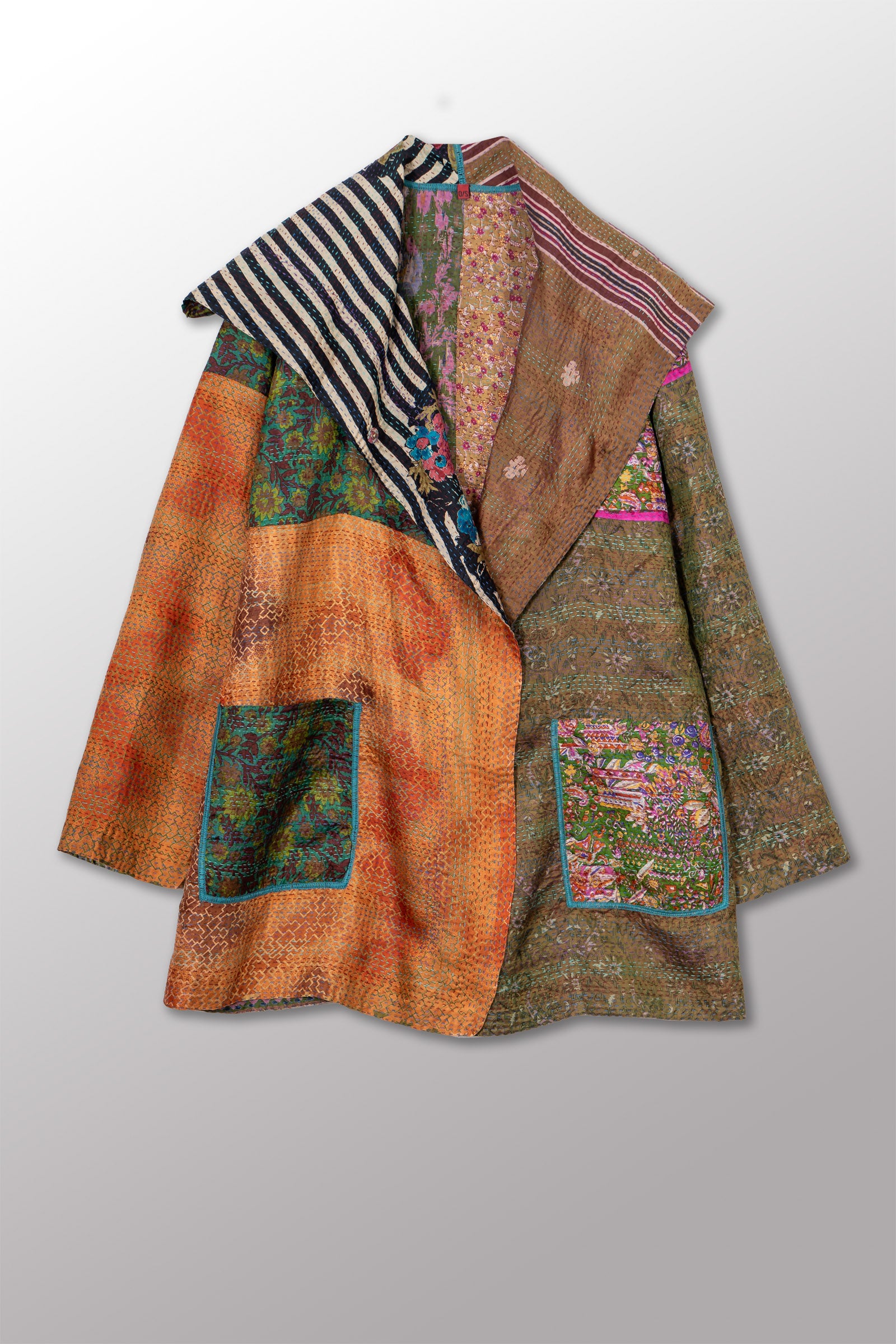VINTAGE SILK KANTHA POCKET JKT - sv2002-0071a -