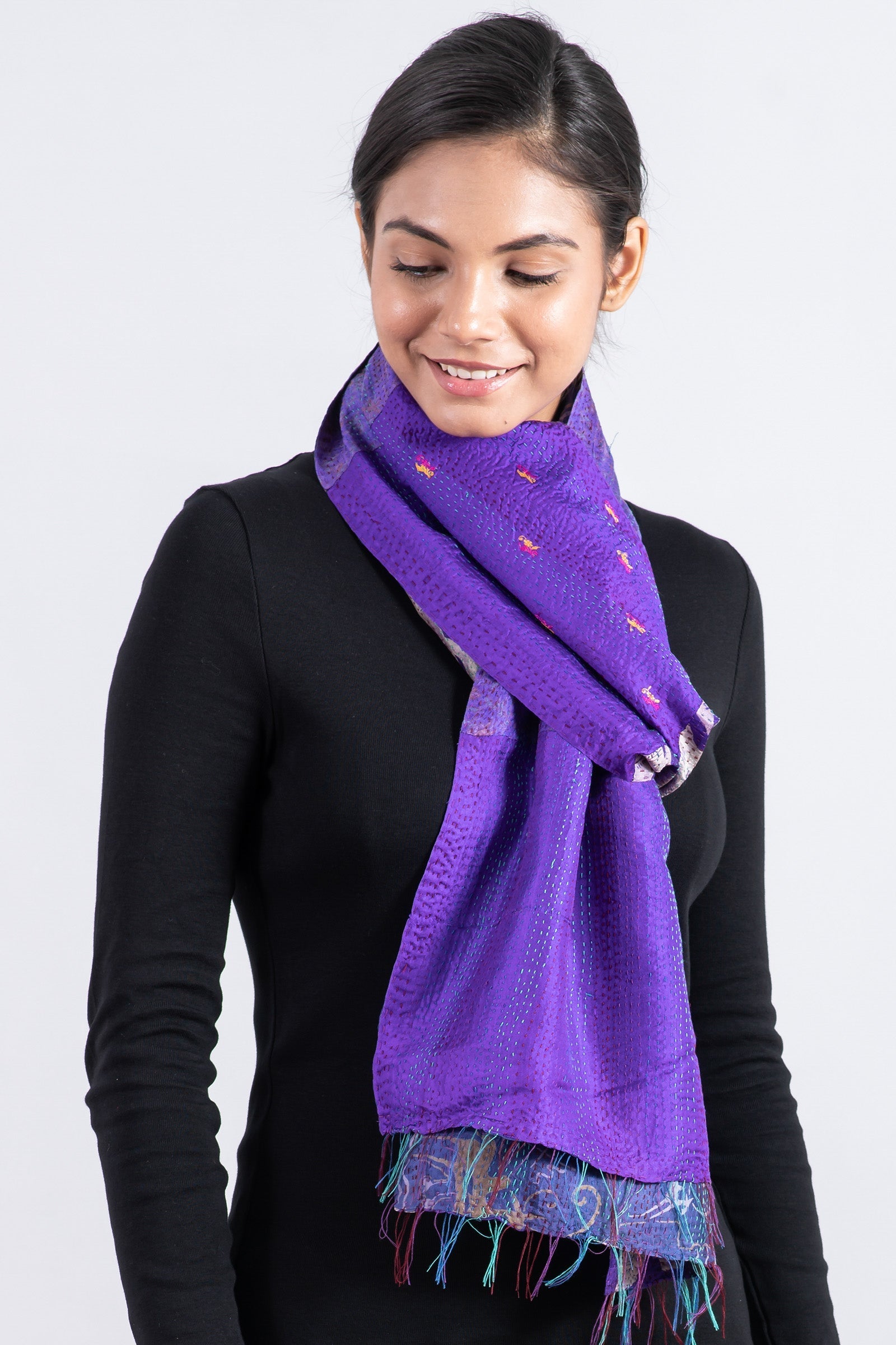 VINTAGE SILK KANTHA SCARF SMALL - sv2800-prp -