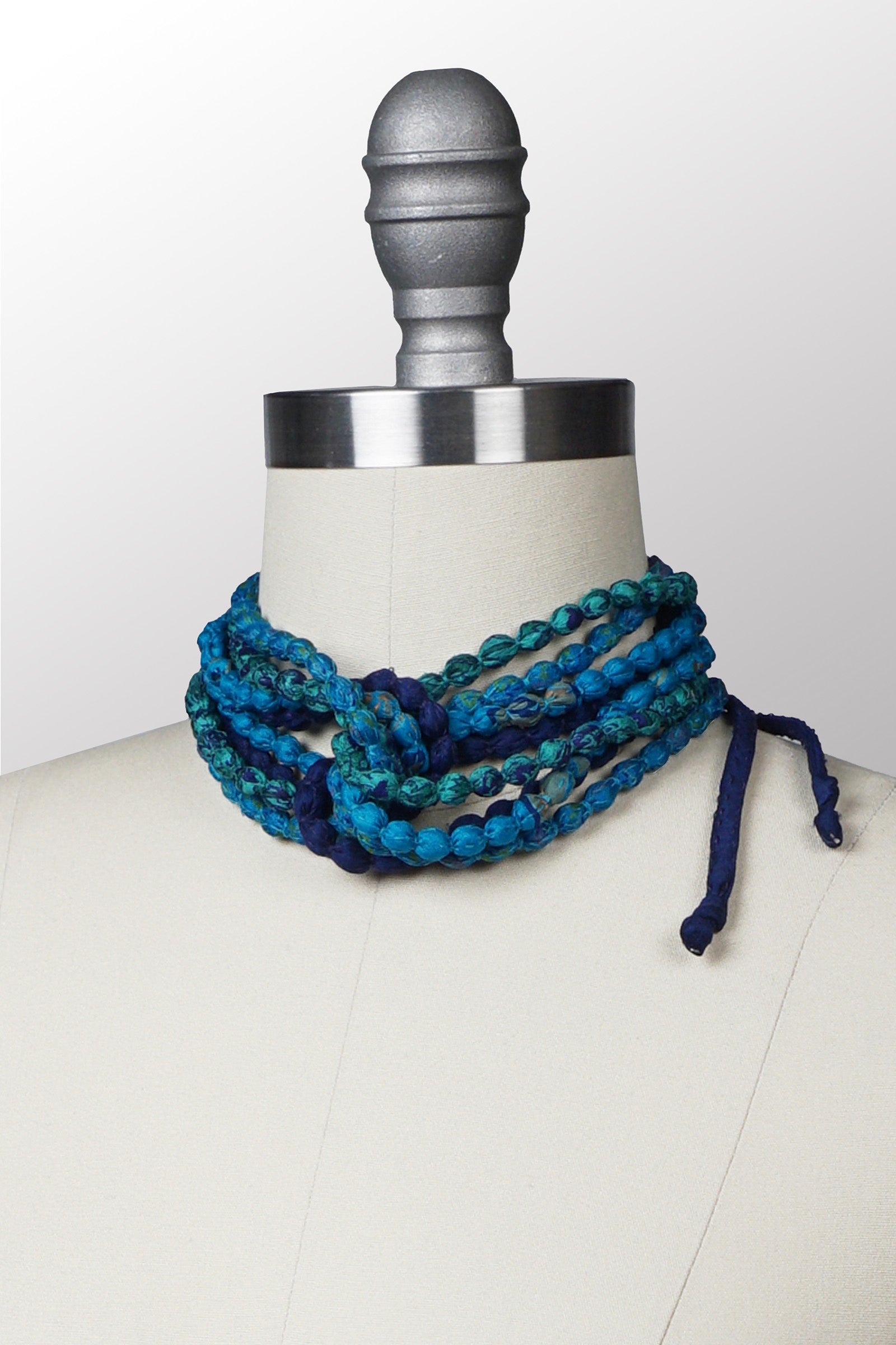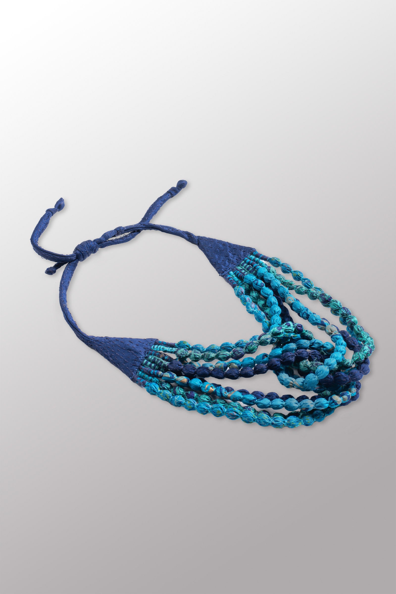 VINTAGE SILK KANTHA SEED NECKLACE SHORT - sv2722-blu -
