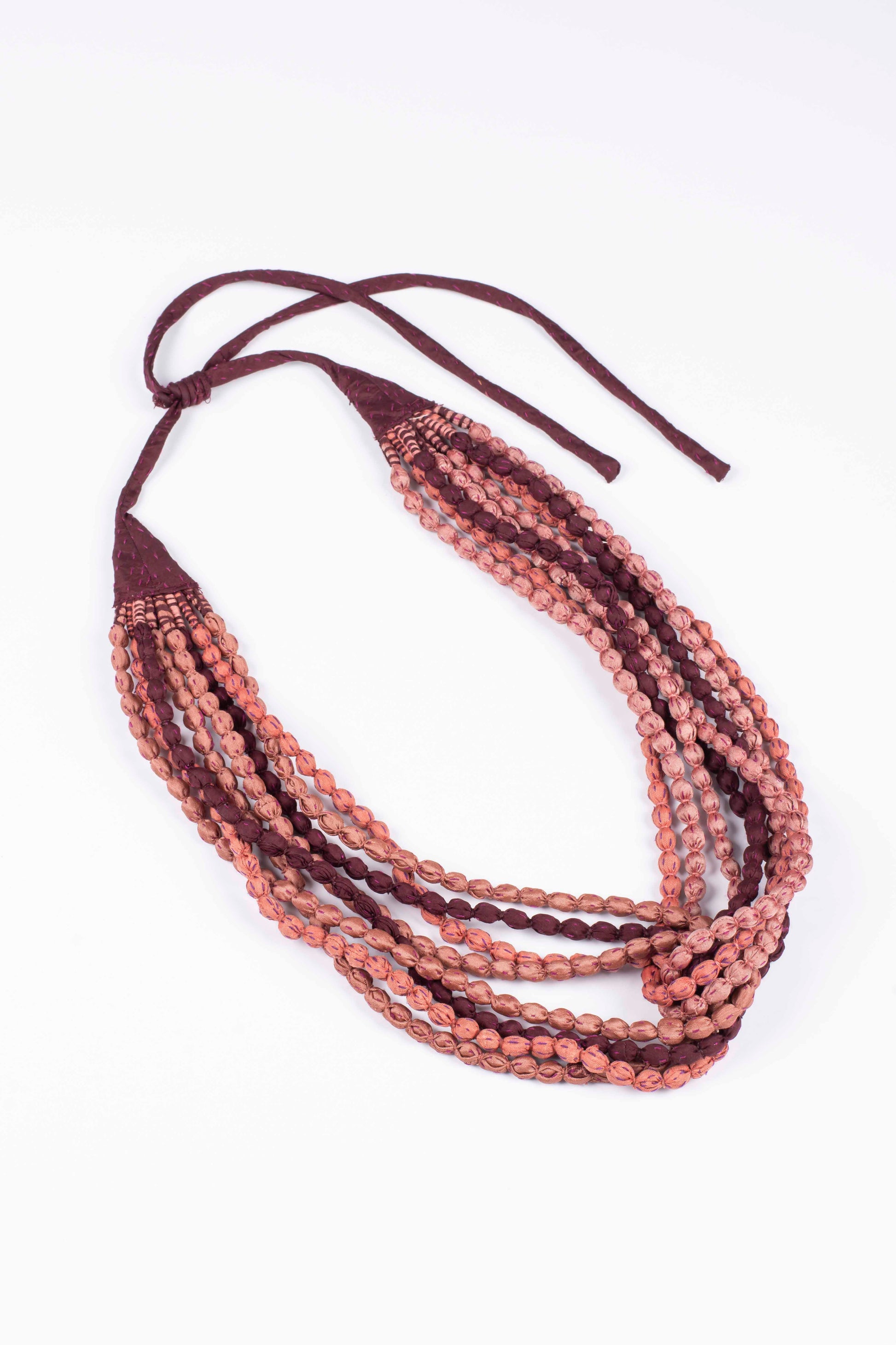 VINTAGE SILK KANTHA SEED NECKLACE - sv2721-cpk -