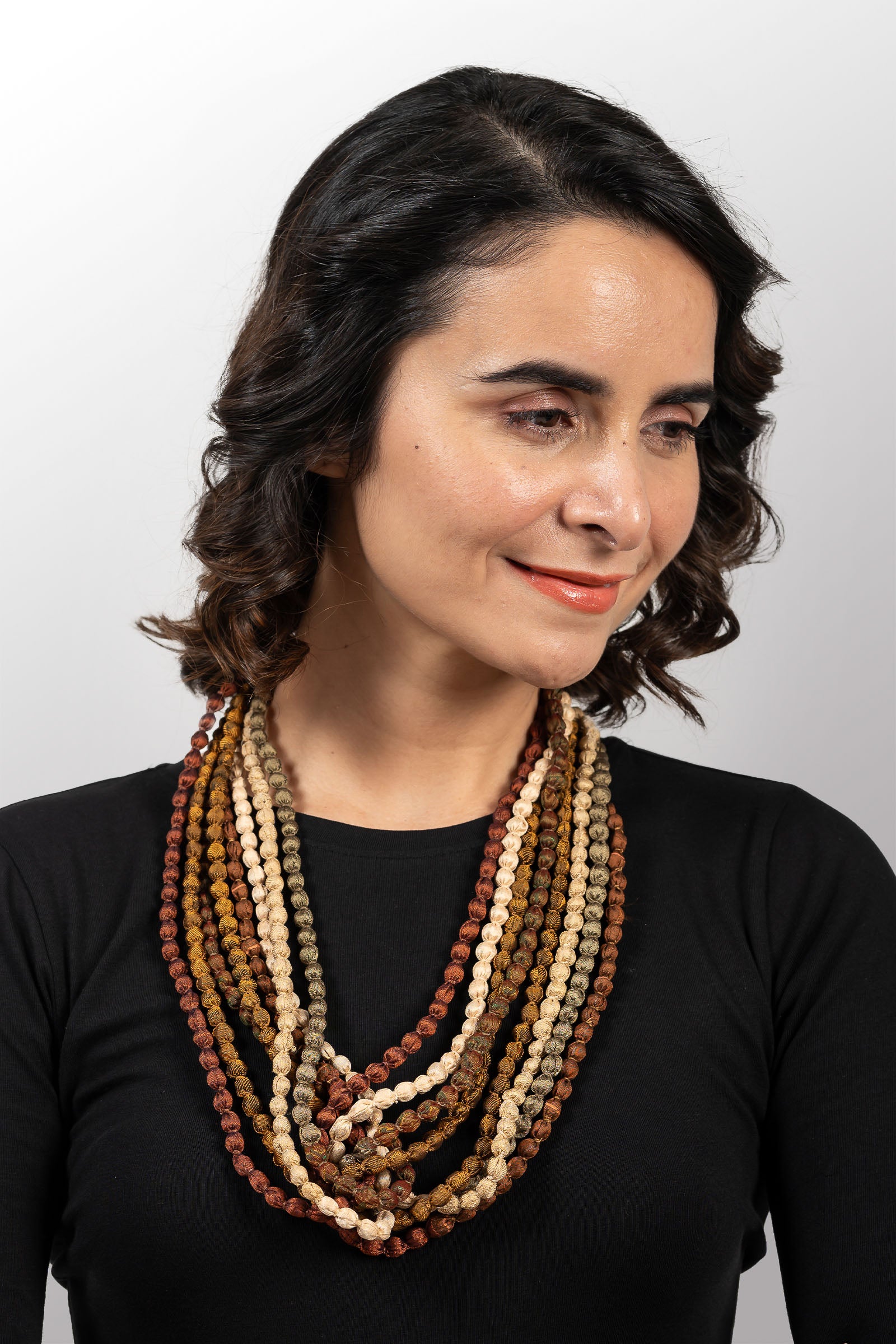 VINTAGE SILK KANTHA SEED NECKLACE - sv2721-ntl -
