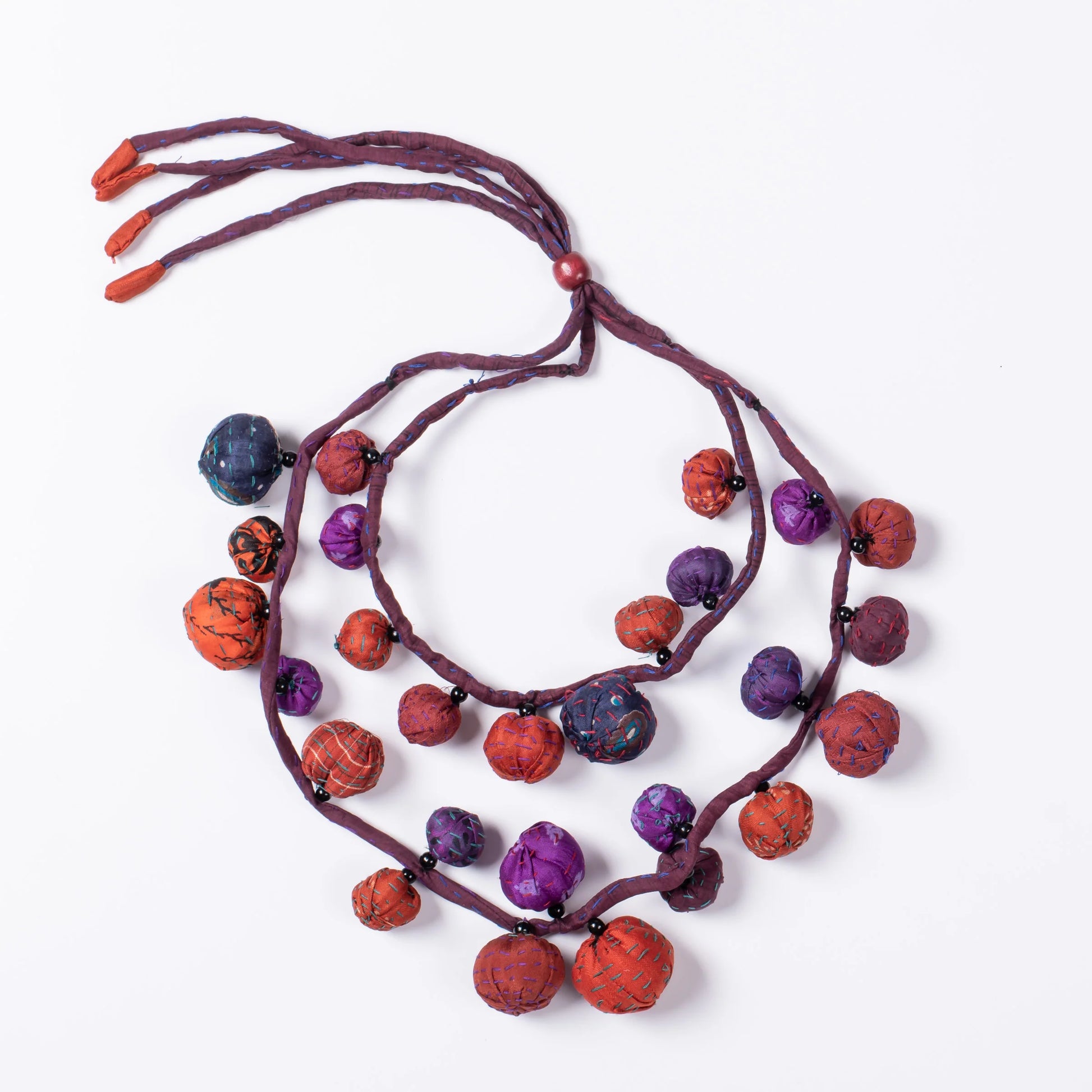 VINTAGE SILK KANTHA TWIGG DOUBLE SHORT NECKLACE - sv2719-org -