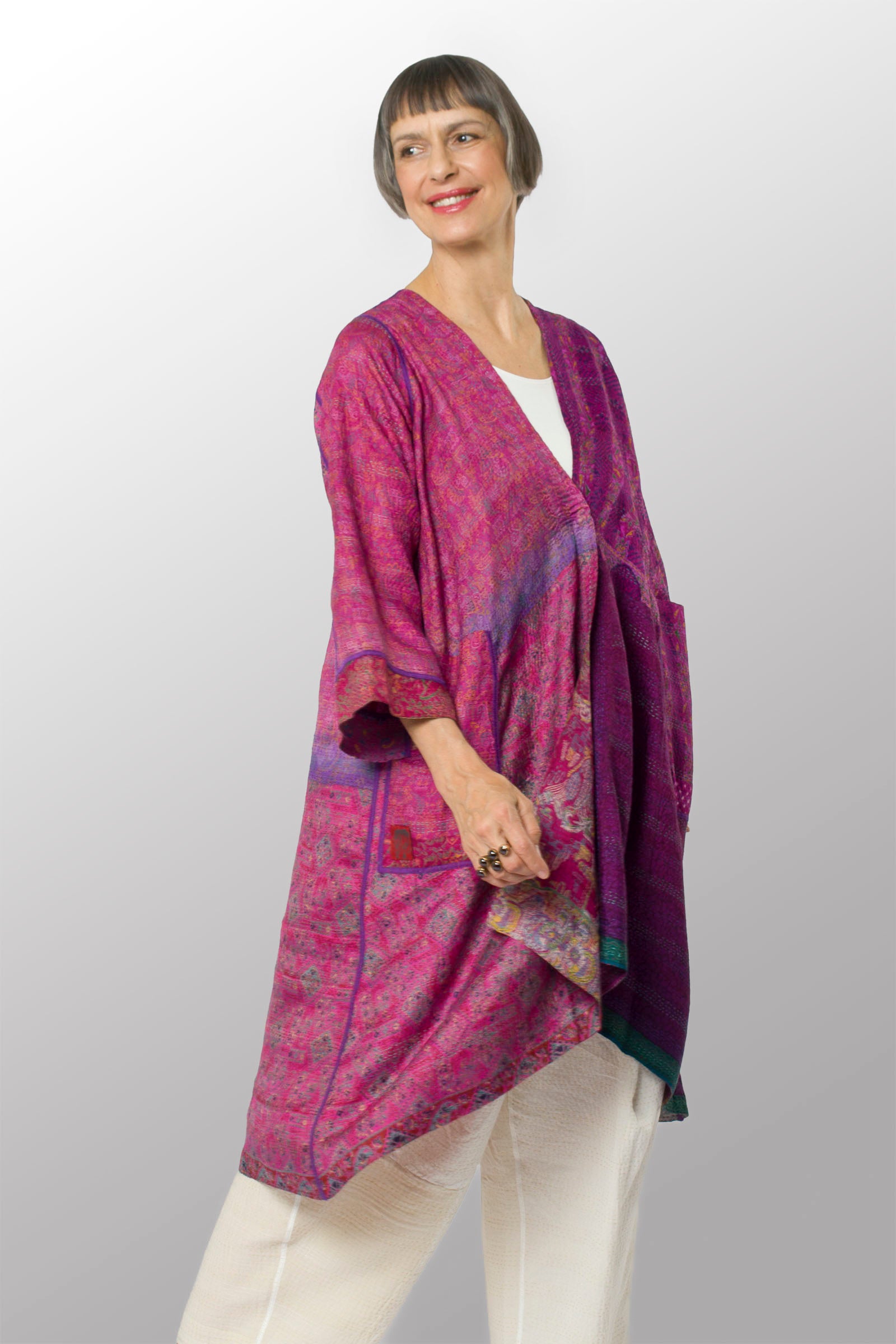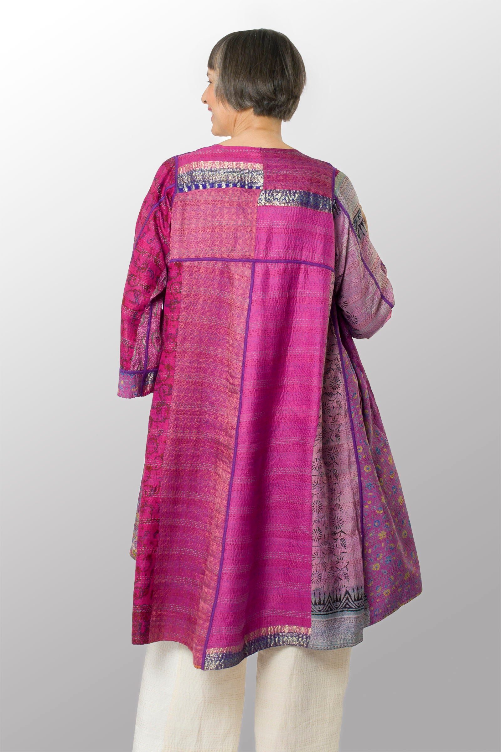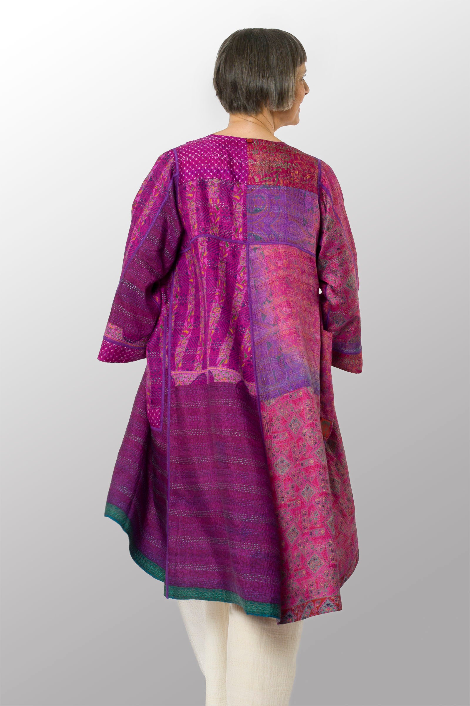 VINTAGE SILK KANTHA WRAP FLARE COAT - sv2330-0005a -