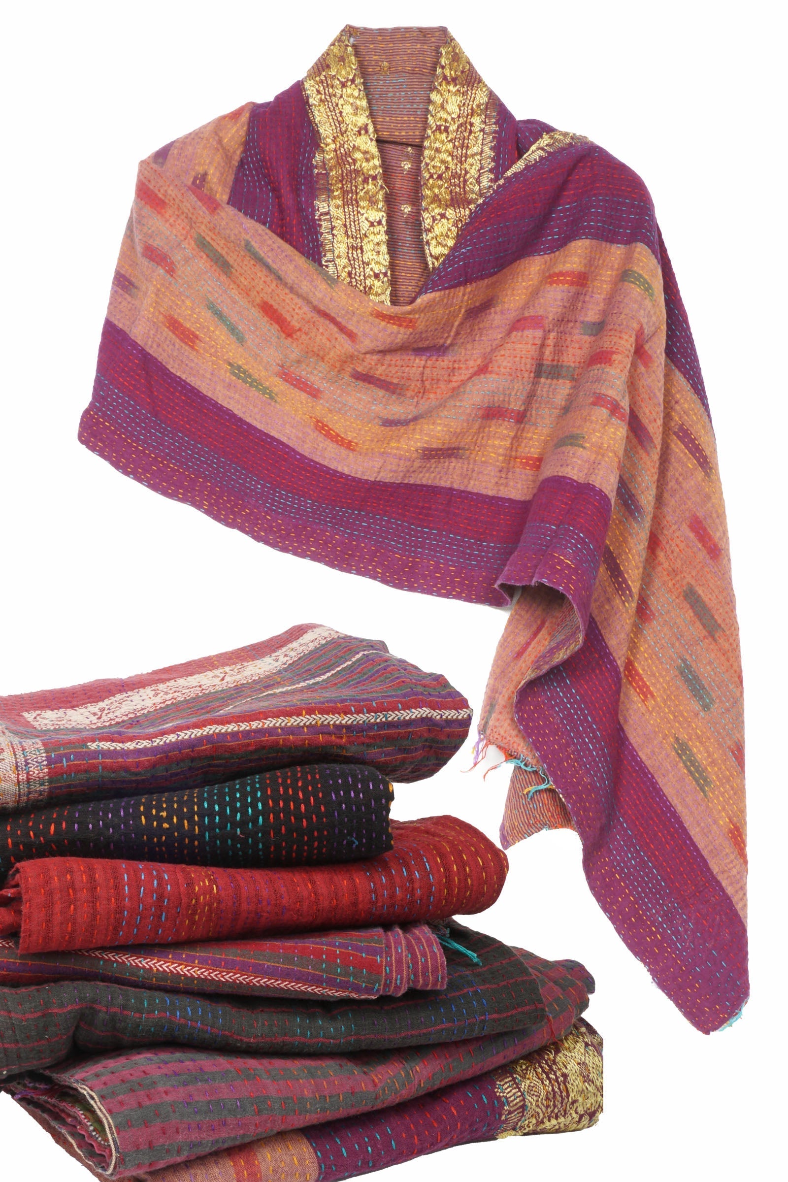 2 Layer Vintage Saris with Hand Stitches on Entire Garment - Reversible