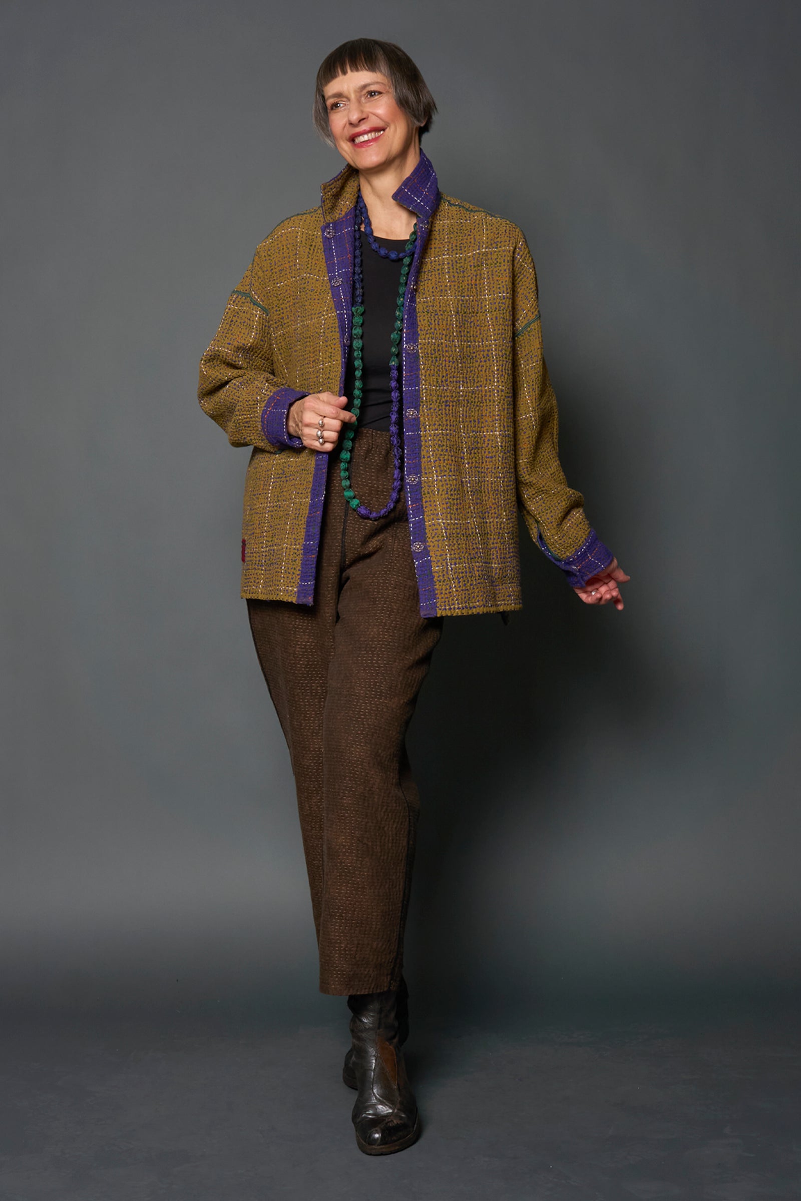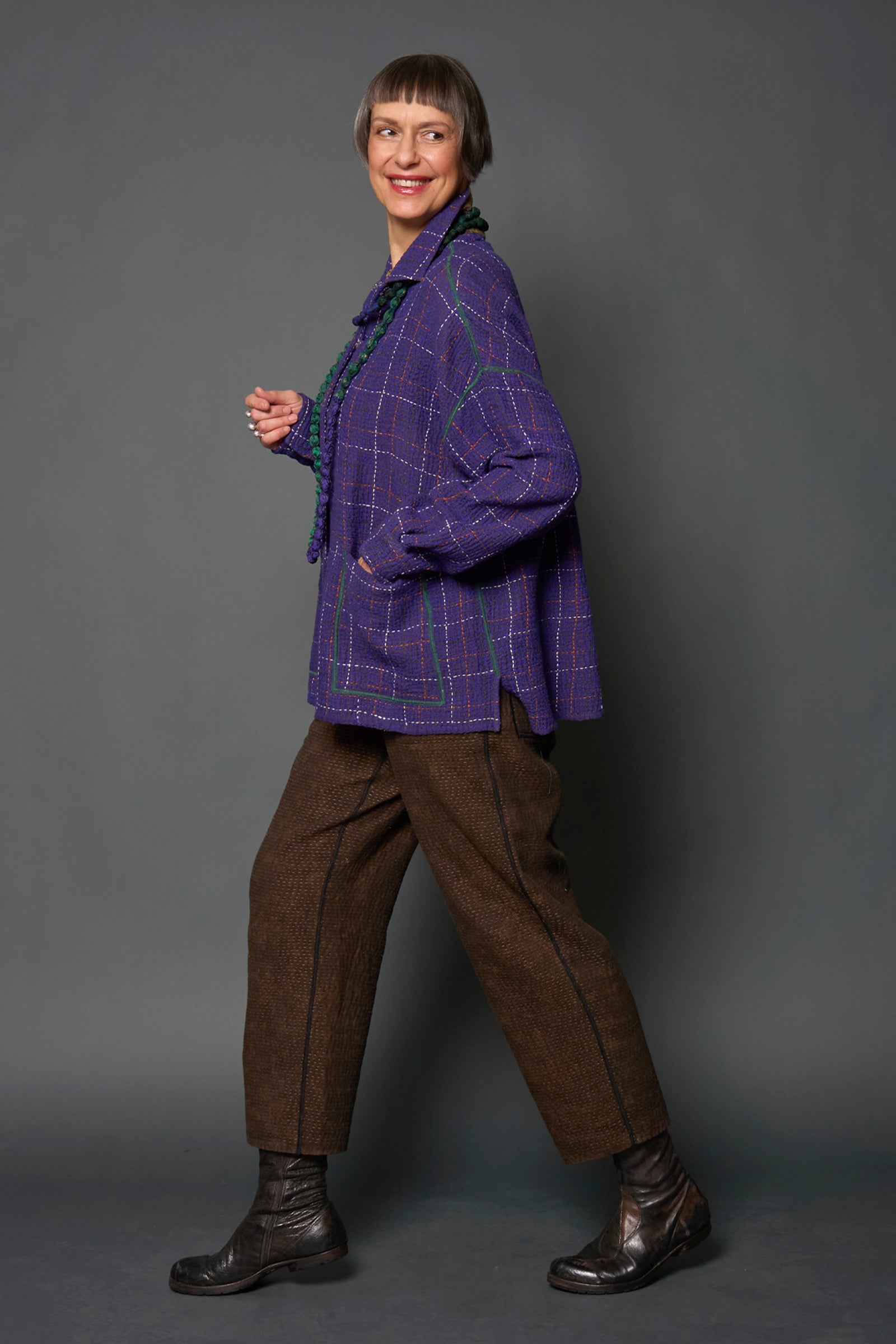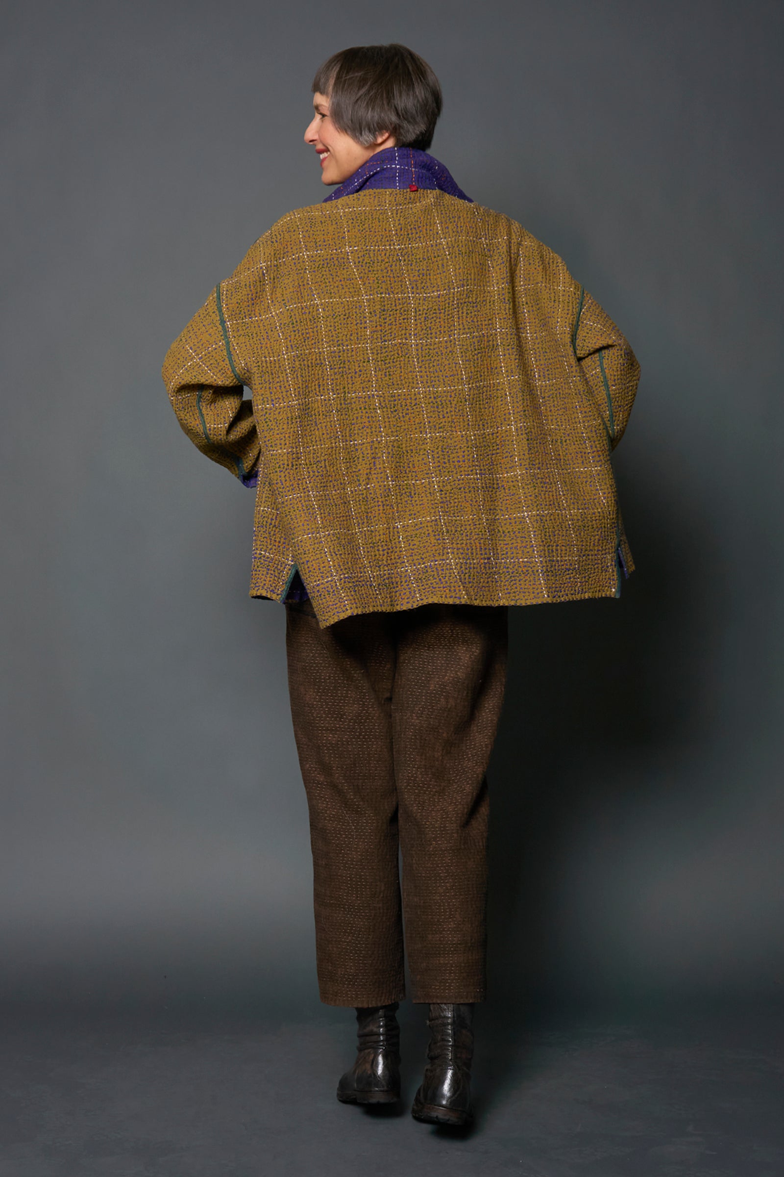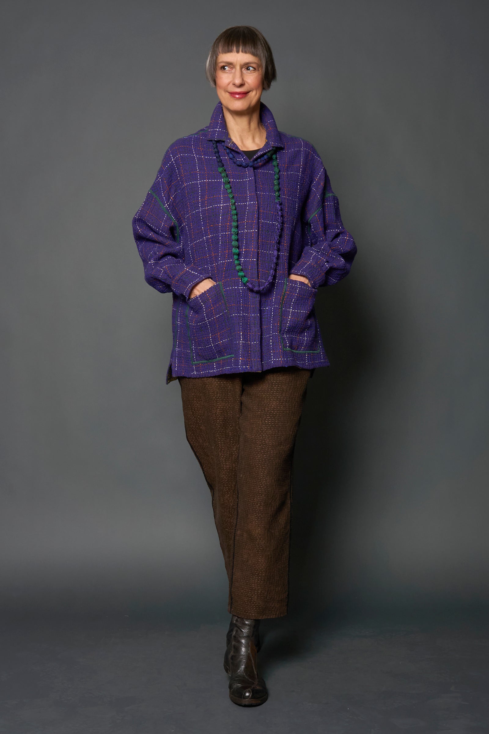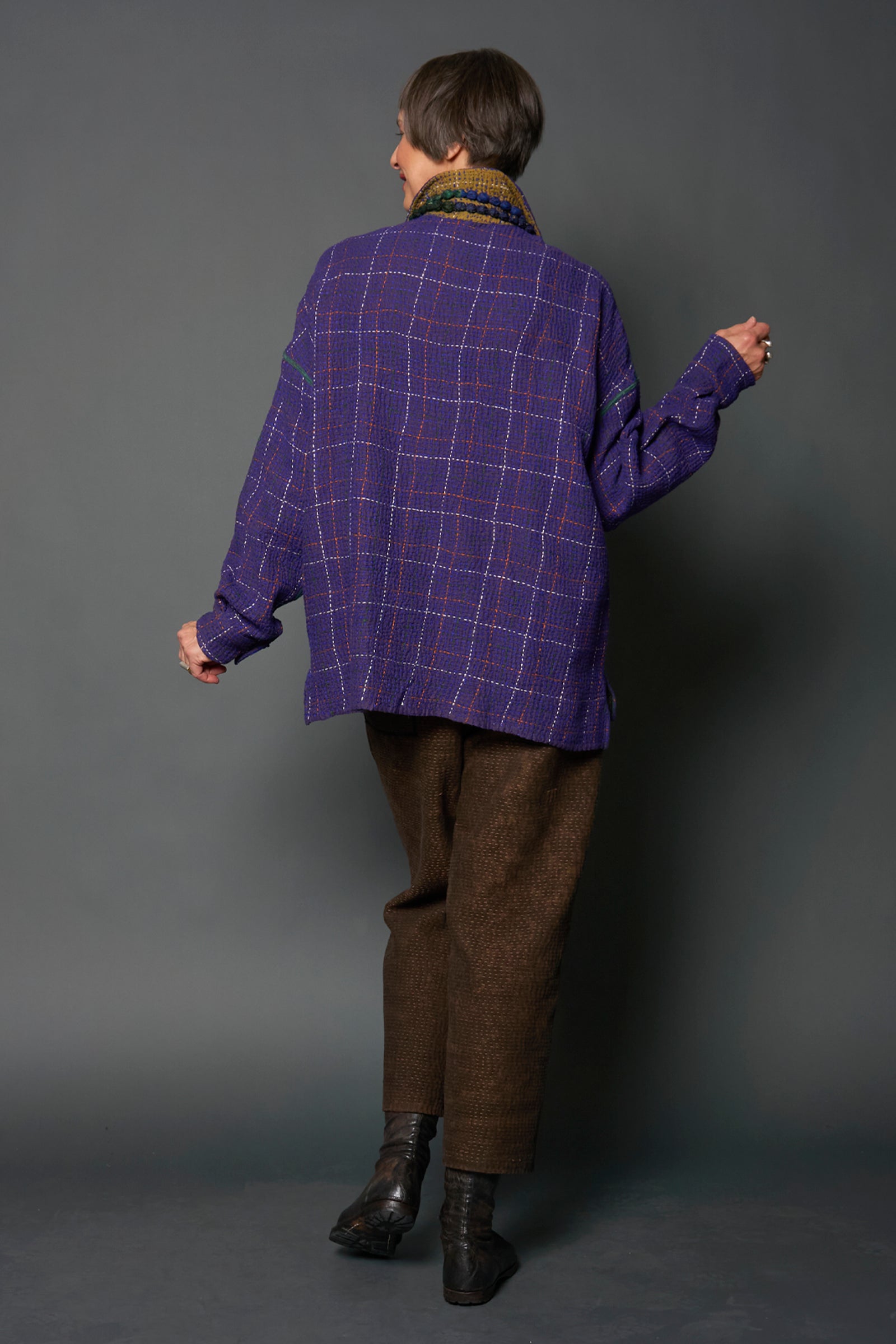 WOOL WAFFLE KANTHA RELAXED SHIRT JACKET - ww3j105-prp -