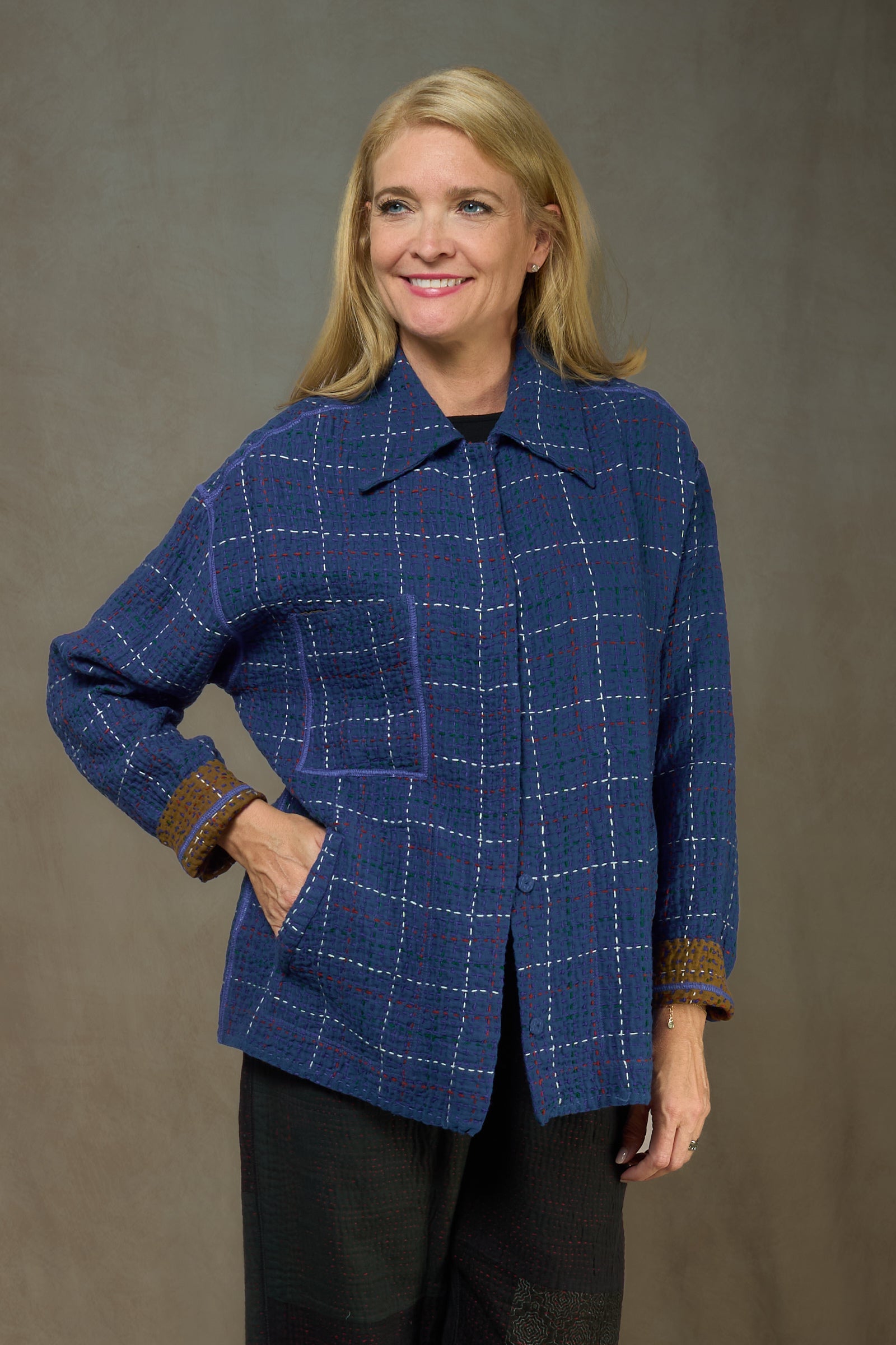 WOOL WAFFLE KANTHA WORKERS JACKET - ww3085-blu -
