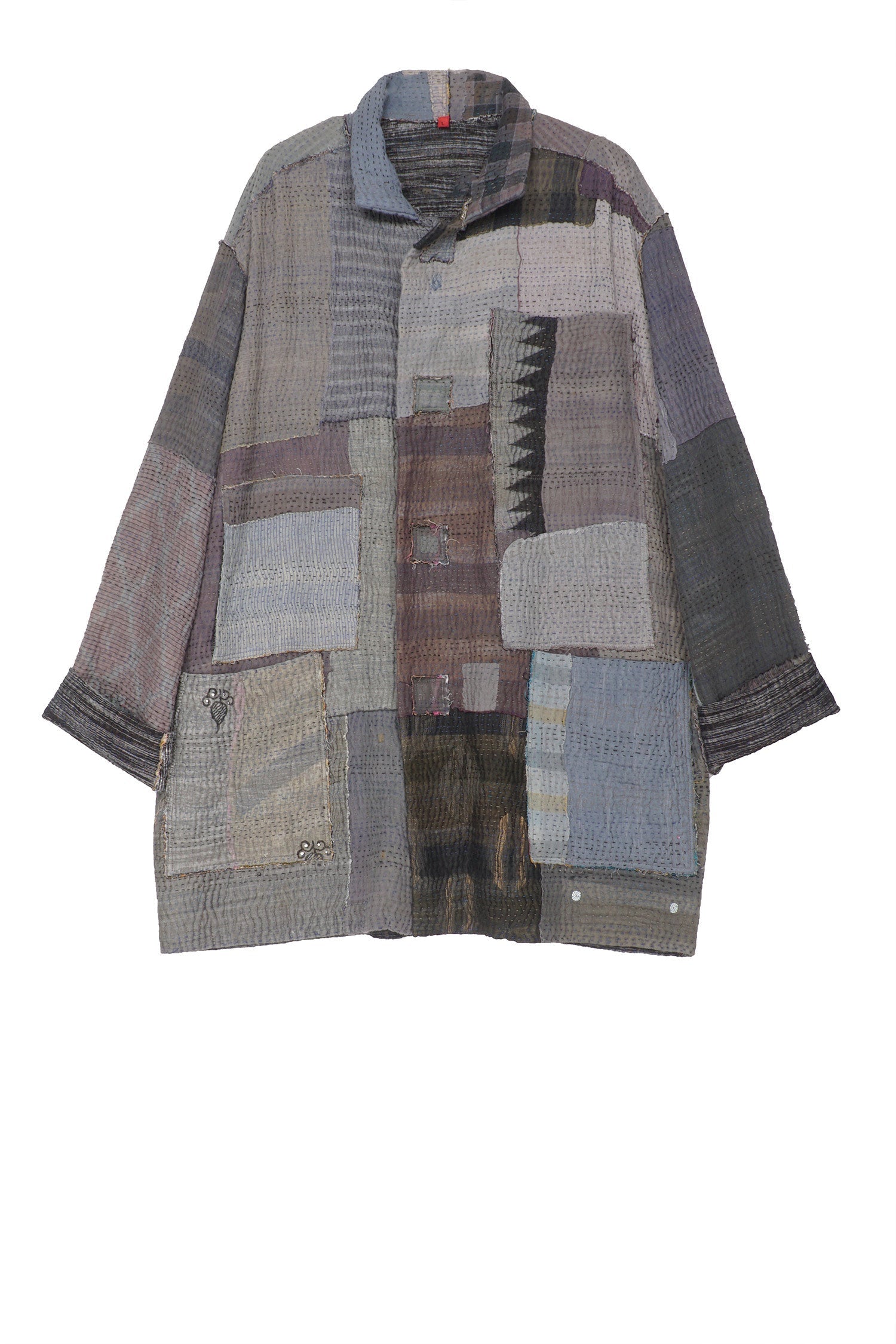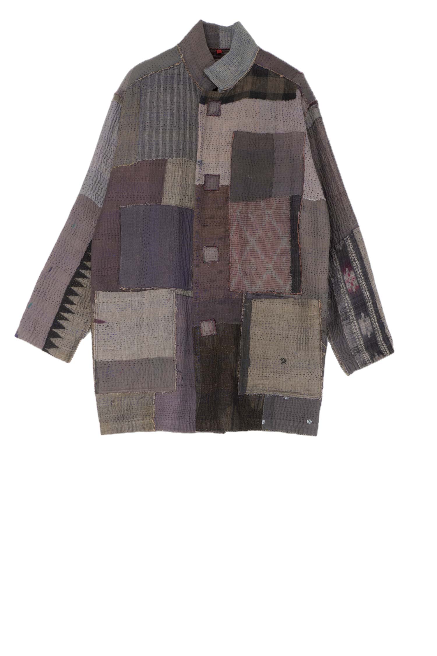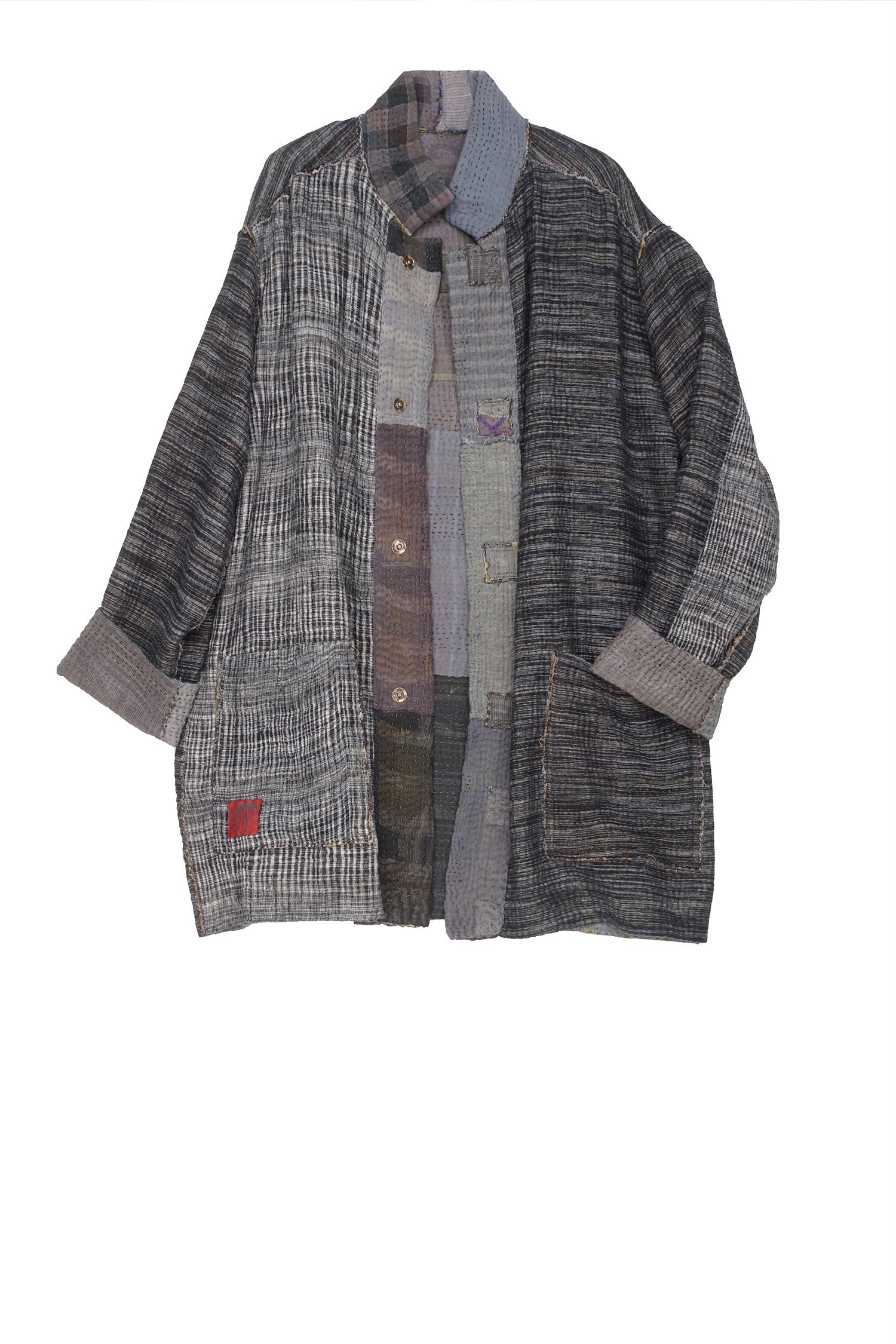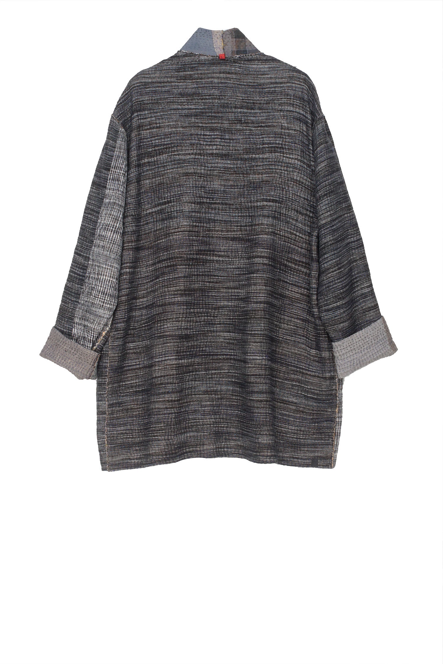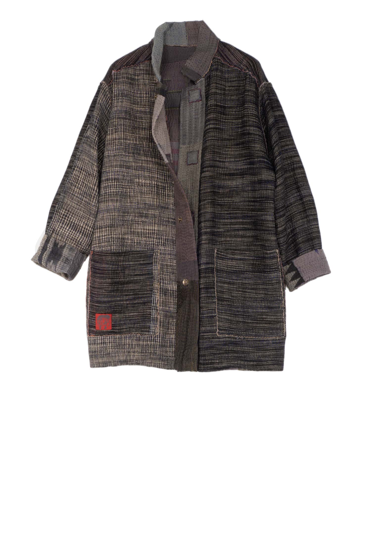 WOVEN IKAT & FRAYED PATCH KANTHA MEN'S JKT - wk4041-gry -