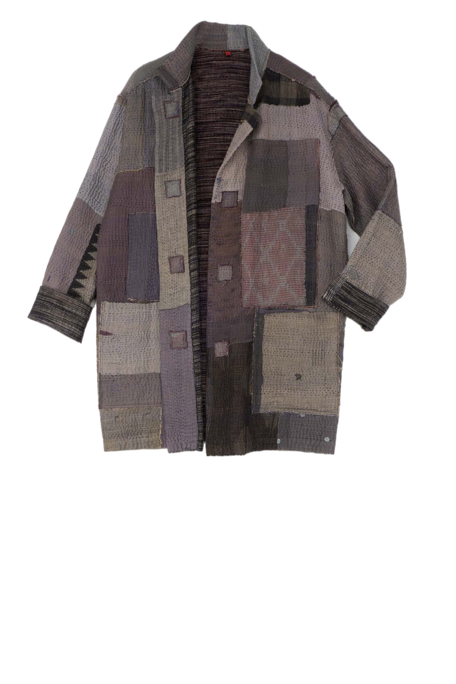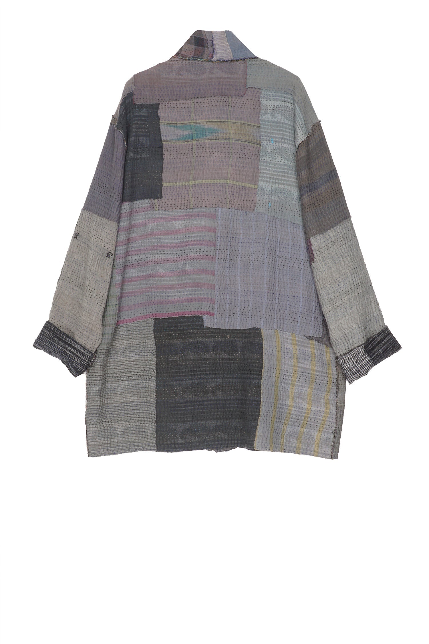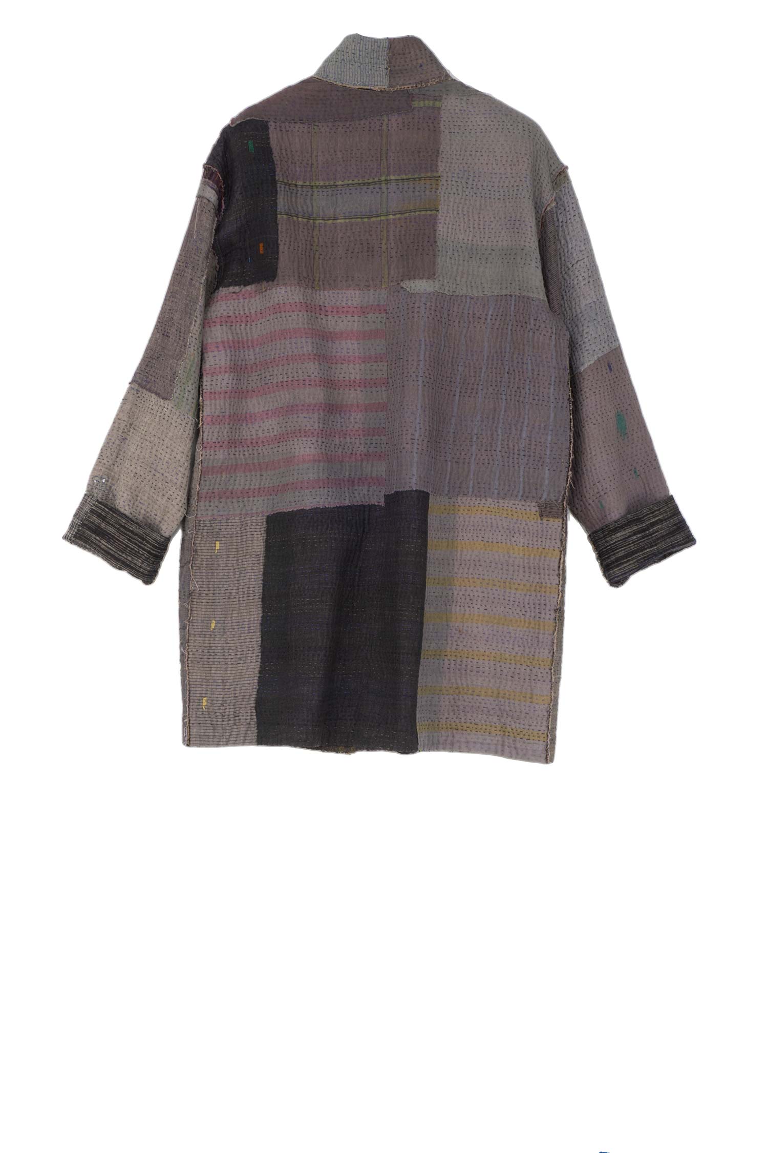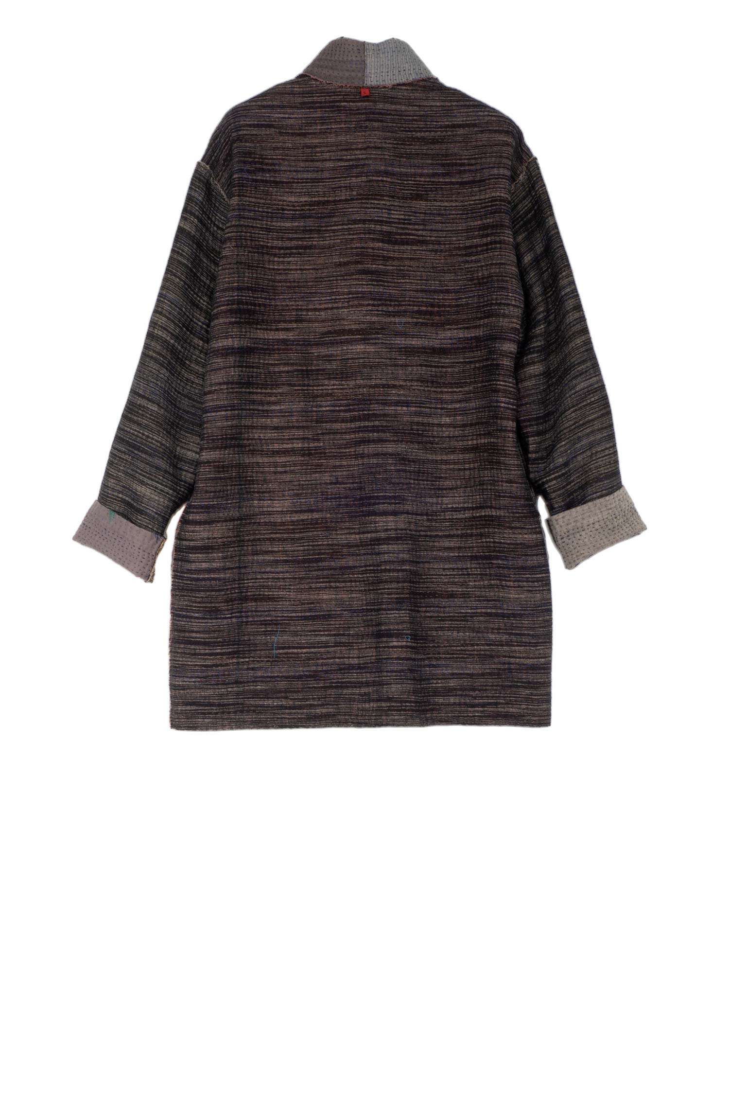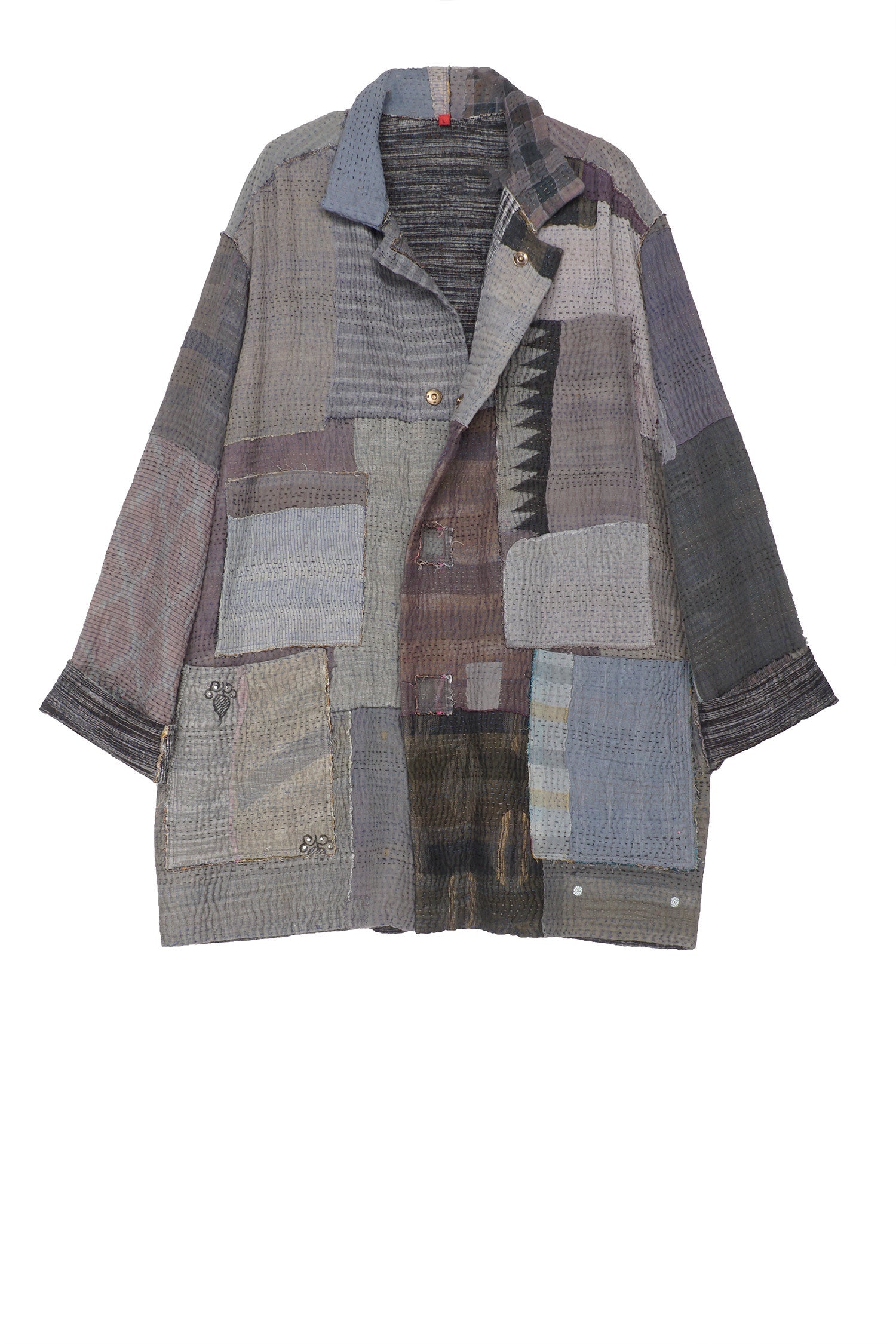 WOVEN IKAT & FRAYED PATCH KANTHA MEN'S JKT - wk4041-gry -