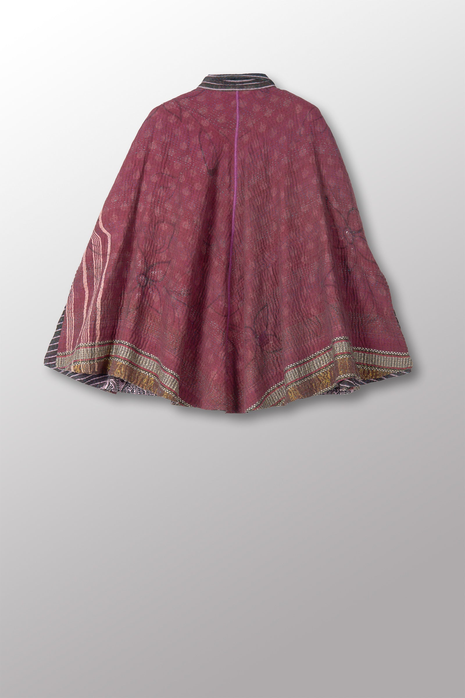 4 Layer Vintage Saris with Hand Stitches on Entire Garment - Reversible