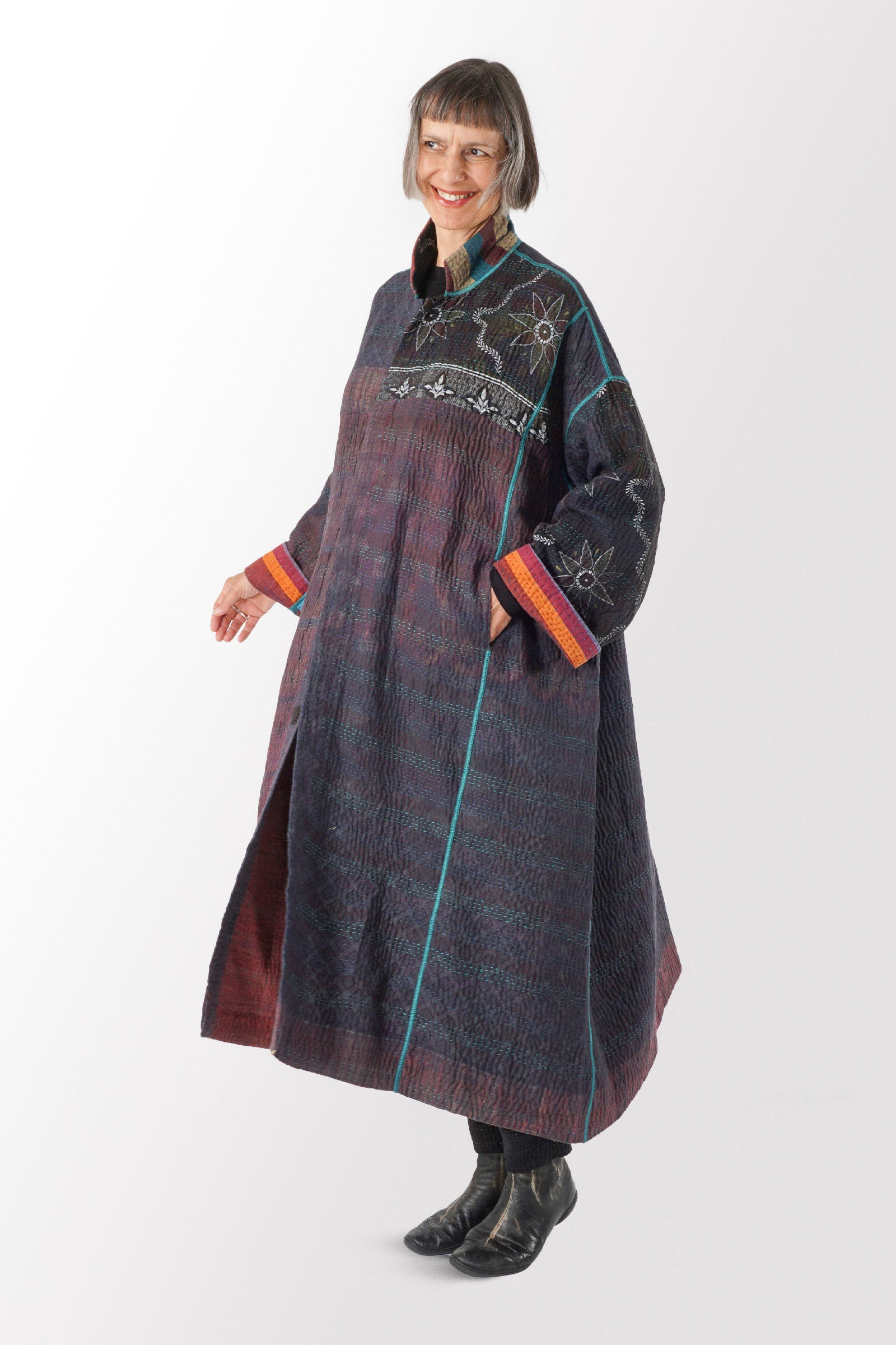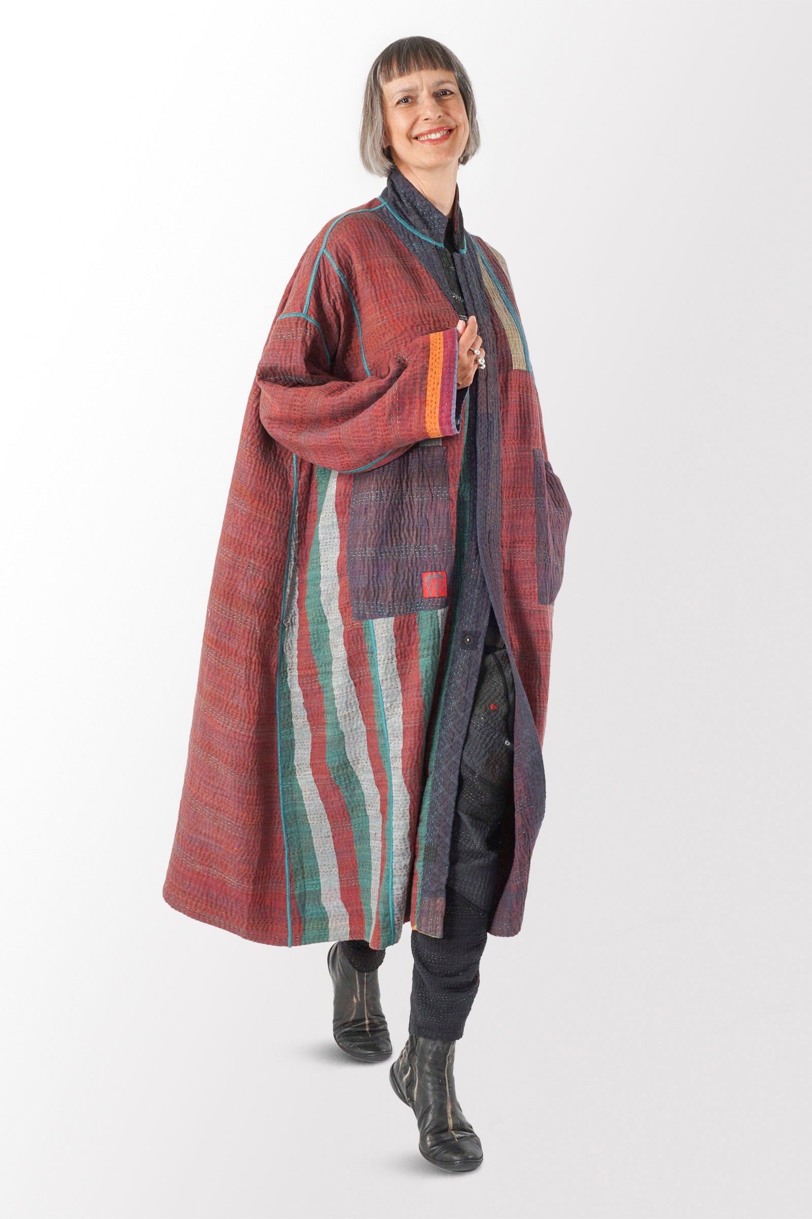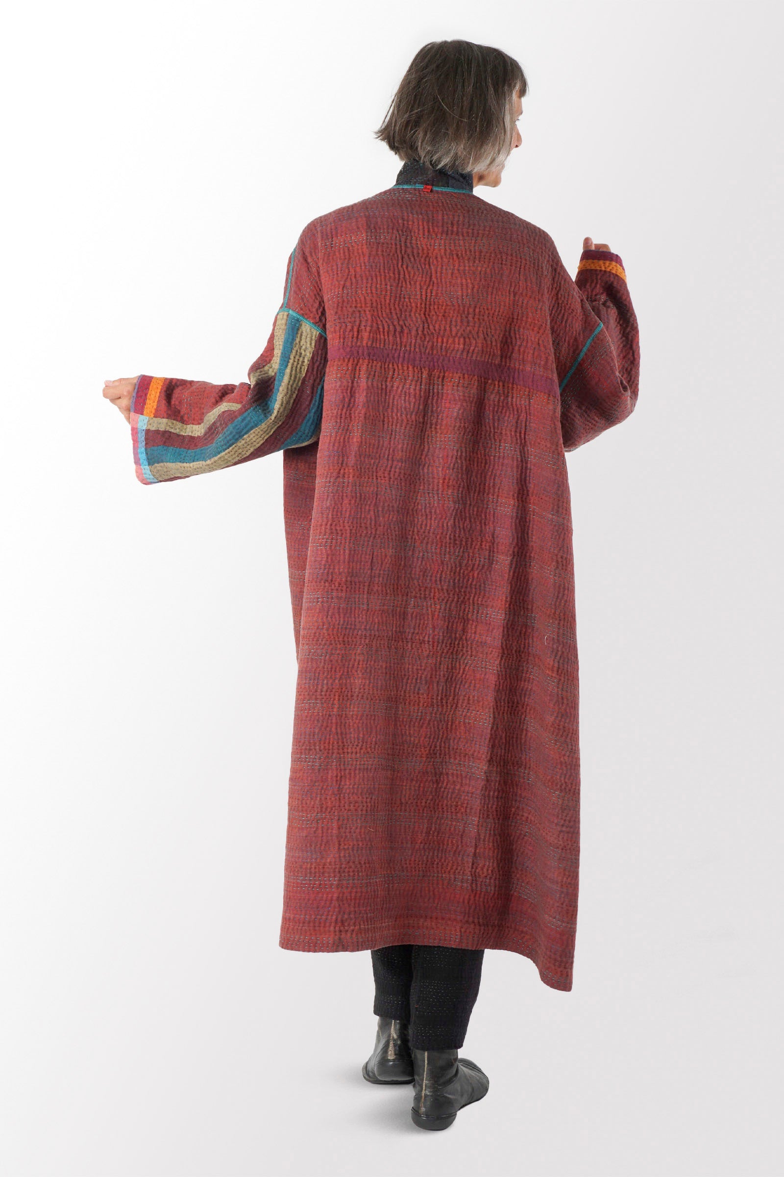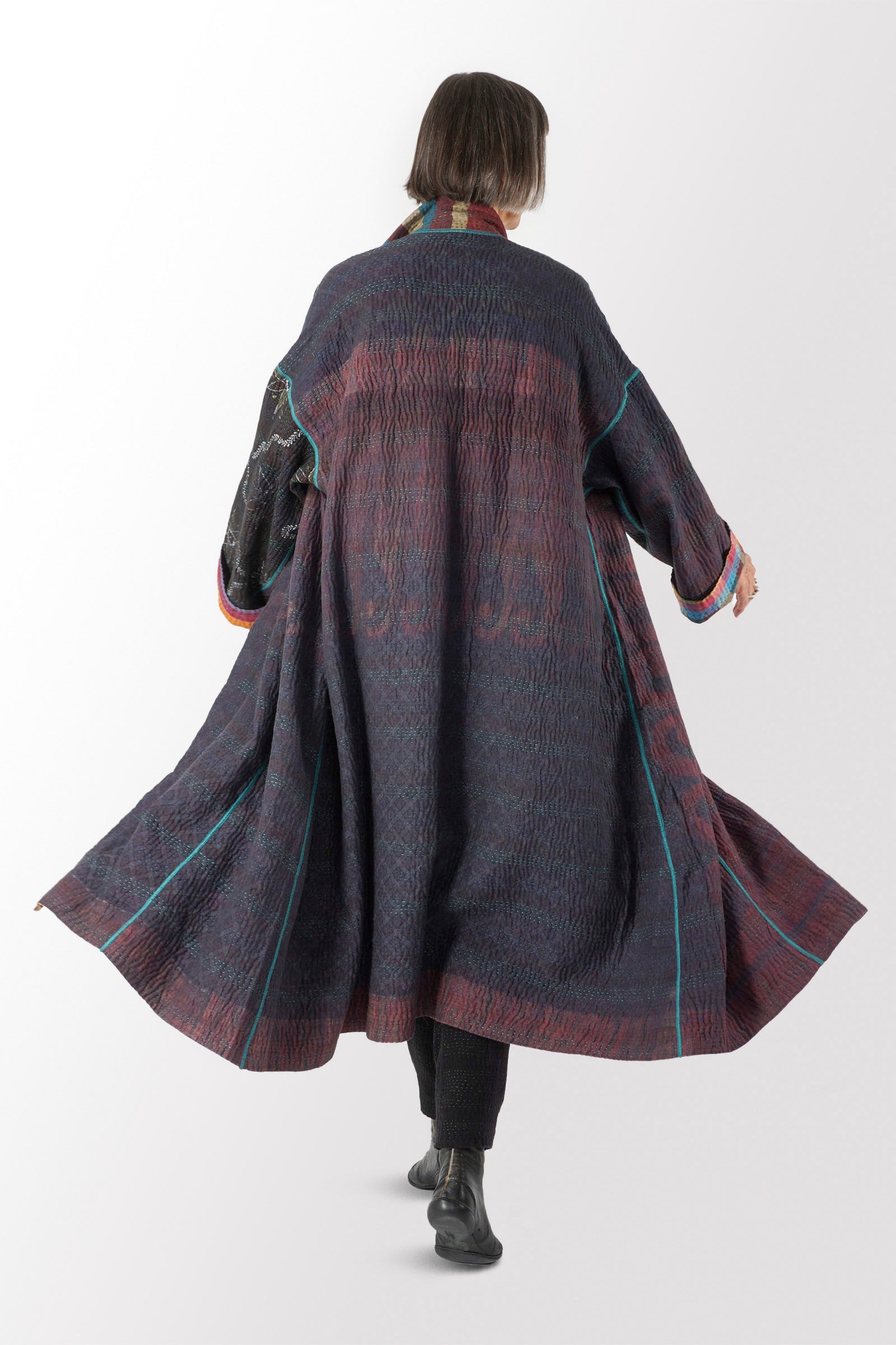 WOVEN VINTAGE COTTON KANTHA OVERSIZED COAT - fw4326-0002a -