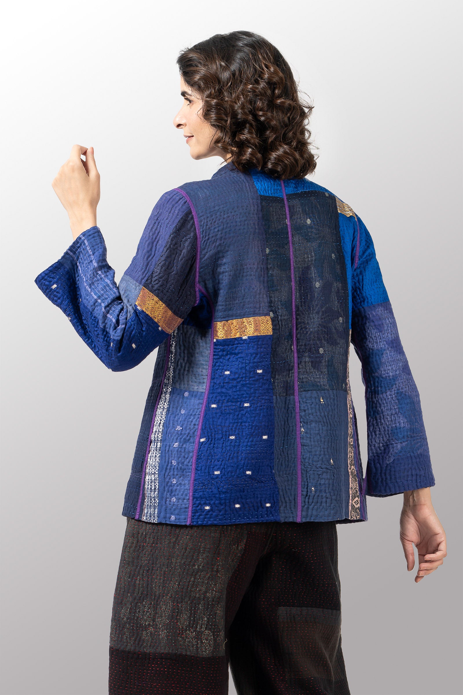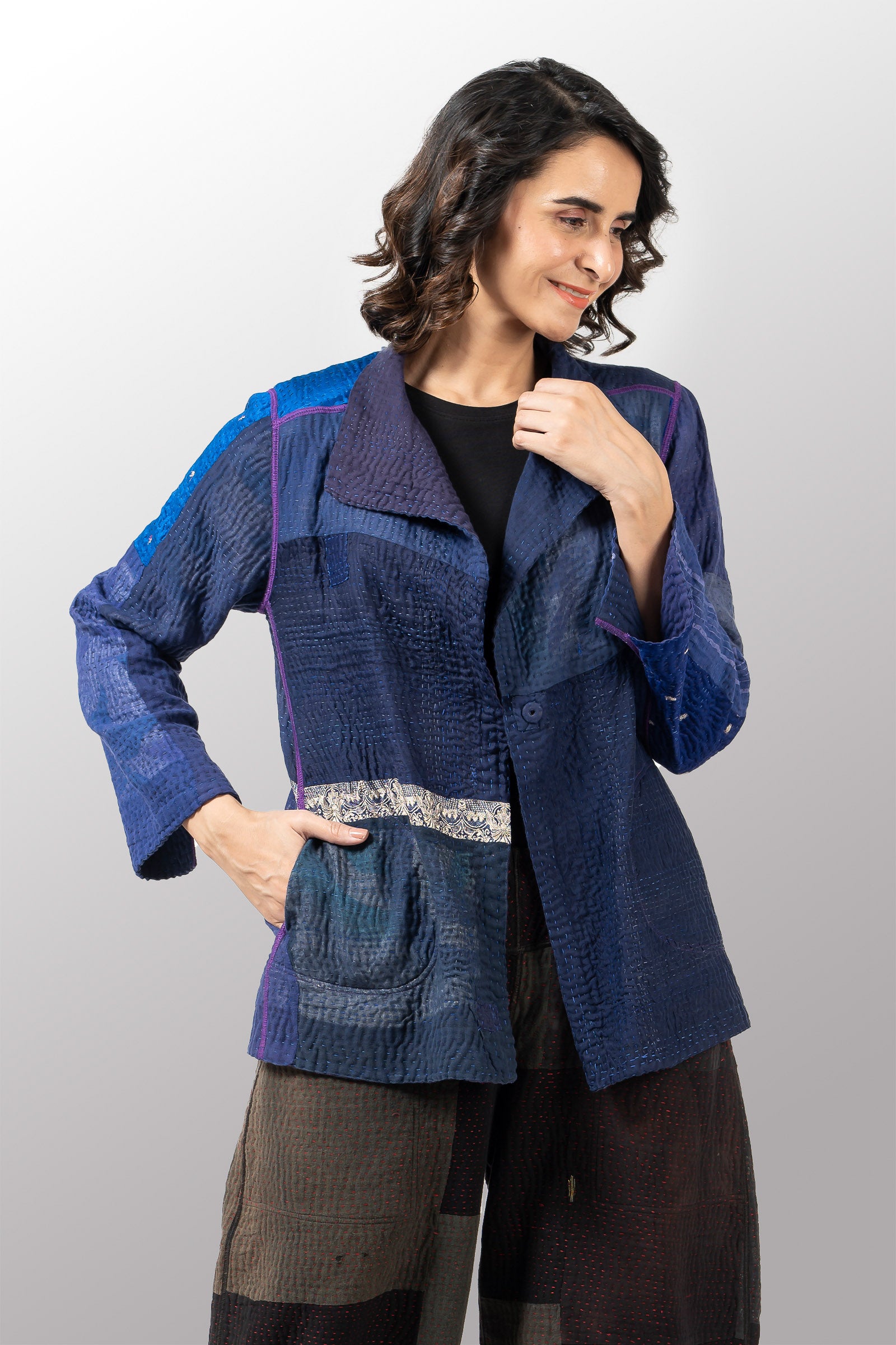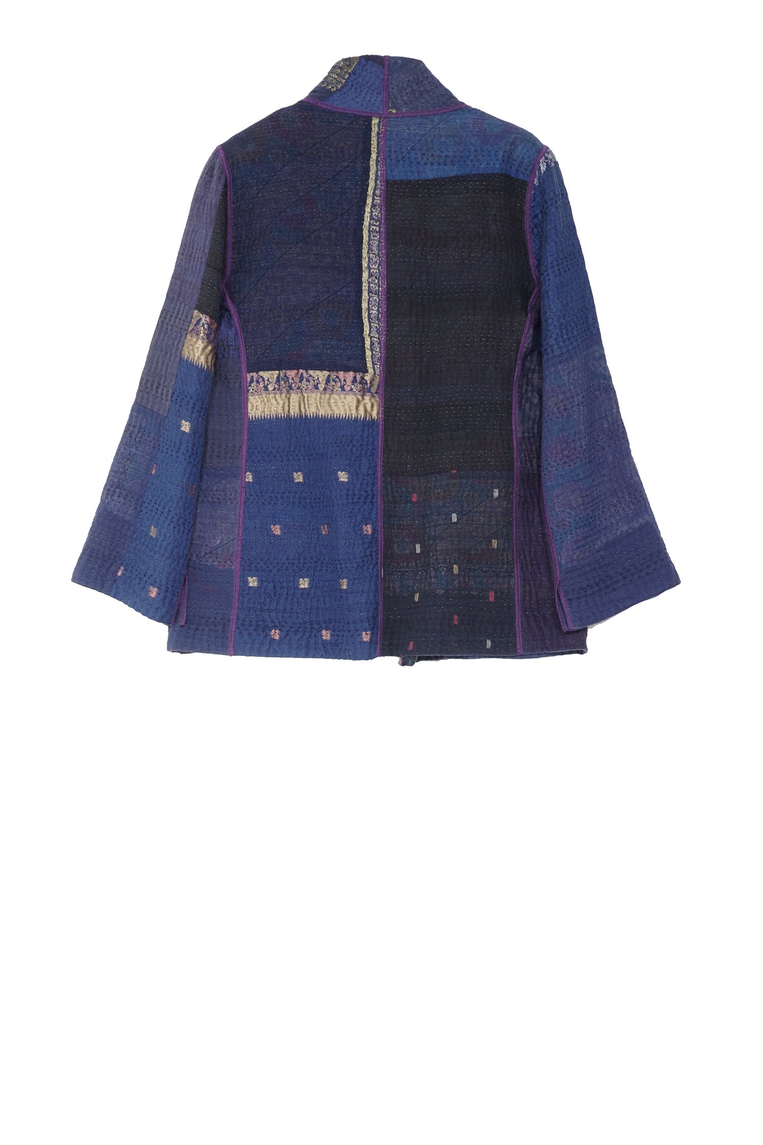 COTTON SILK SW PATCH KANTHA SHORT JKT - ws4007-nvy -