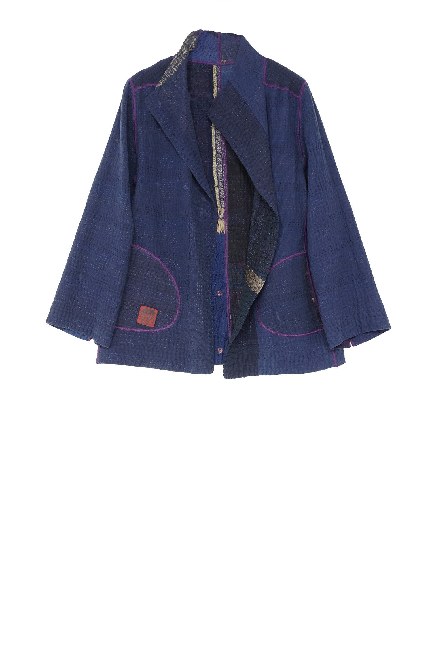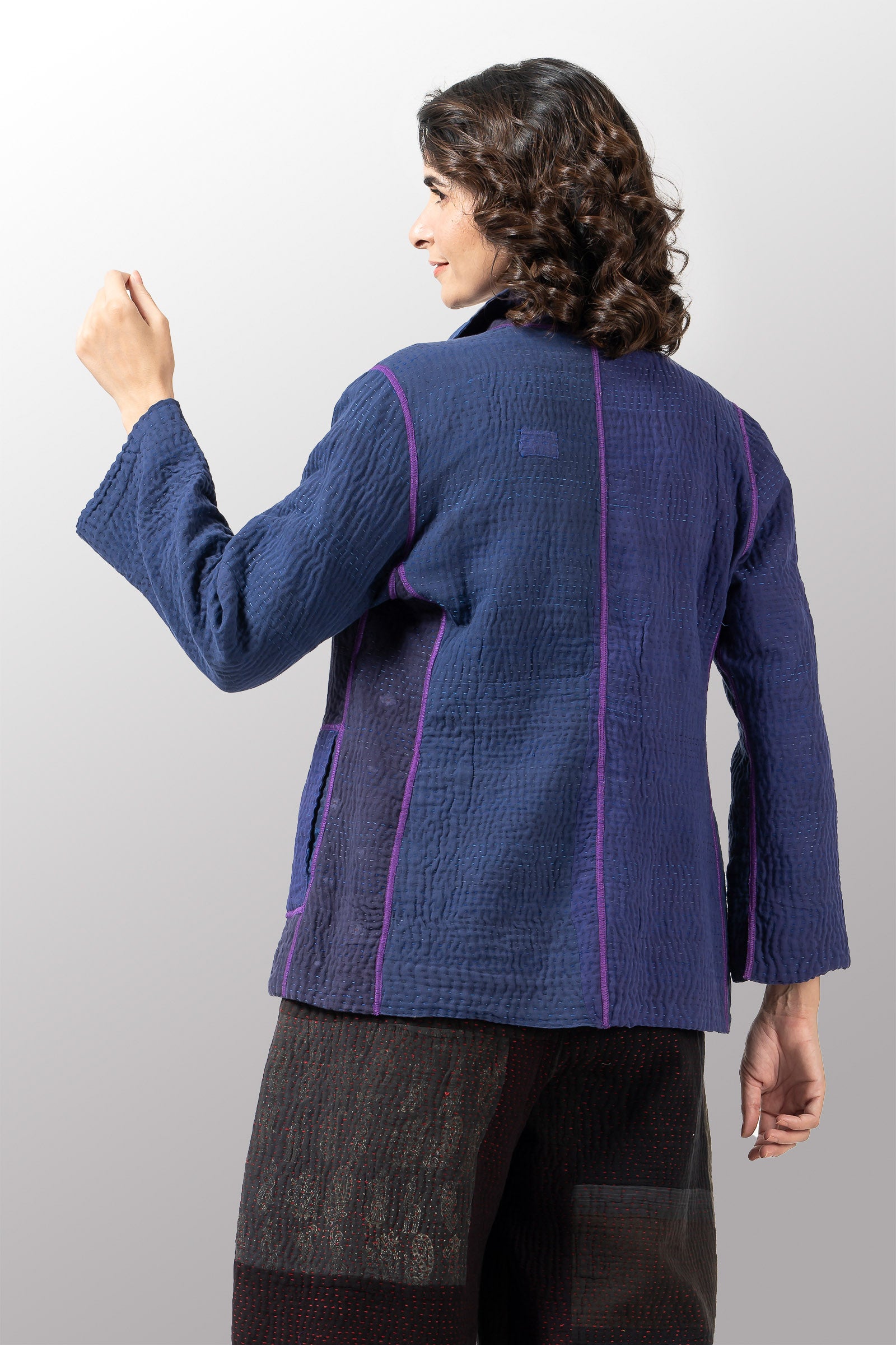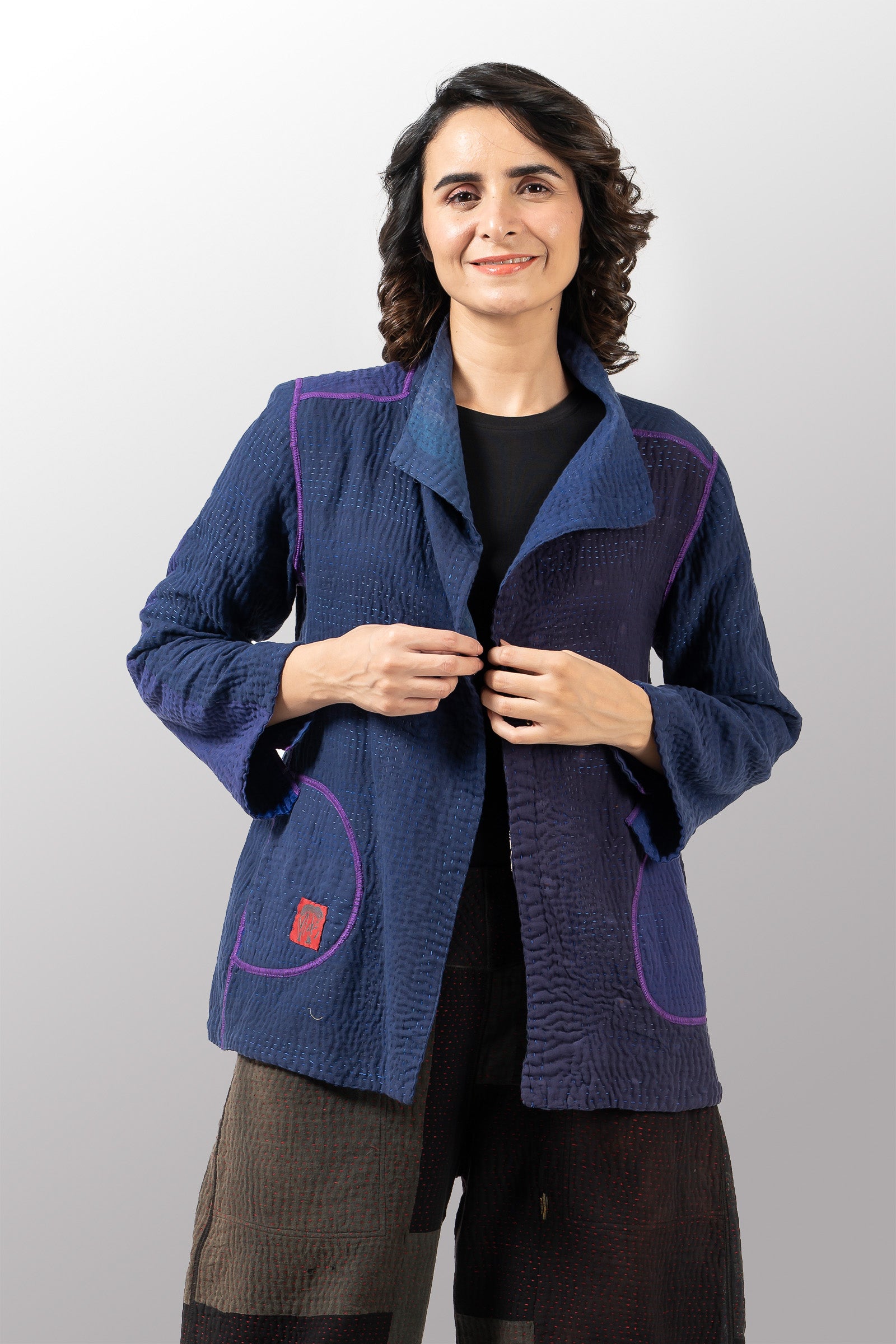 COTTON SILK SW PATCH KANTHA SHORT JKT - ws4007-nvy -